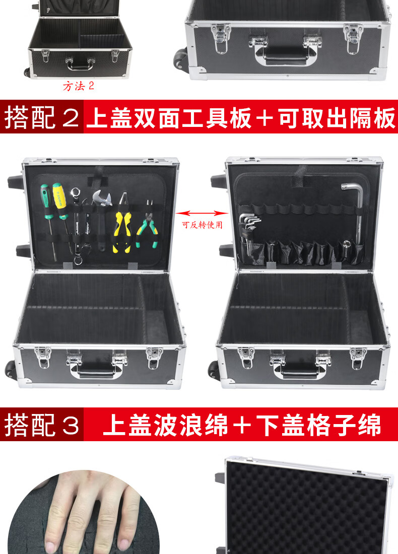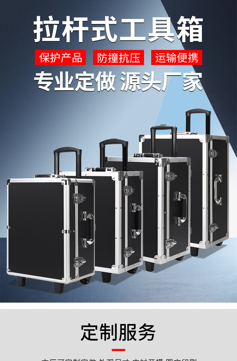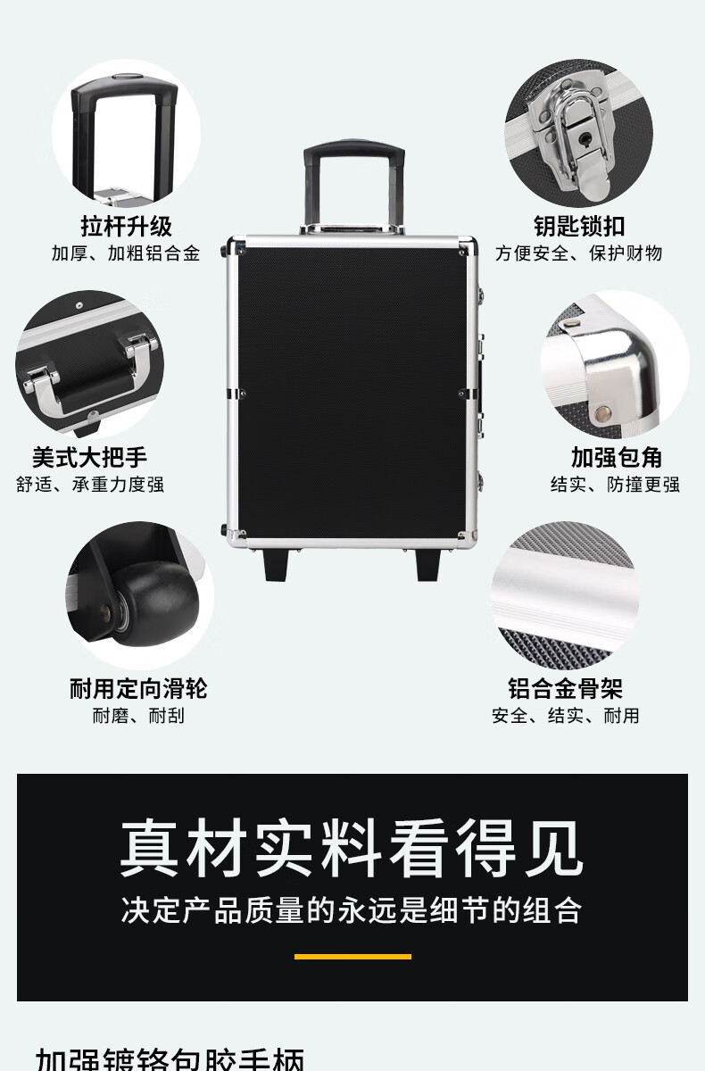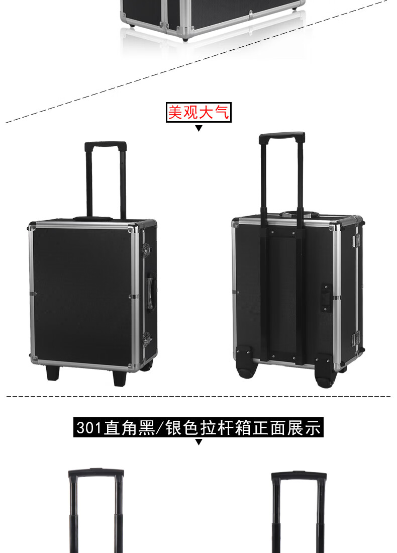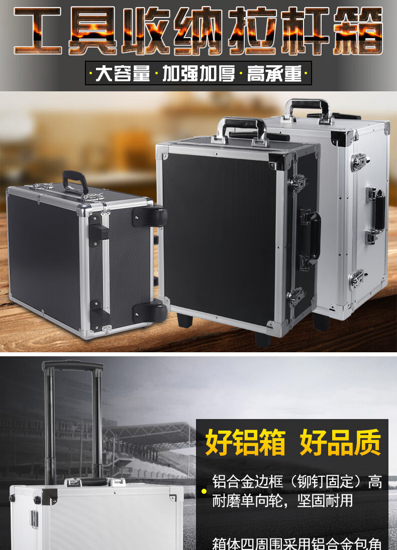 Xinian custom-made aluminum alloy trolley tool box flight case household instrument equipment hardware large storage box aluminum box 73*53*33 thickened black* trolley flight case (empty box)