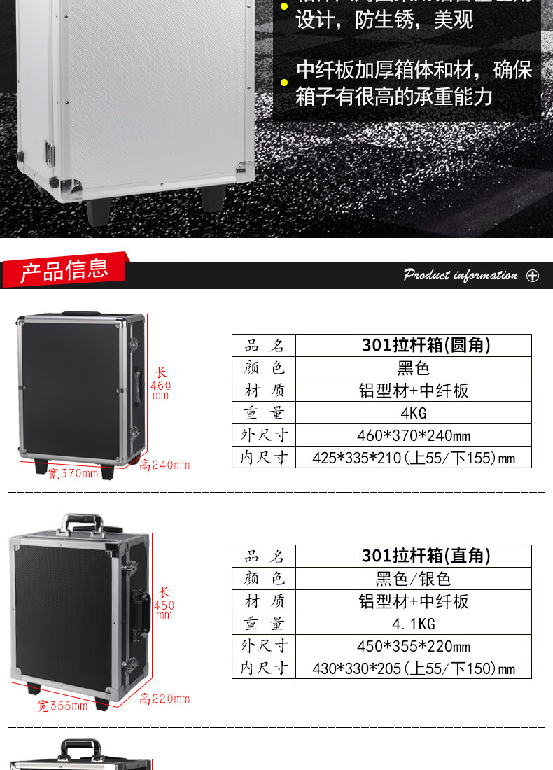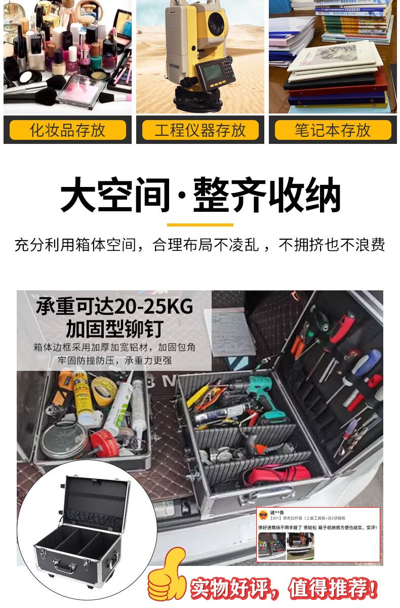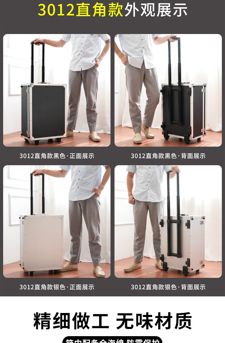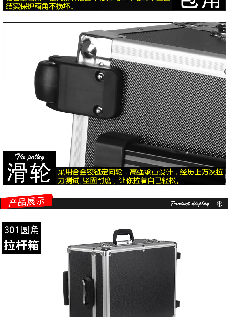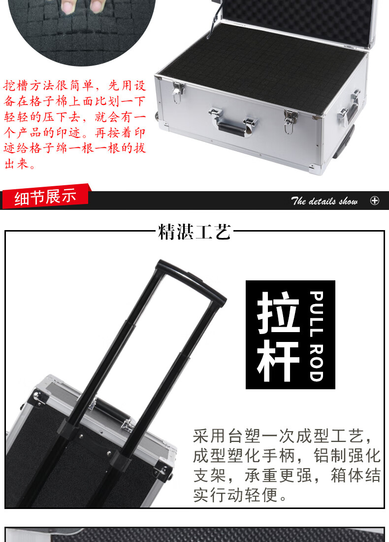 Xinian custom-made aluminum alloy trolley tool box flight case household instrument equipment hardware large storage box aluminum box 73*53*33 thickened black* trolley flight case (empty box)