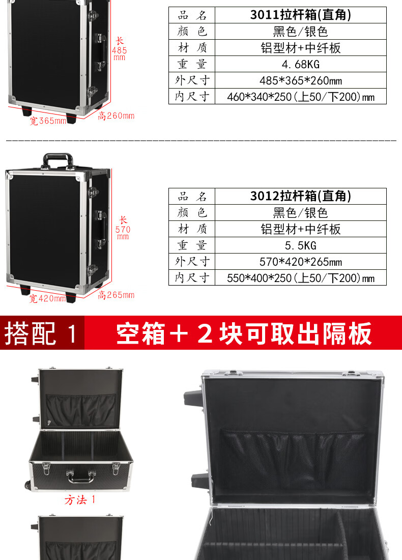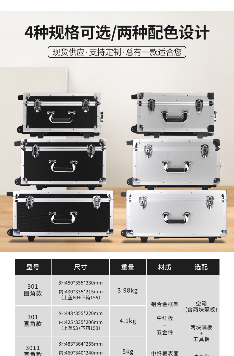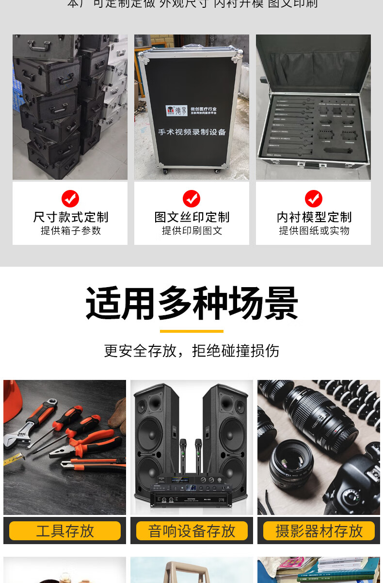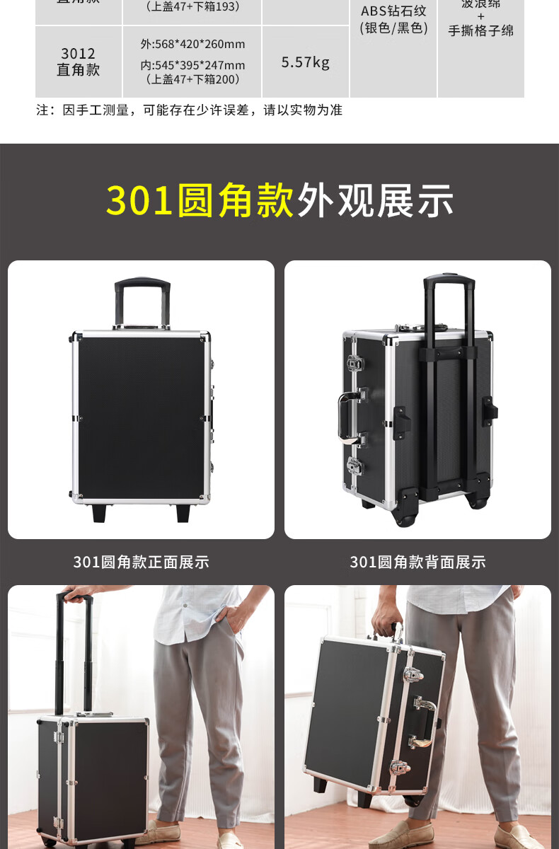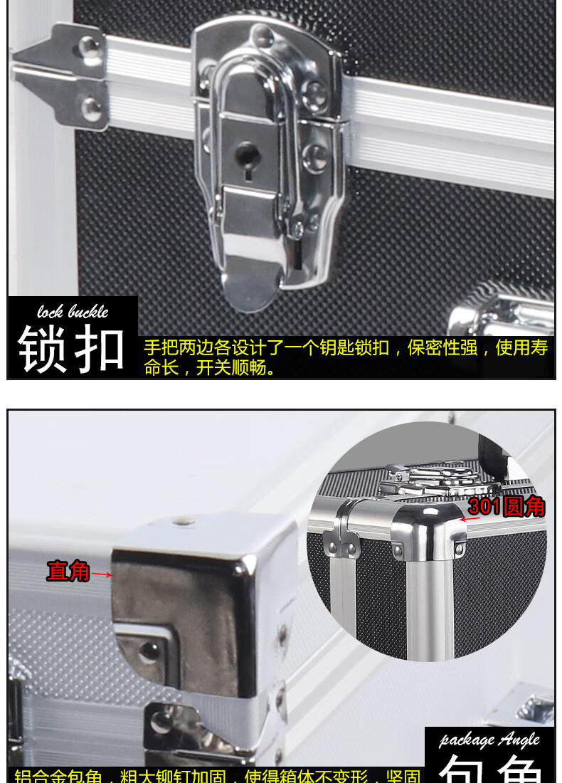 Xinian custom-made aluminum alloy trolley tool box flight case household instrument equipment hardware large storage box aluminum box 73*53*33 thickened black* trolley flight case (empty box)