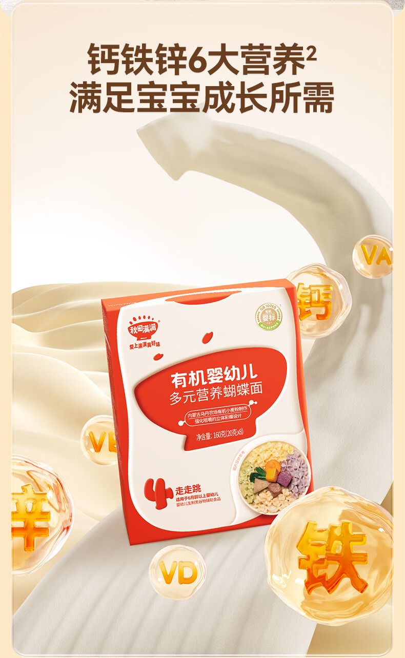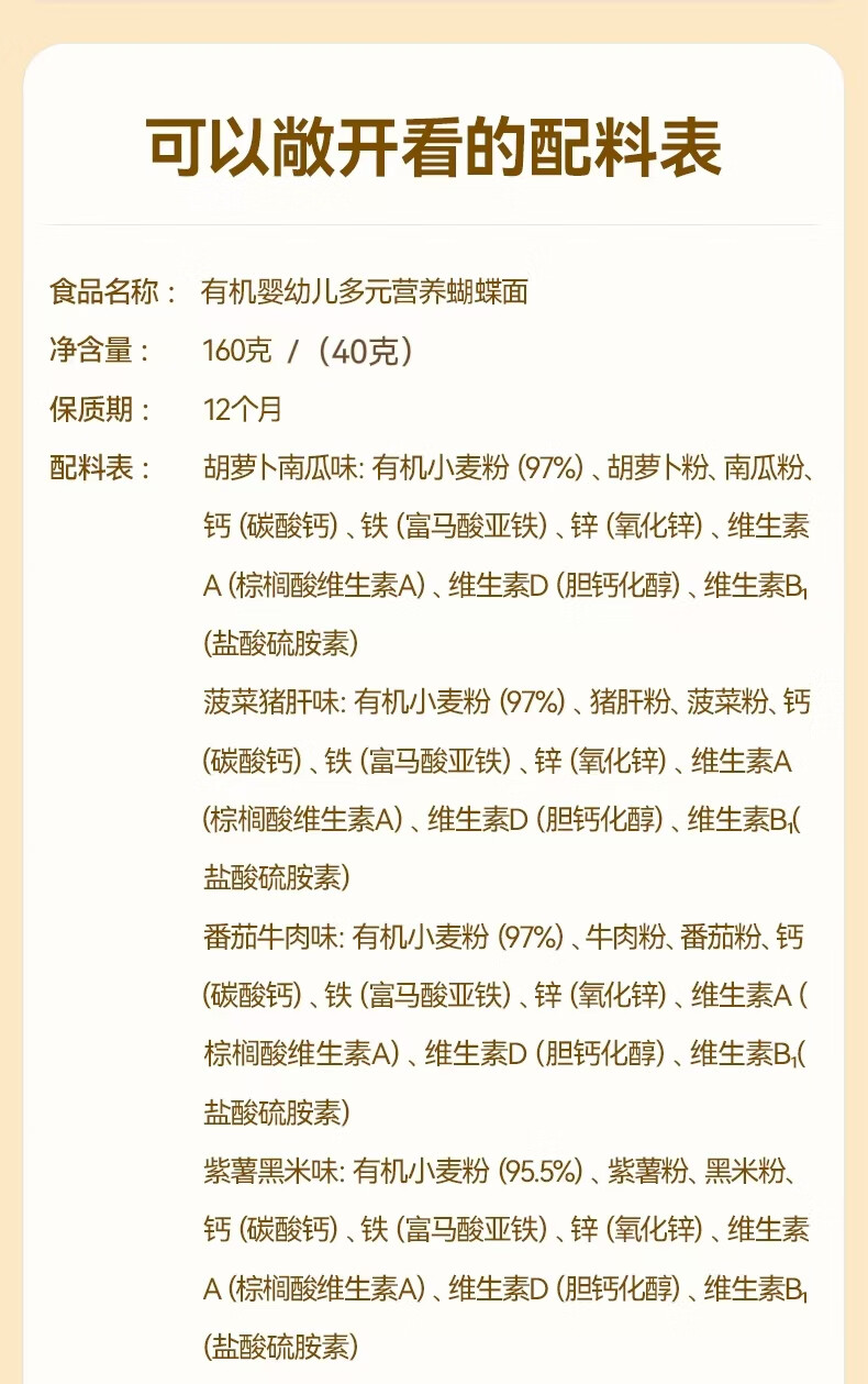 Akita Manman Butterfly Noodles, Nutritious Noodles, Rice Noodles, Pork Liver Powder, Seaweed Shredded Oil, Free complementary food recipes for infants and young children to try, Organic Infant Butterfly Noodles 40g*1 box