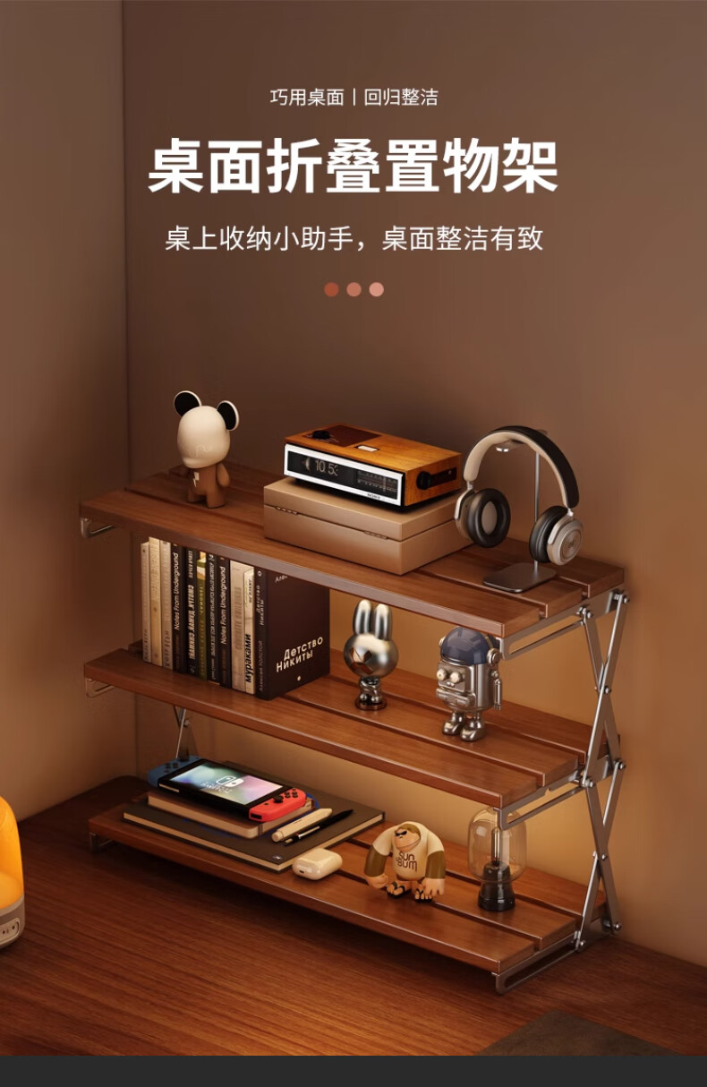 HALODN desktop multi-layer simple bookshelf multi-functional student desk storage rack iron art installation-free can be placed on the desktop installation-free foldable (wrought iron plate) length 40cm