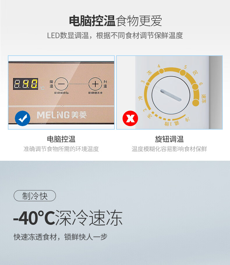 Meiling instant discount minus 40 degrees quick freezing丨Commercial large capacity freezer single temperature horizontal refrigeration refrigeration freezer 426 liters 40 deep freezing quick freezing computer control
