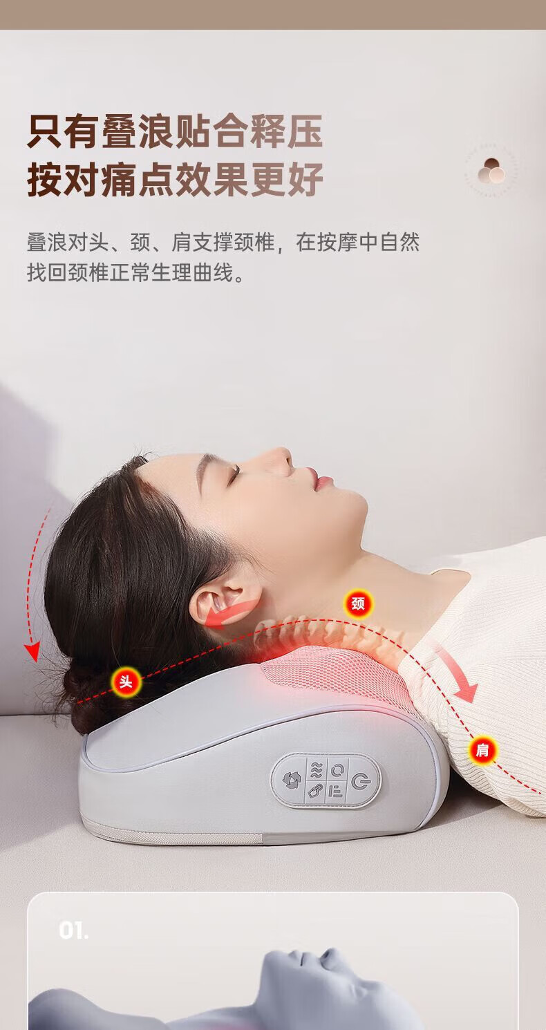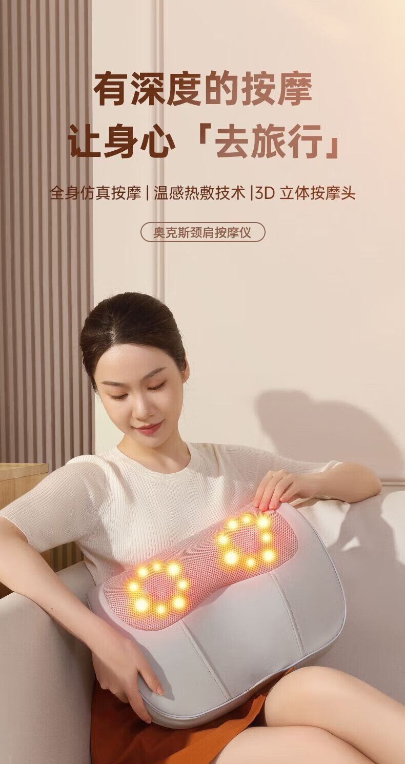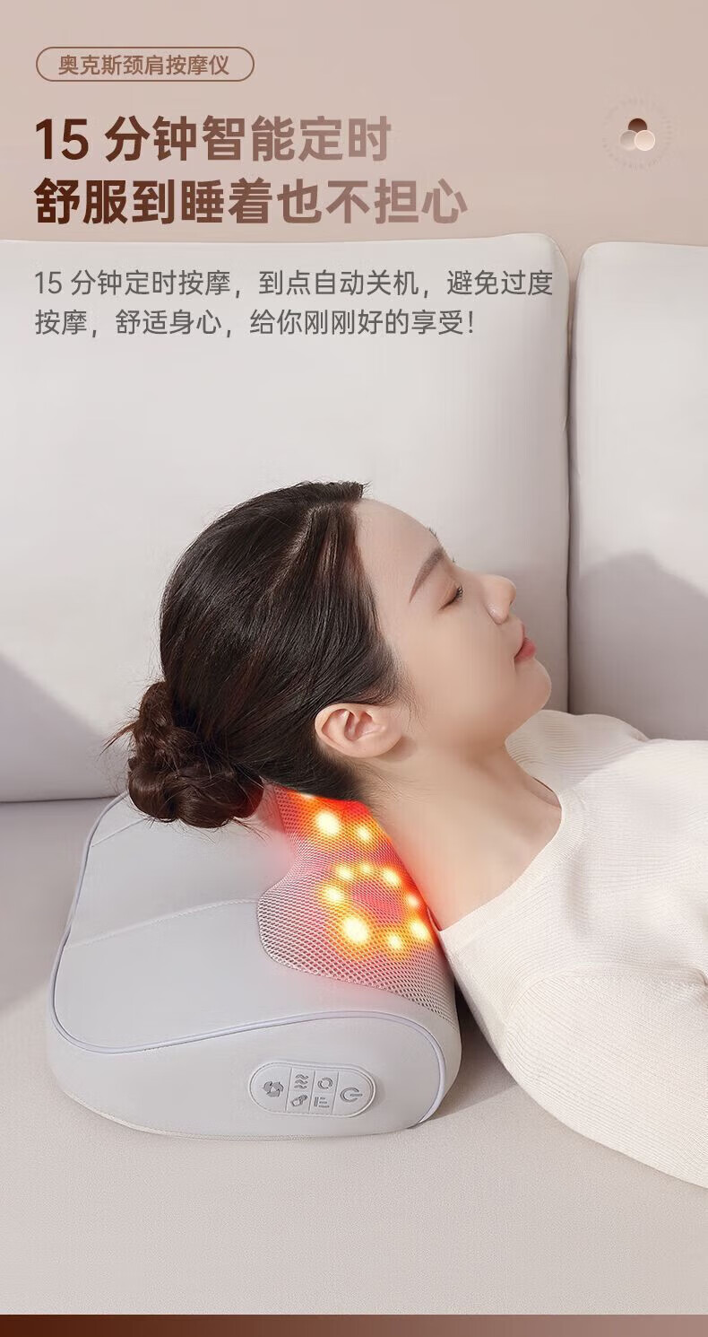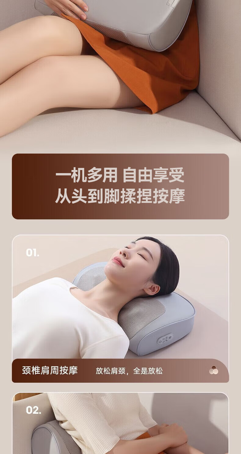 AUX cervical spine massager massage pillow neck shoulder and neck massager waist full body automatic hot compress kneading massager birthday and New Year gift for girls annual party gifts for parents flagship charging model hot compress / three levels of strength / forward and reverse kneading practical birthday gifts for parents and elderly parents