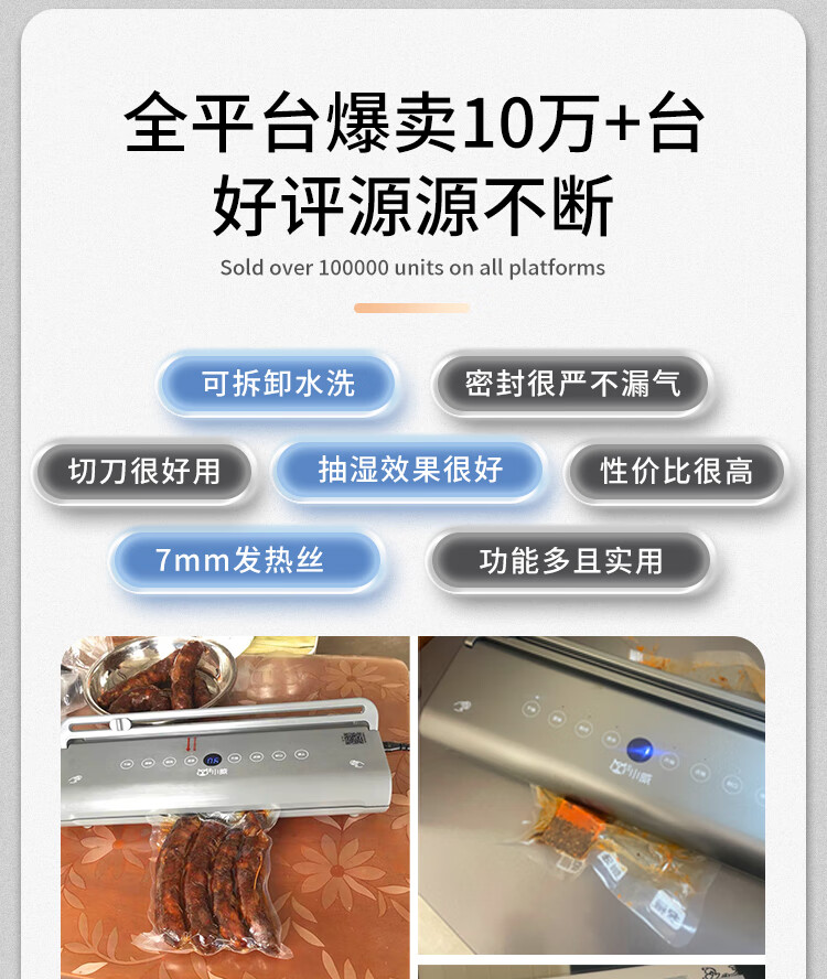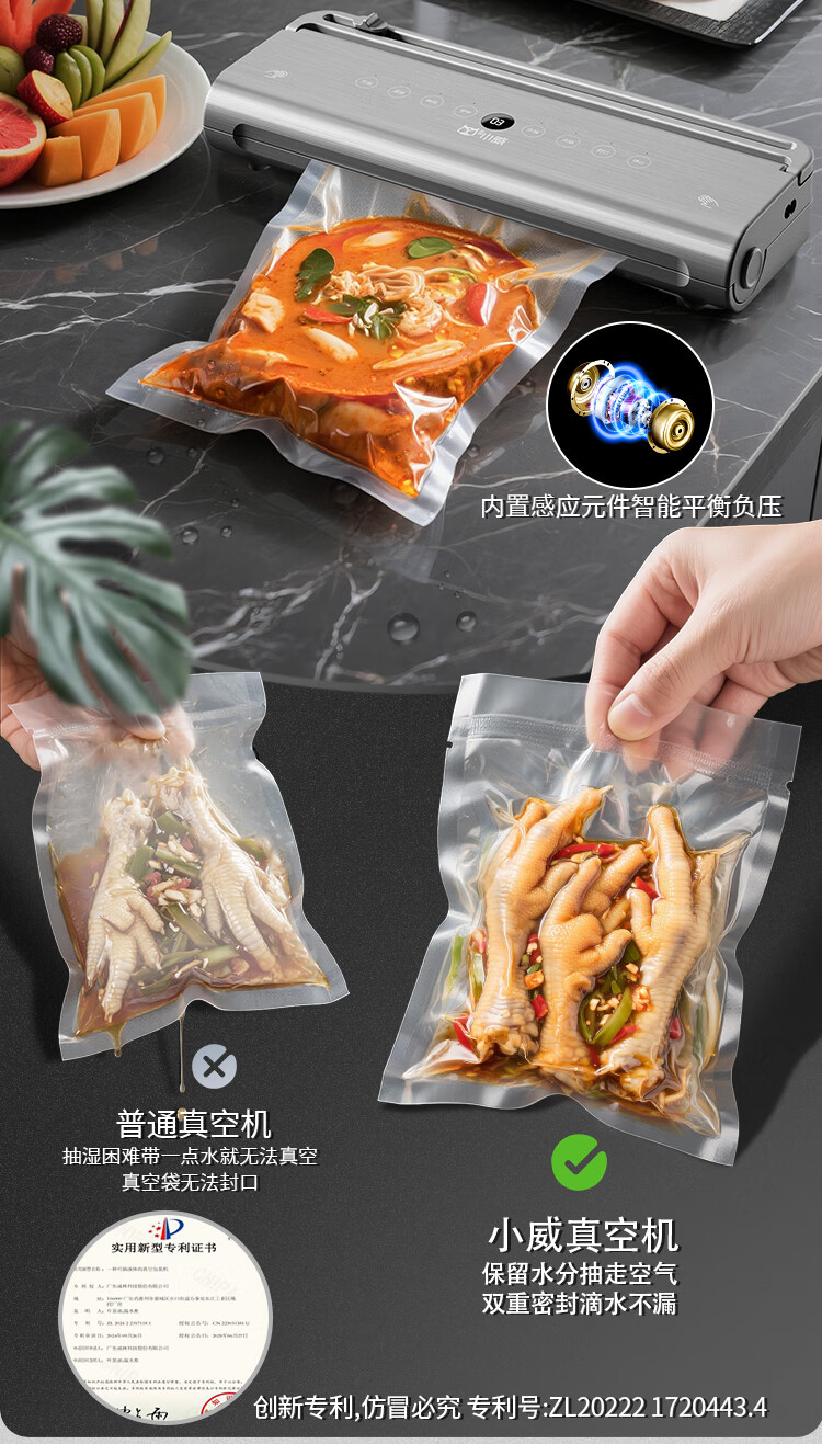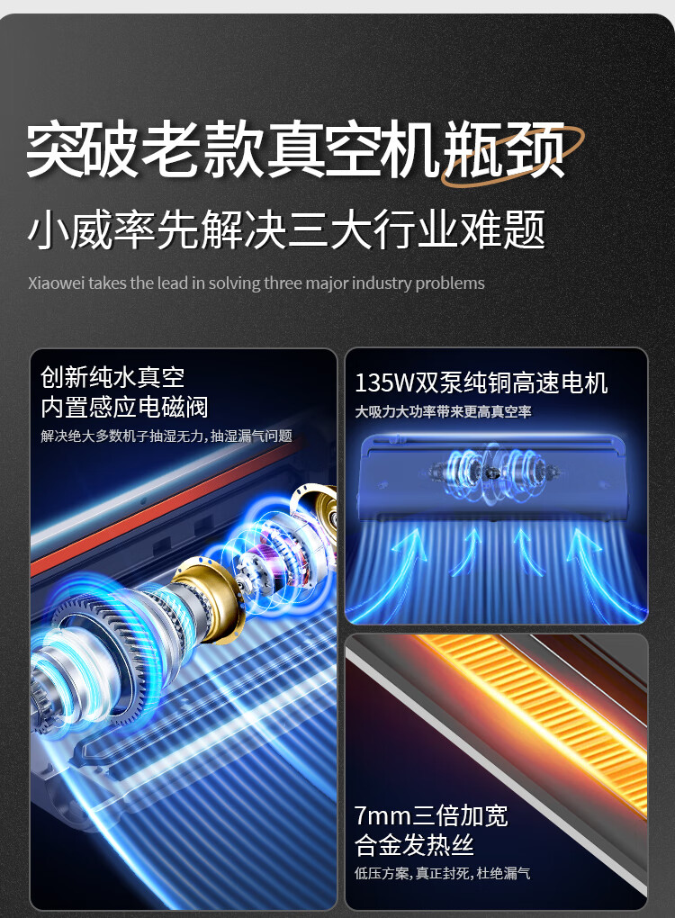 Willin Xiaowei dual-pump vacuum sealing compressor household commercial small dry and wet dual-use high-suction vacuum packaging sealed bacon snacks fresh-keeping belt cutter fully automatic plastic sealing dual-pump enhanced version 7mm ultra-wide sealing + can pump pure water