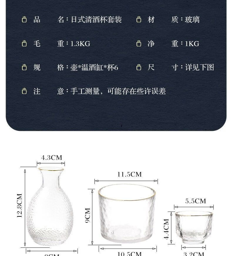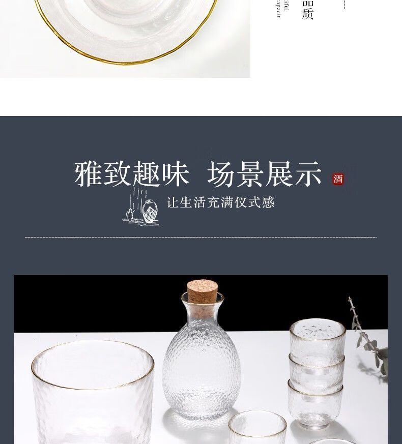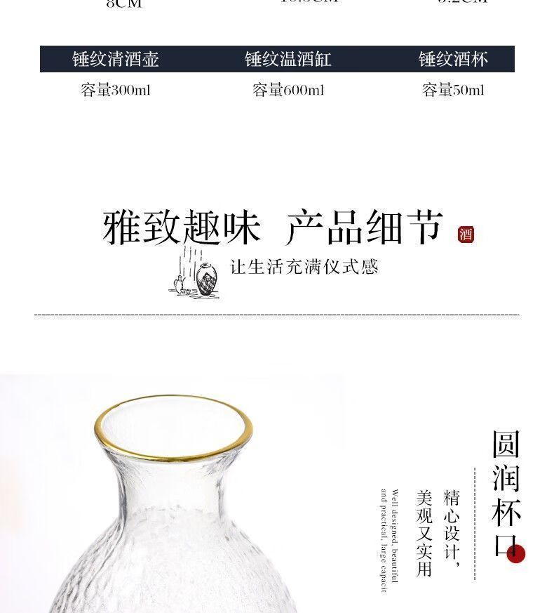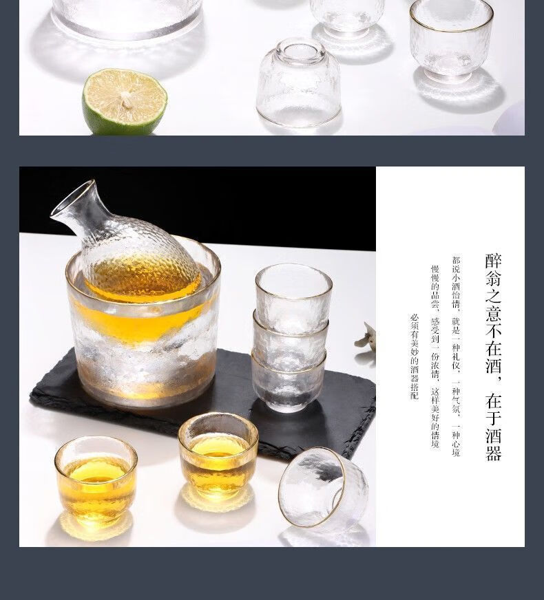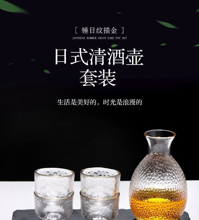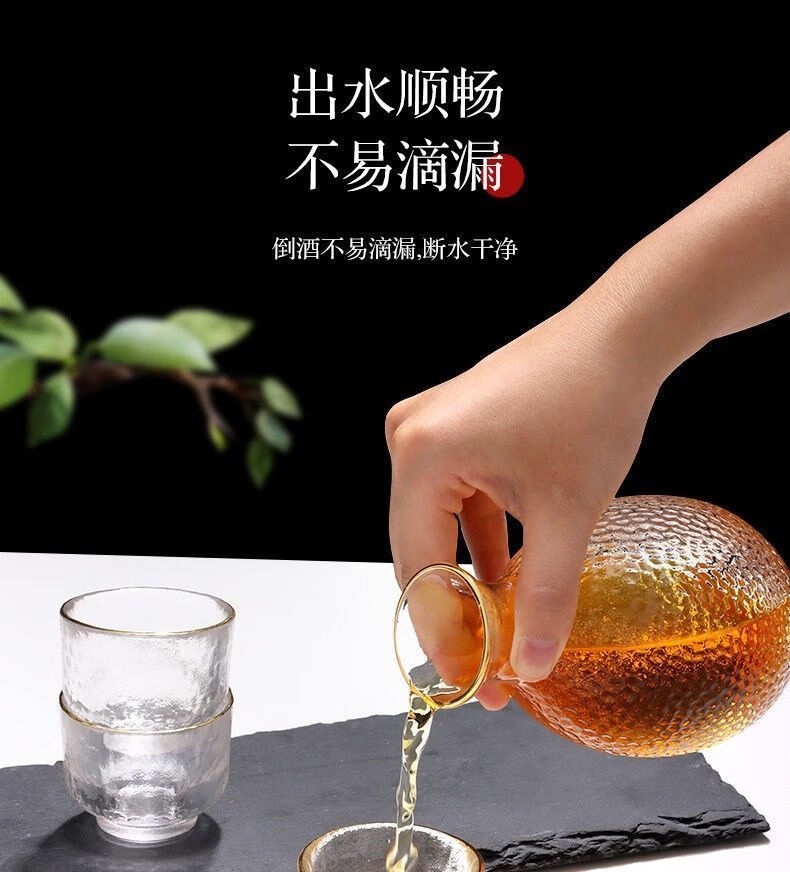 Spade Japanese sake pot set glass rice wine warmer hot pot household one or two white wine glasses hammered gold-rimmed wine set transparent two sake glasses