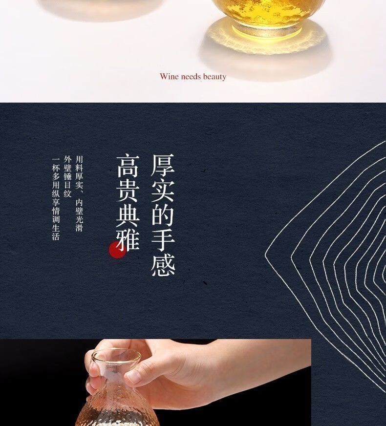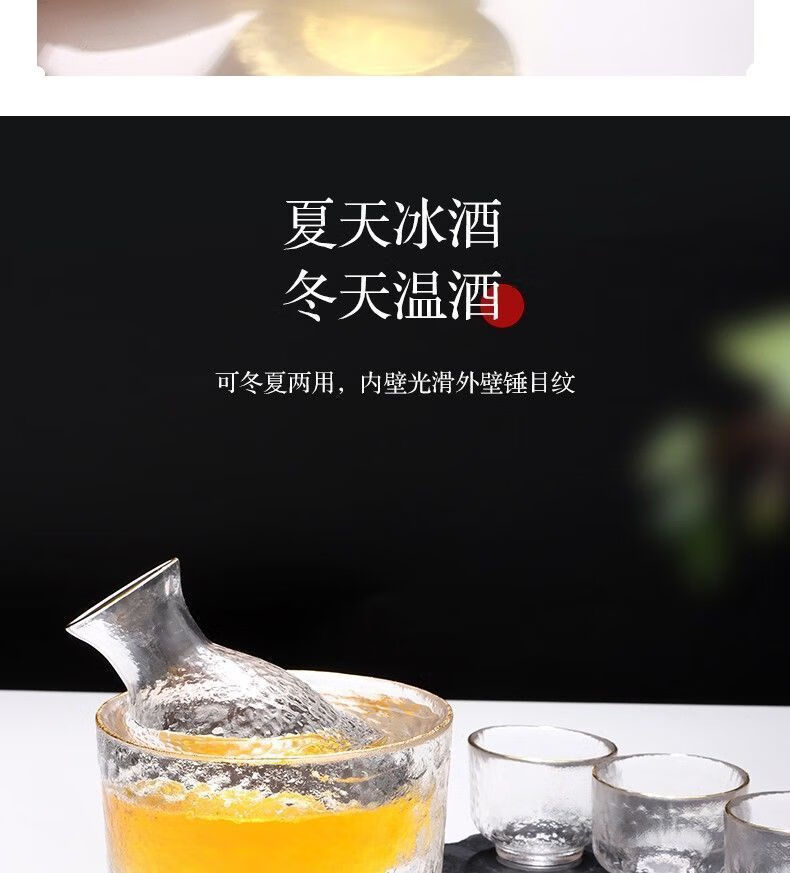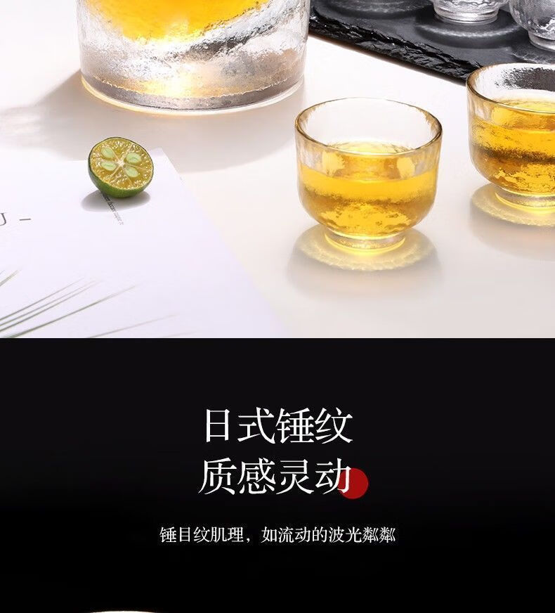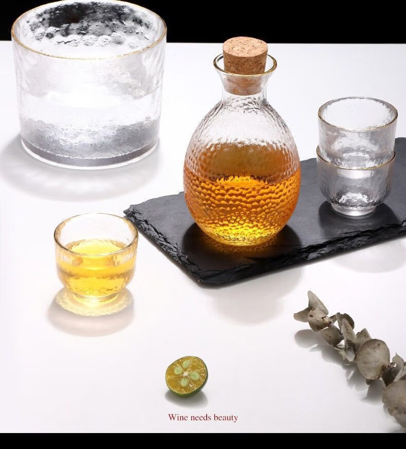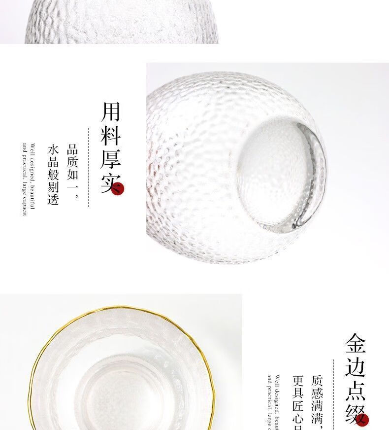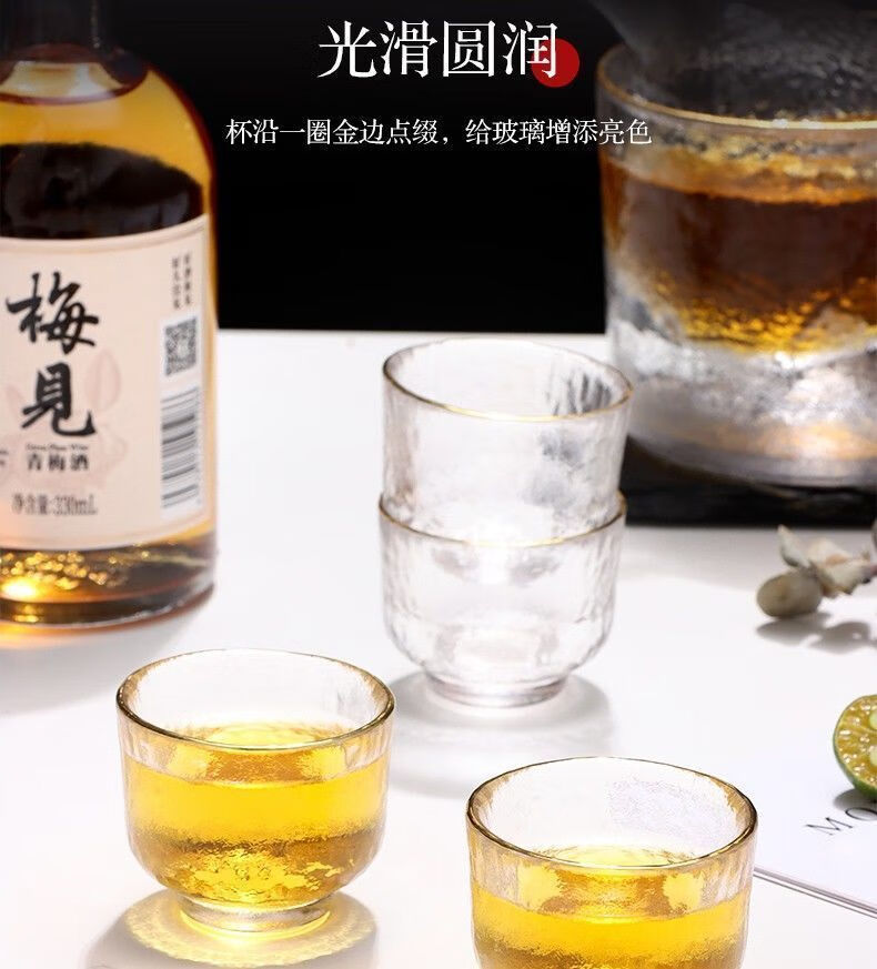 Spade Japanese sake pot set glass rice wine warmer hot pot household one or two white wine glasses hammered gold-rimmed wine set transparent two sake glasses