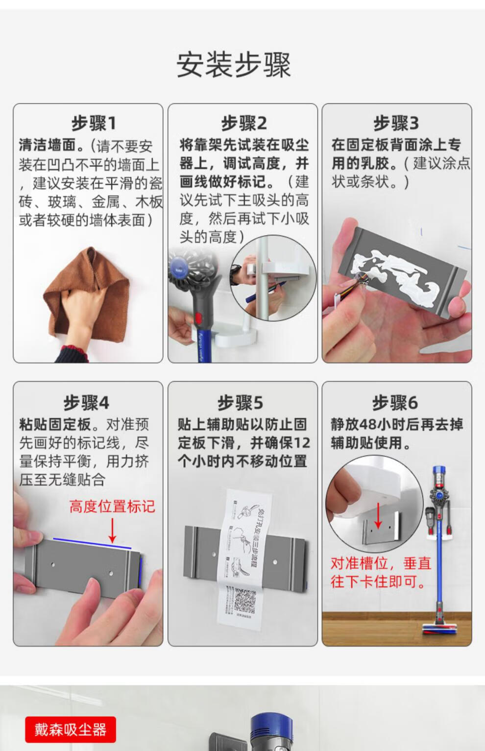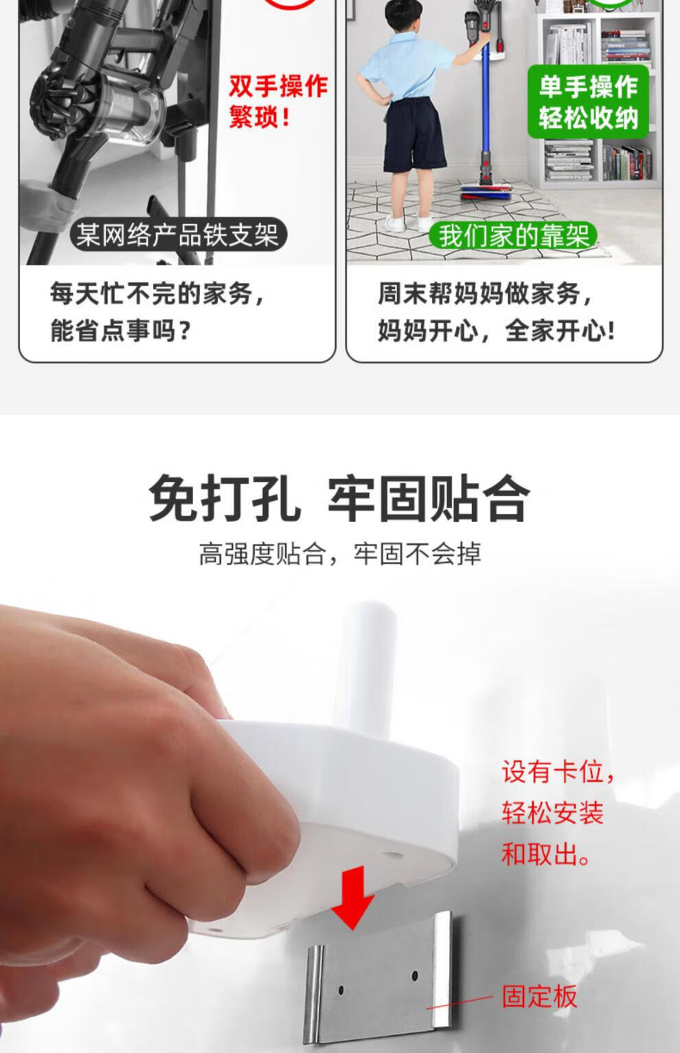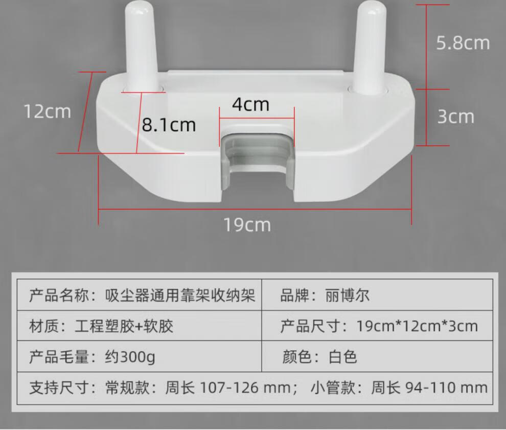 Hole-free vacuum cleaner holder storage rack universal backrest suitable for puppy wall mount white regular backstand (supports circumference 107-126