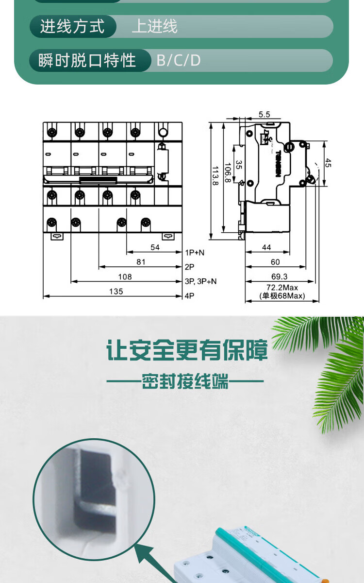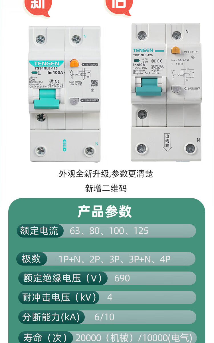 Tianzheng Electric TENGEN air switch leakage protection circuit breaker TGB1NLE series 125A D type 63A 3P+N