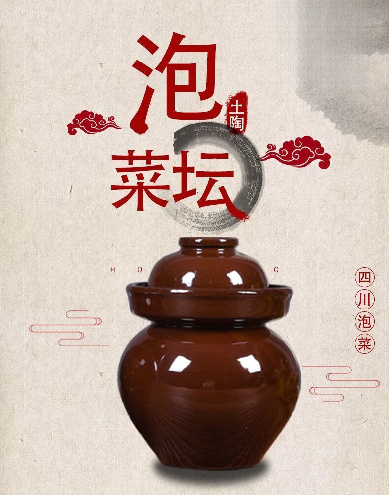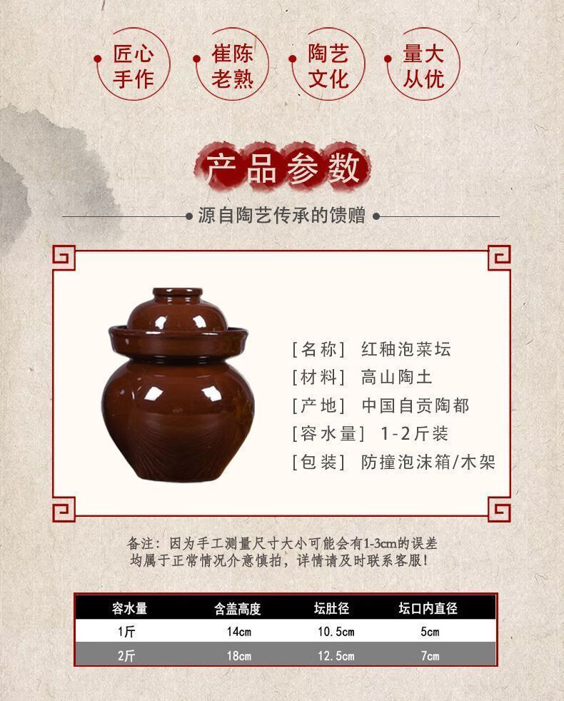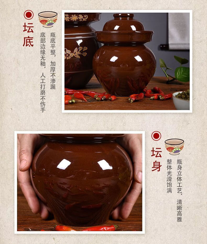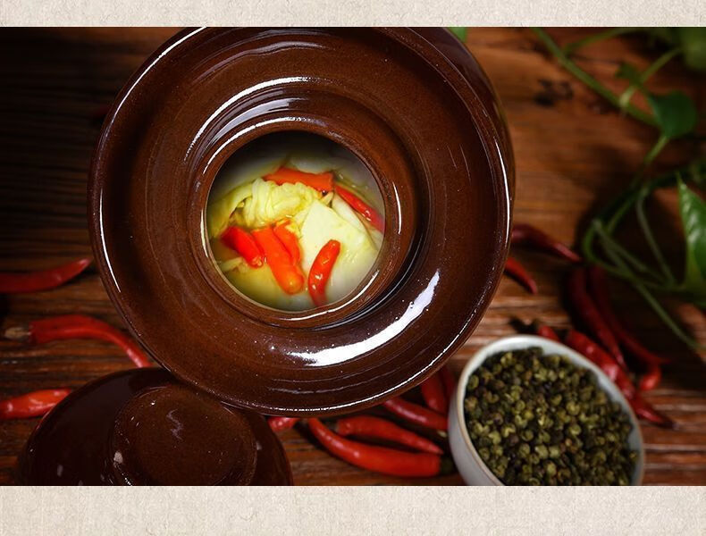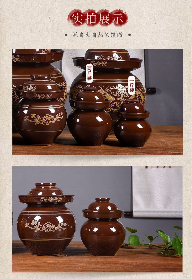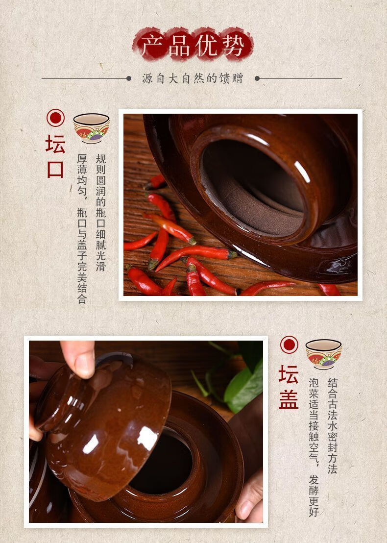 Xiongwochi kimchi jar earthenware old-fashioned earthenware Sichuan thickened sealed sauerkraut pickles pickles household trumpet free pickle salt 2 pounds pickle jar