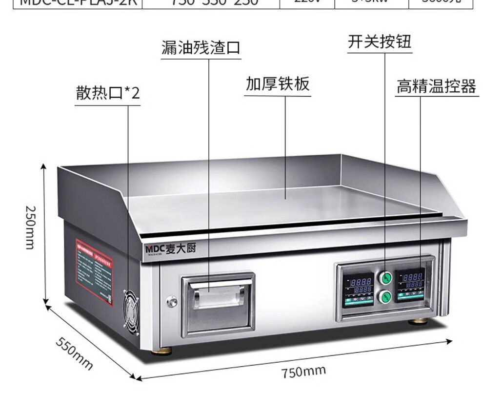 Chef Mai (MDC) commercial teppanyaki equipment Japanese-style Western restaurant hotel large customized Korean electric griddle chain electromagnetic 2.0m teppanyaki (bare metal)