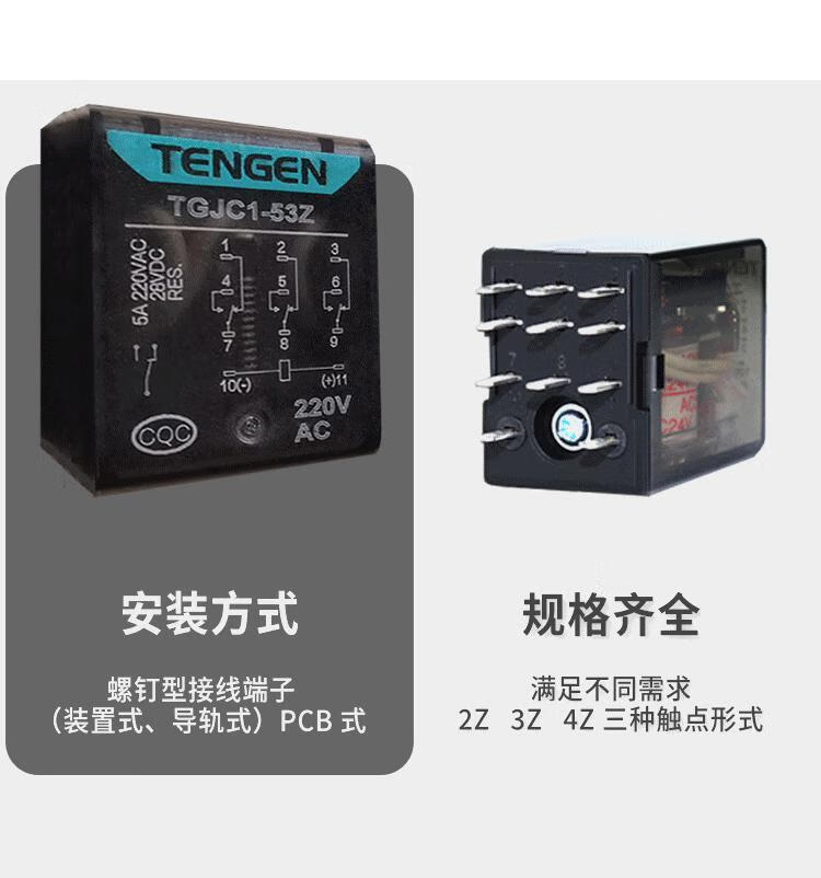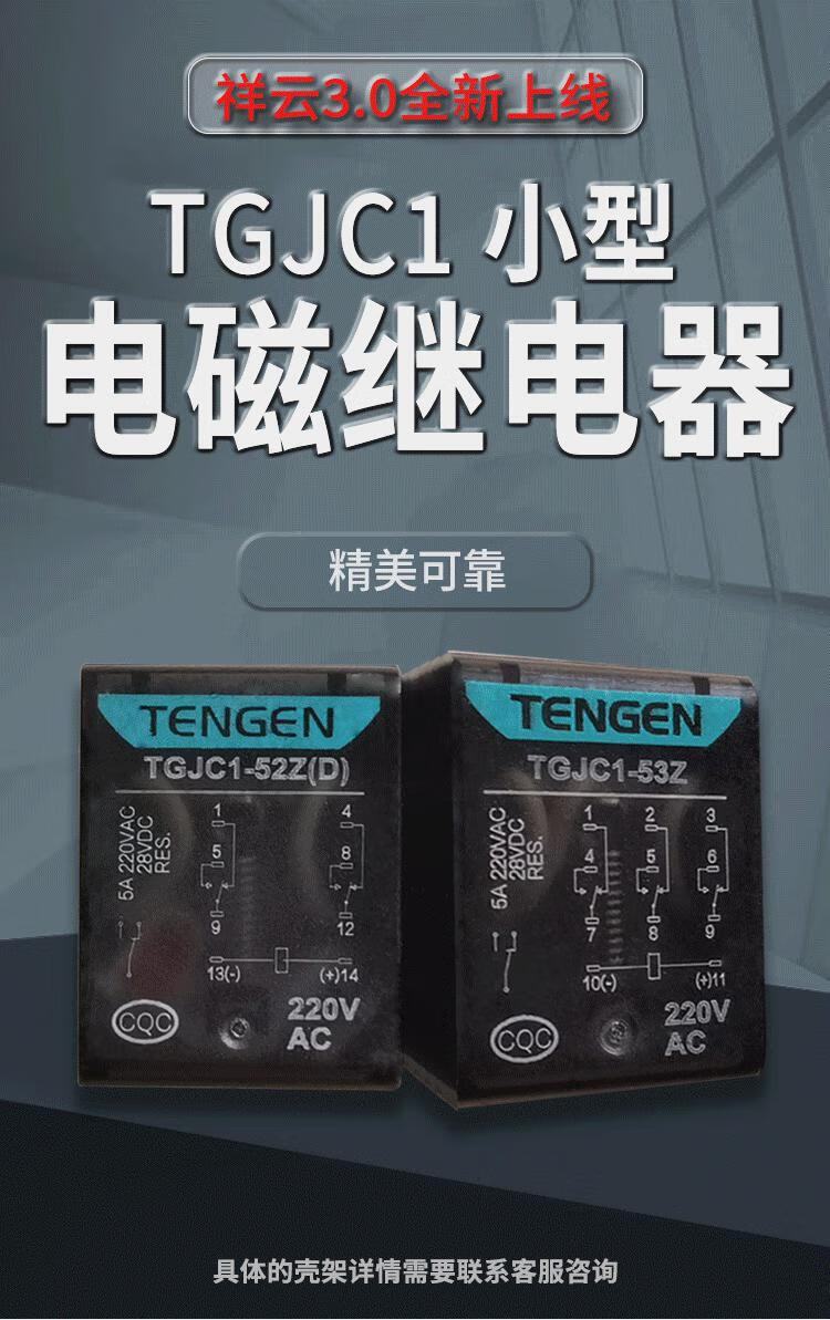 Tianzheng Electric (TENGEN) small electromagnetic relay power delay 4 sets of conversion TGJC1-54Z AC and DC (Xinxiangyun 3.0) TGJC1-54Z A220V with light