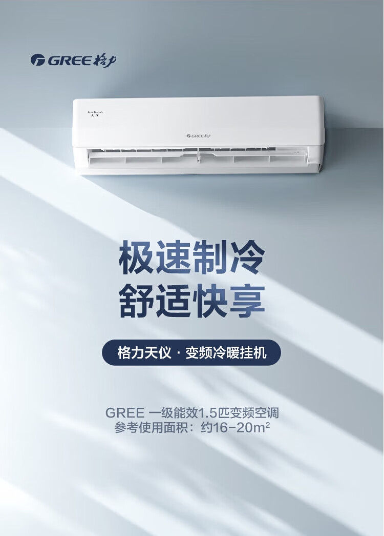 Gree air conditioner 1.5 hp / large 1 hp Tianyi New level of energy efficiency Frequency conversion heating and cooling Wall-mounted bedroom energy-saving hook-up 1.5 HP Level 1 energy efficiency Applicable area 15-20