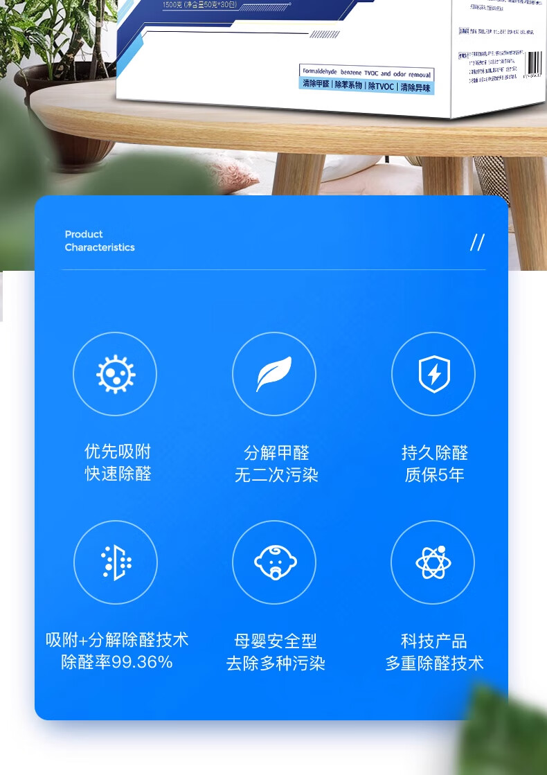 Panjie crystal formaldehyde removal activated carbon packaging repair pan crystal formaldehyde removal household 1500g vacuum packaging two-color granules 50gx30