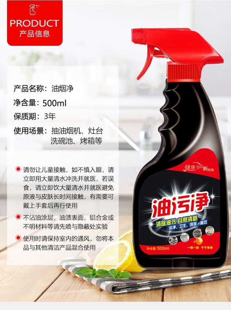 Rex Lemon Oil Cleaner Heavy Oil Cleaner Powerful Oil Removal Multifunctional Kitchen Cleaning Artifact 2 Bottles 1 Nozzle