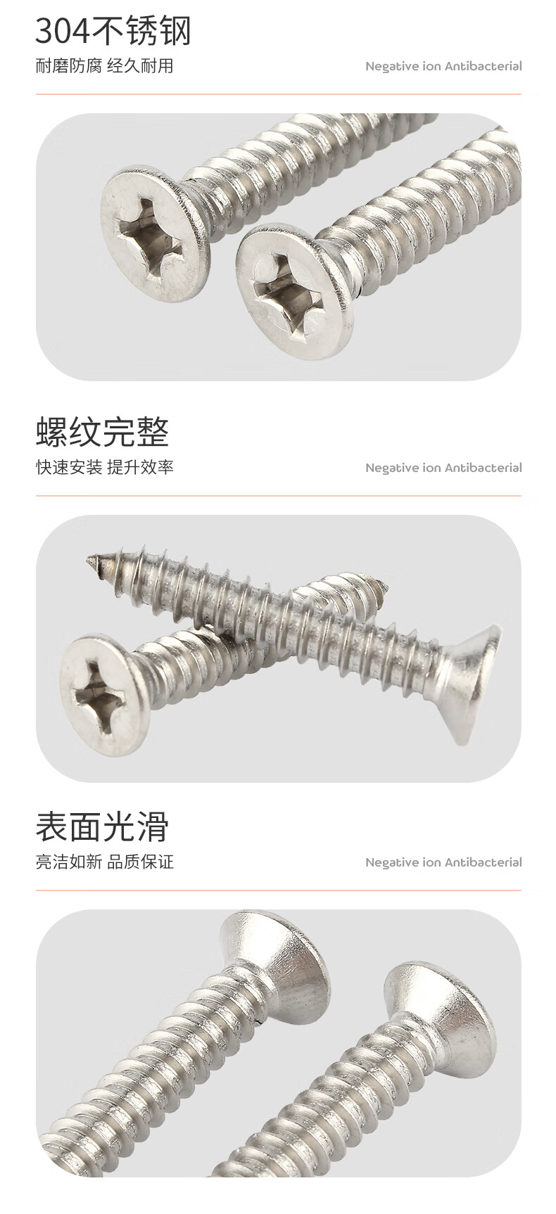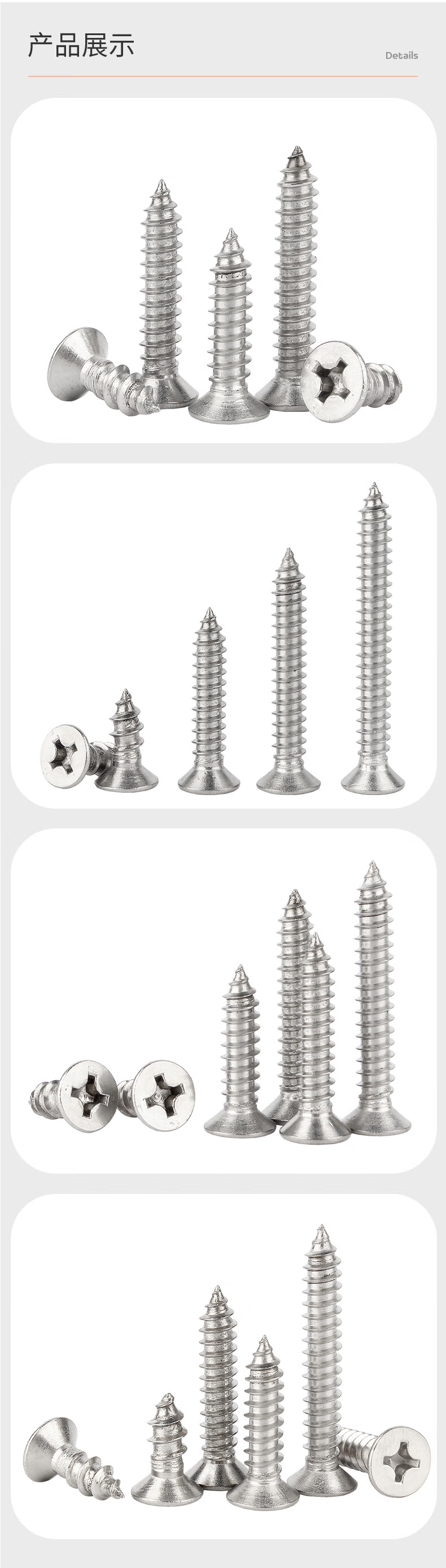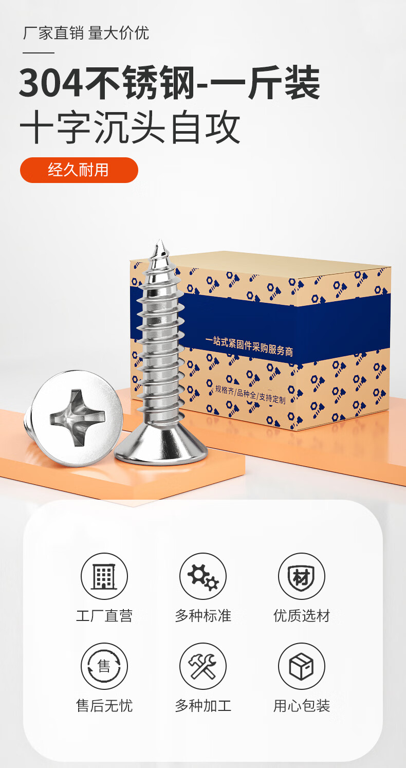 Baodefeng large package 304 stainless steel flat head wood screws cross extended countersunk head self-tapping screws national standard boxed collection M5x45 200 capsules/box