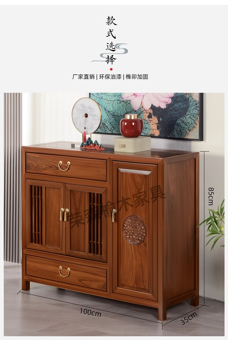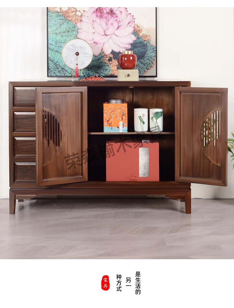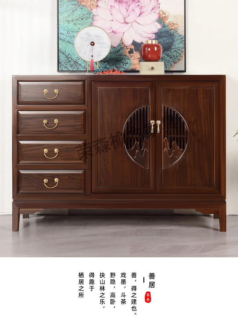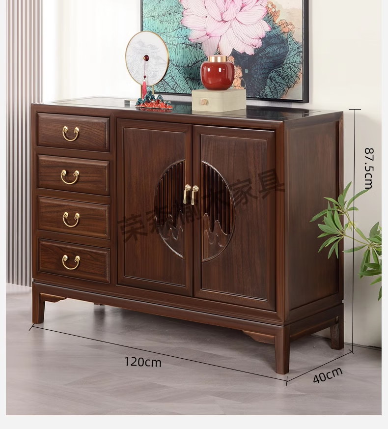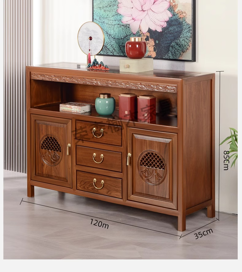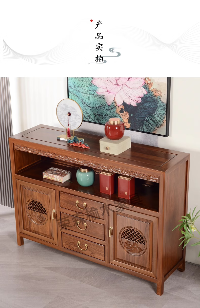 Ruichengtang sideboard solid wood tea cabinet new Chinese style living room wall storage cabinet wine cabinet kitchen tableware cabinet integrated cabinet light walnut 120*35*85