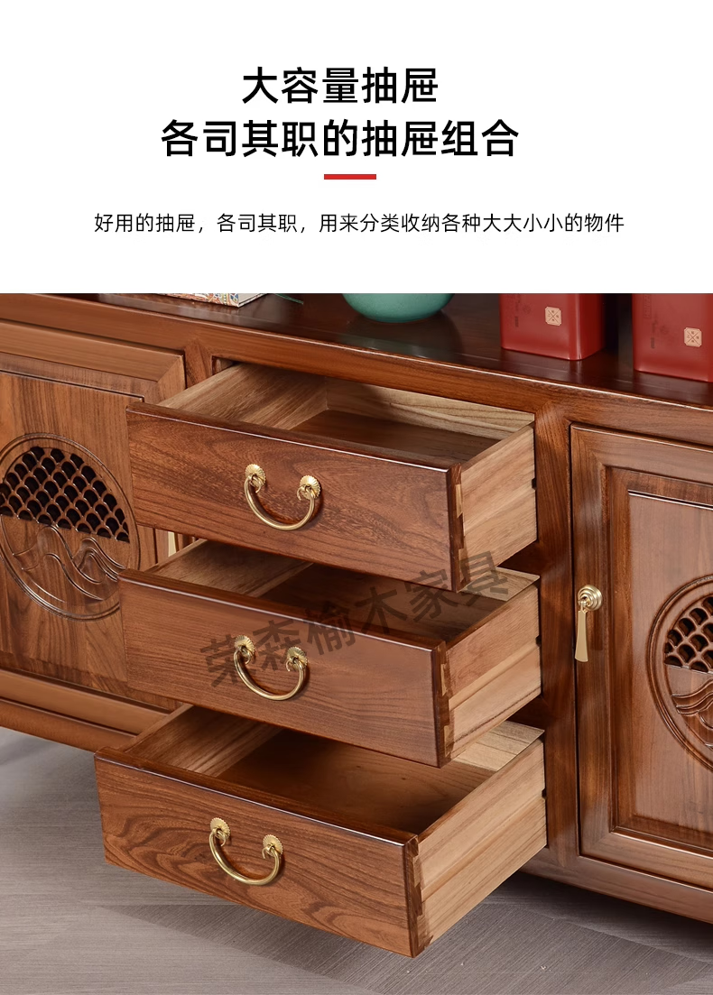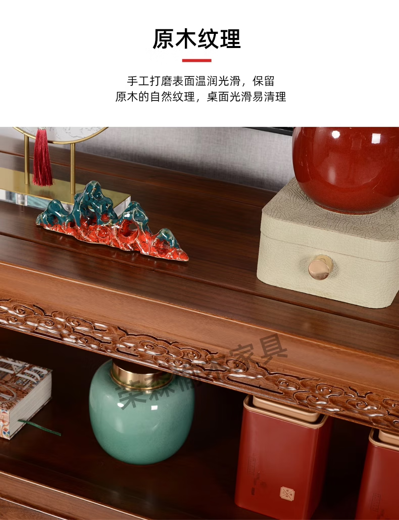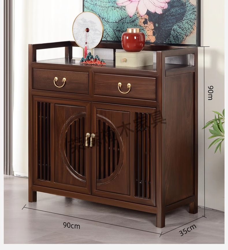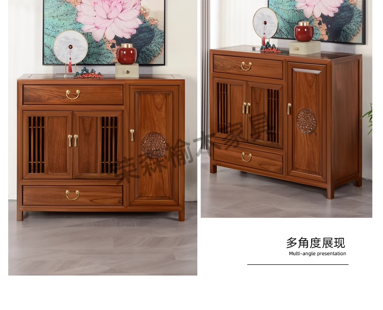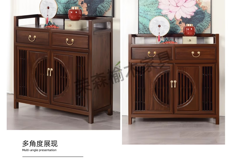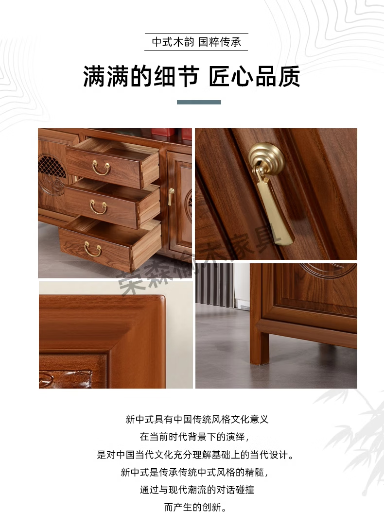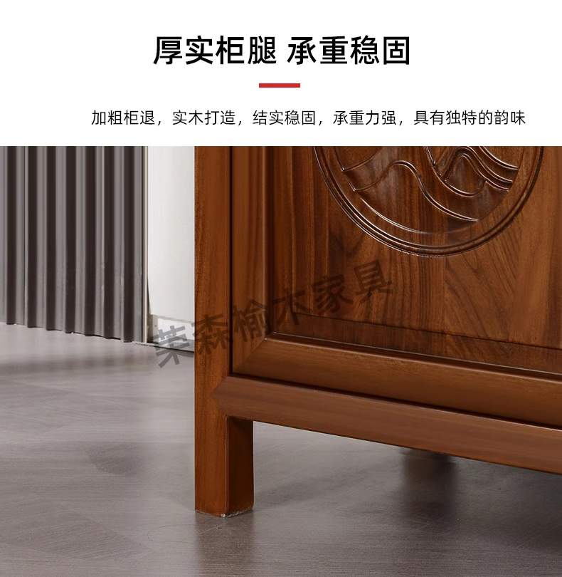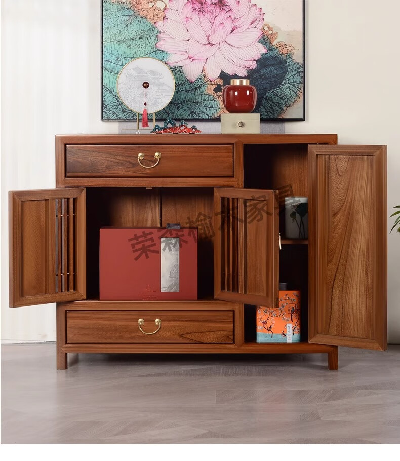 Ruichengtang sideboard solid wood tea cabinet new Chinese style living room wall storage cabinet wine cabinet kitchen tableware cabinet integrated cabinet light walnut 120*35*85