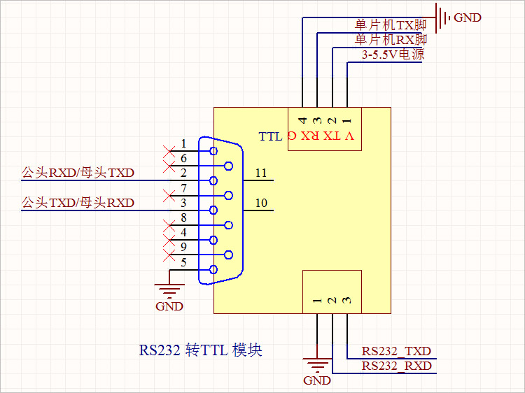 RS232 to TTL to UART serial port module/DB9 male and female/screw nut/two-way conversion brush line 4P row female nut installation