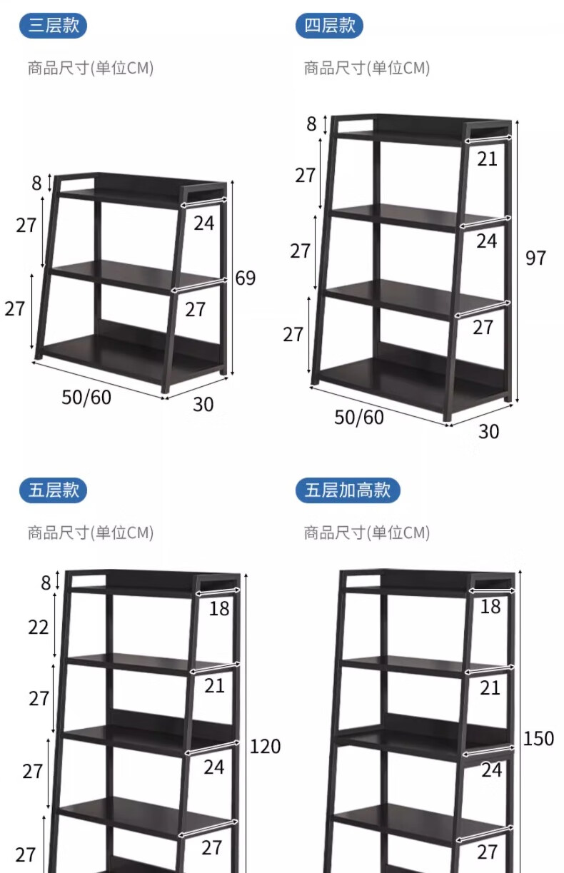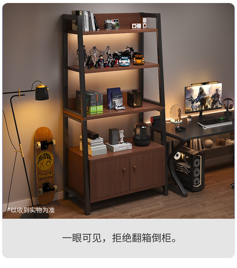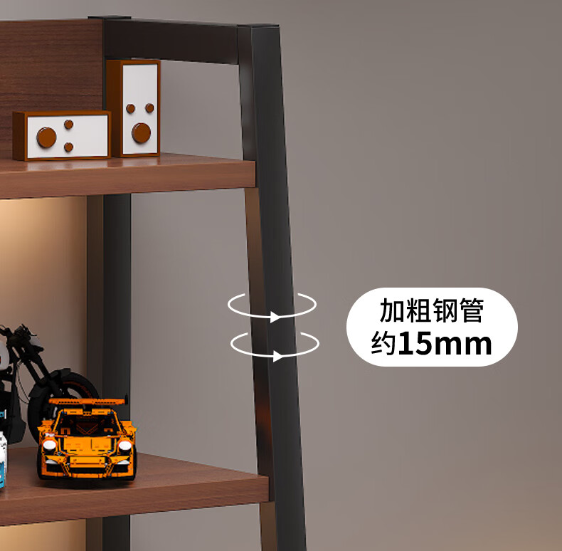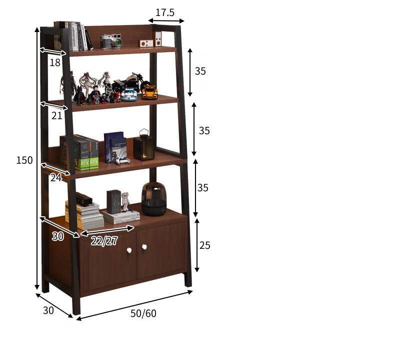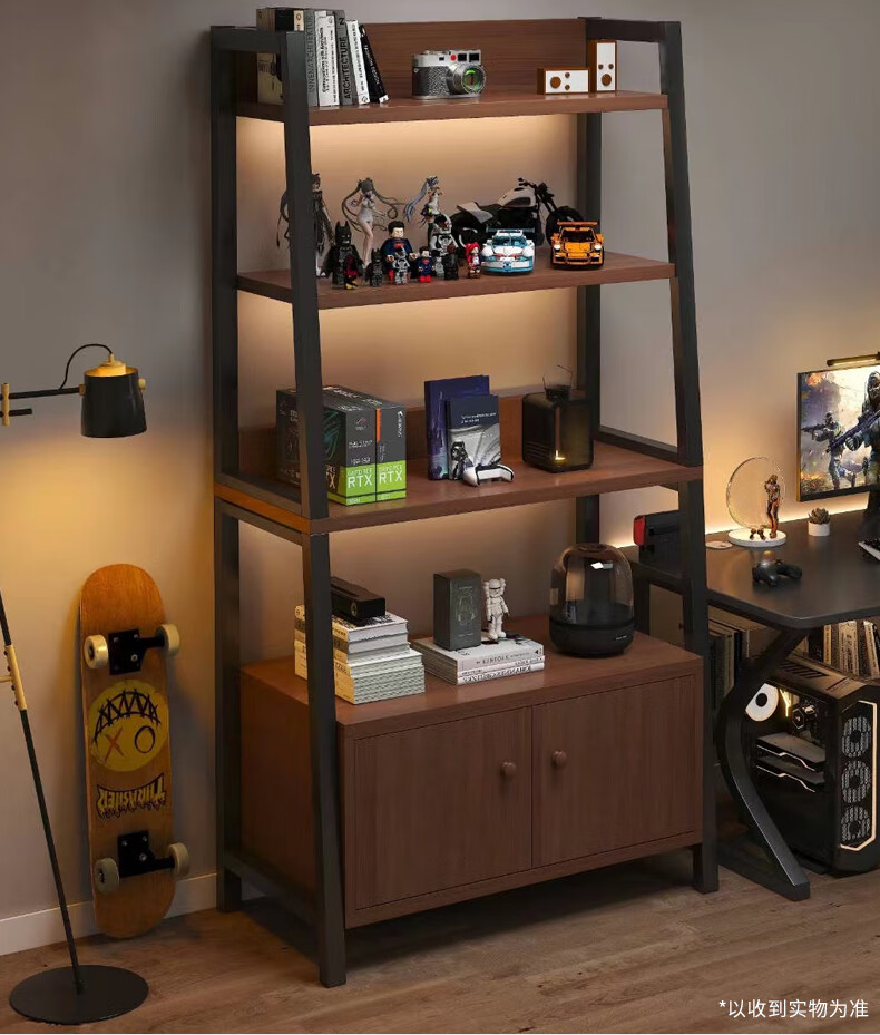 Nessel shelf storage rack multi-layer storage rack home floor-to-ceiling living room desk bookshelf ladder steel wood display storage rack five layers higher walnut color-60*30*150cm