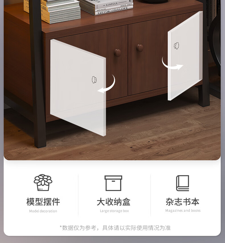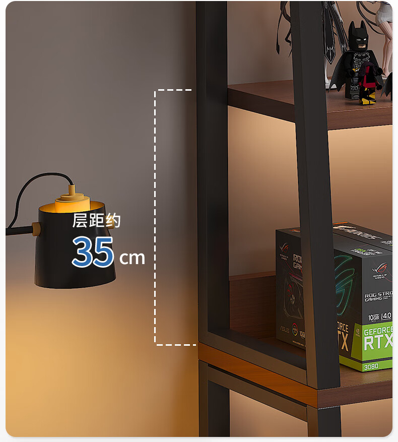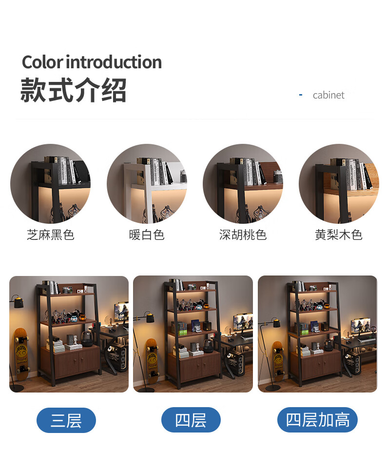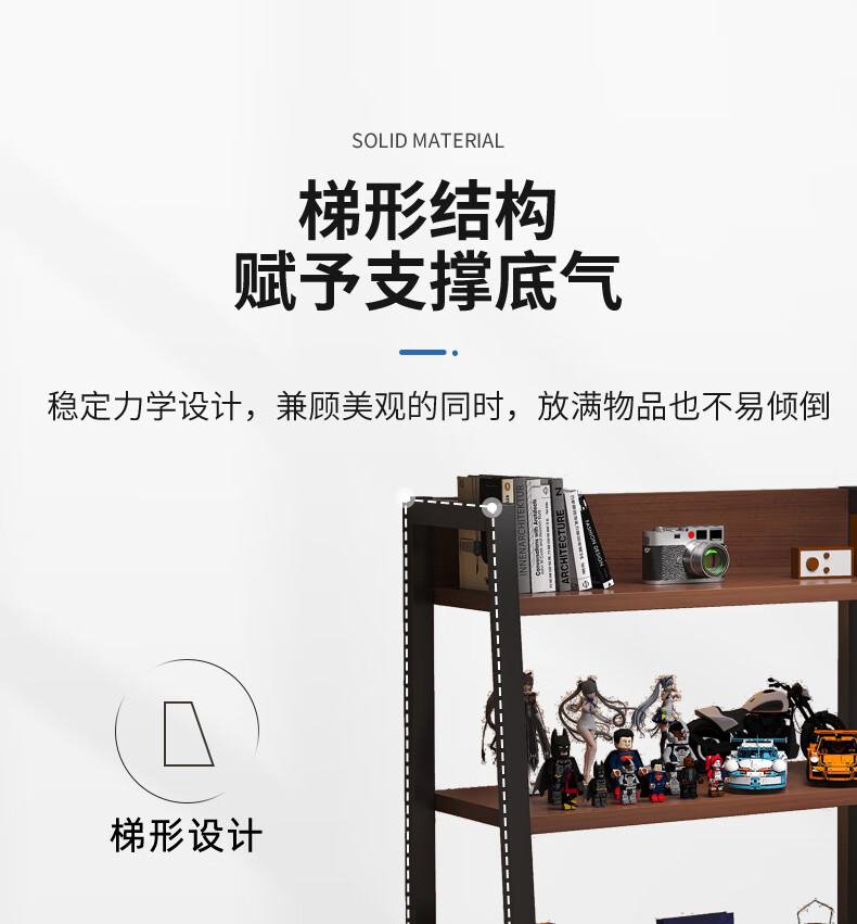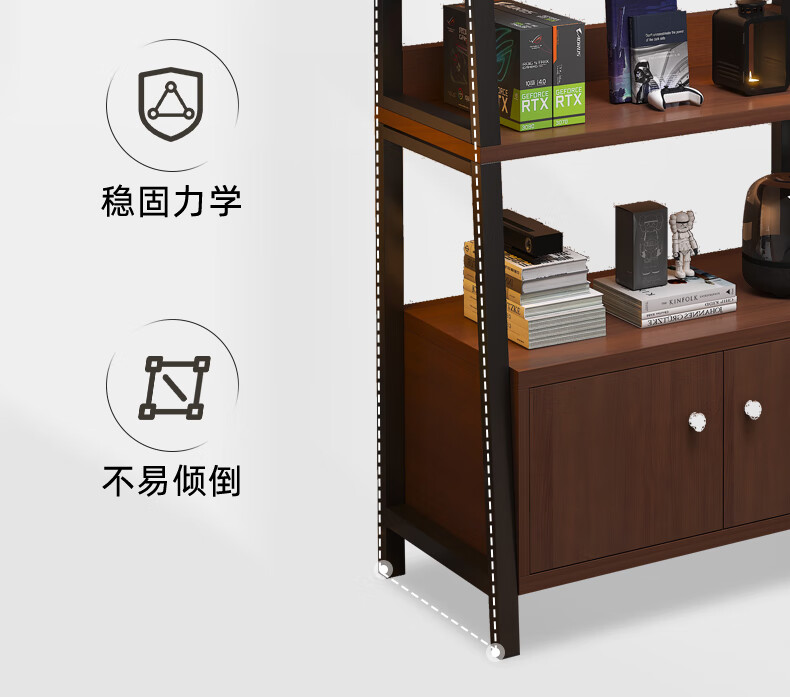 Nessel shelf storage rack multi-layer storage rack home floor-to-ceiling living room desk bookshelf ladder steel wood display storage rack five layers higher walnut color-60*30*150cm