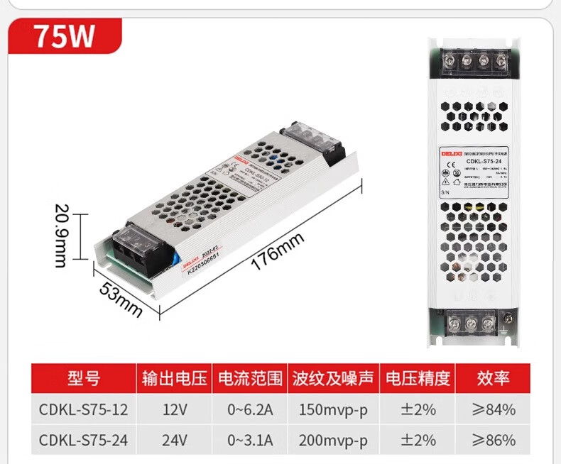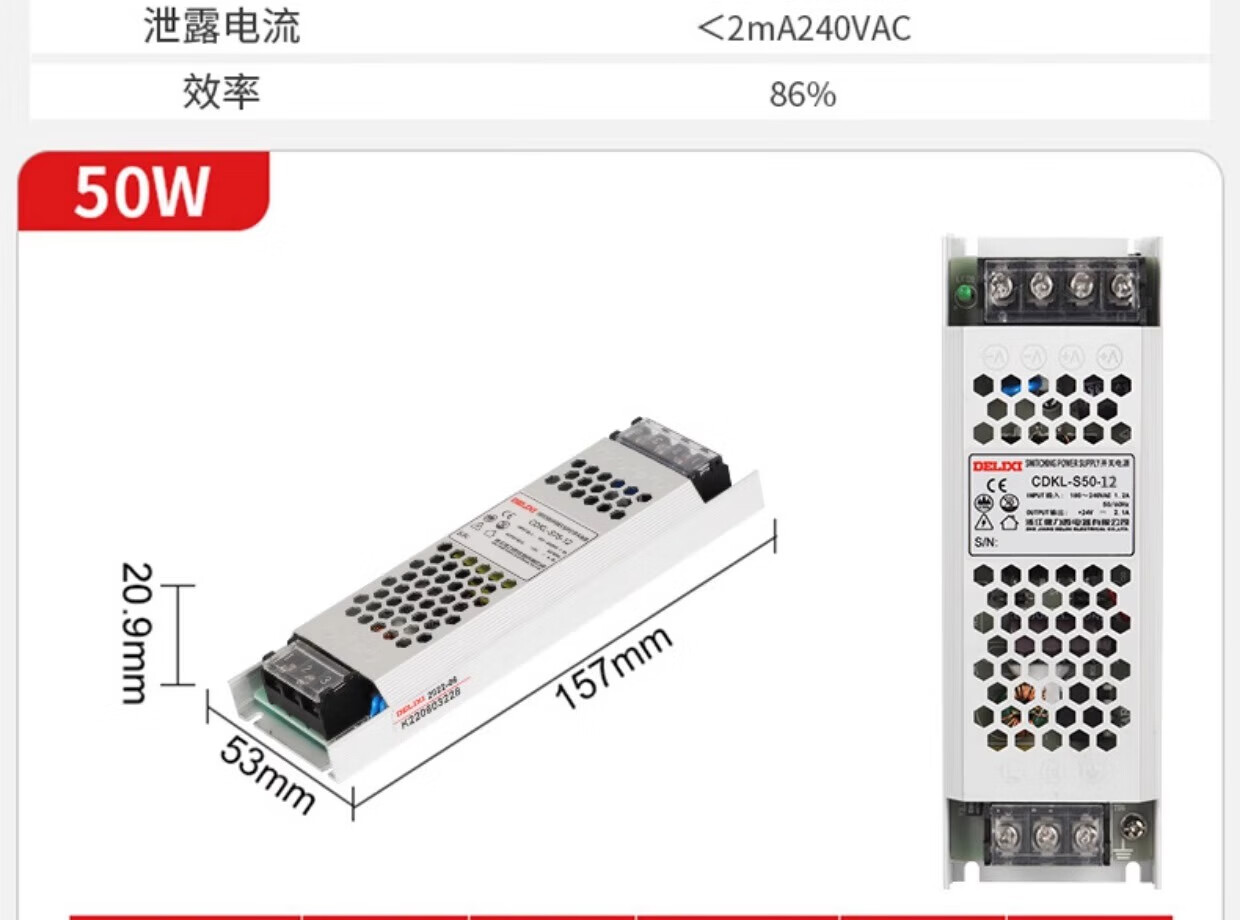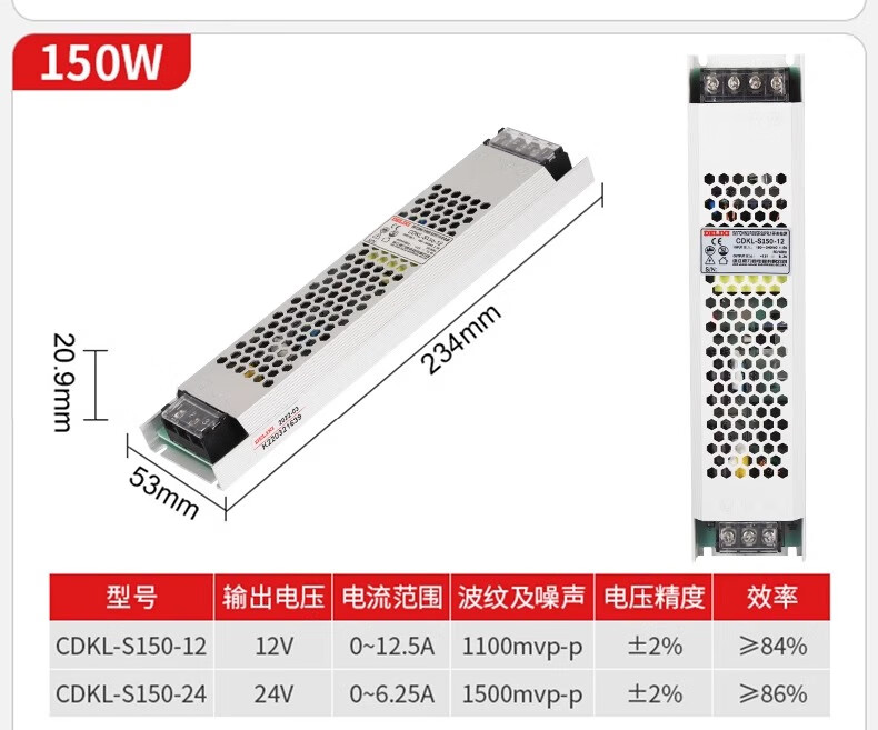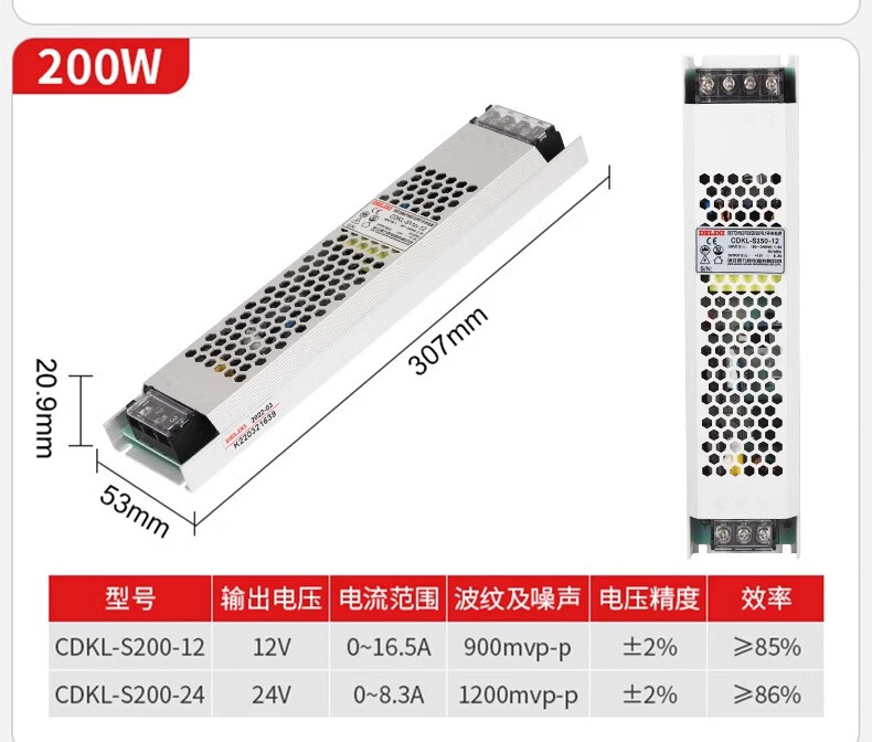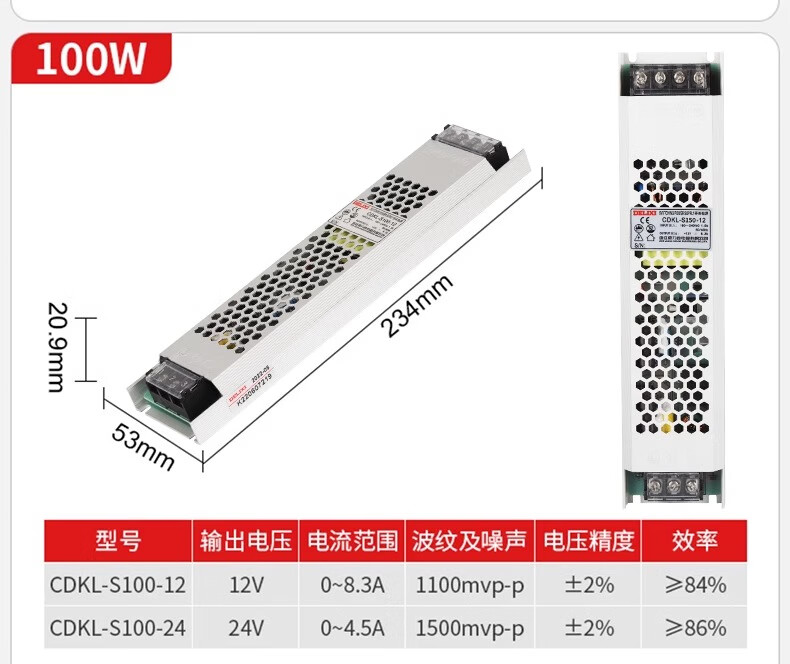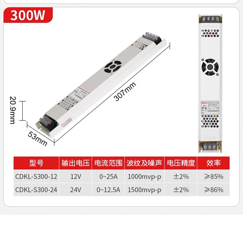 Delixi transformer 220V to 12V ultra-thin advertising switching power supply 24 lamp strip box DC linearity CDKL-S300W12V/25A