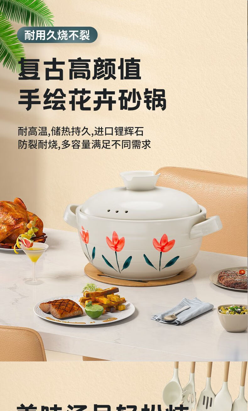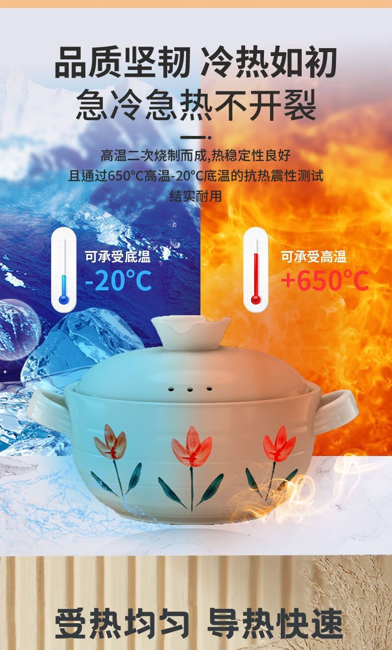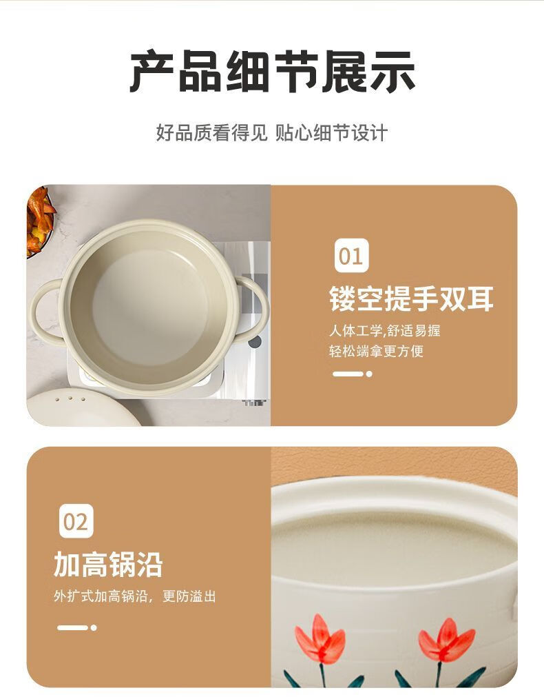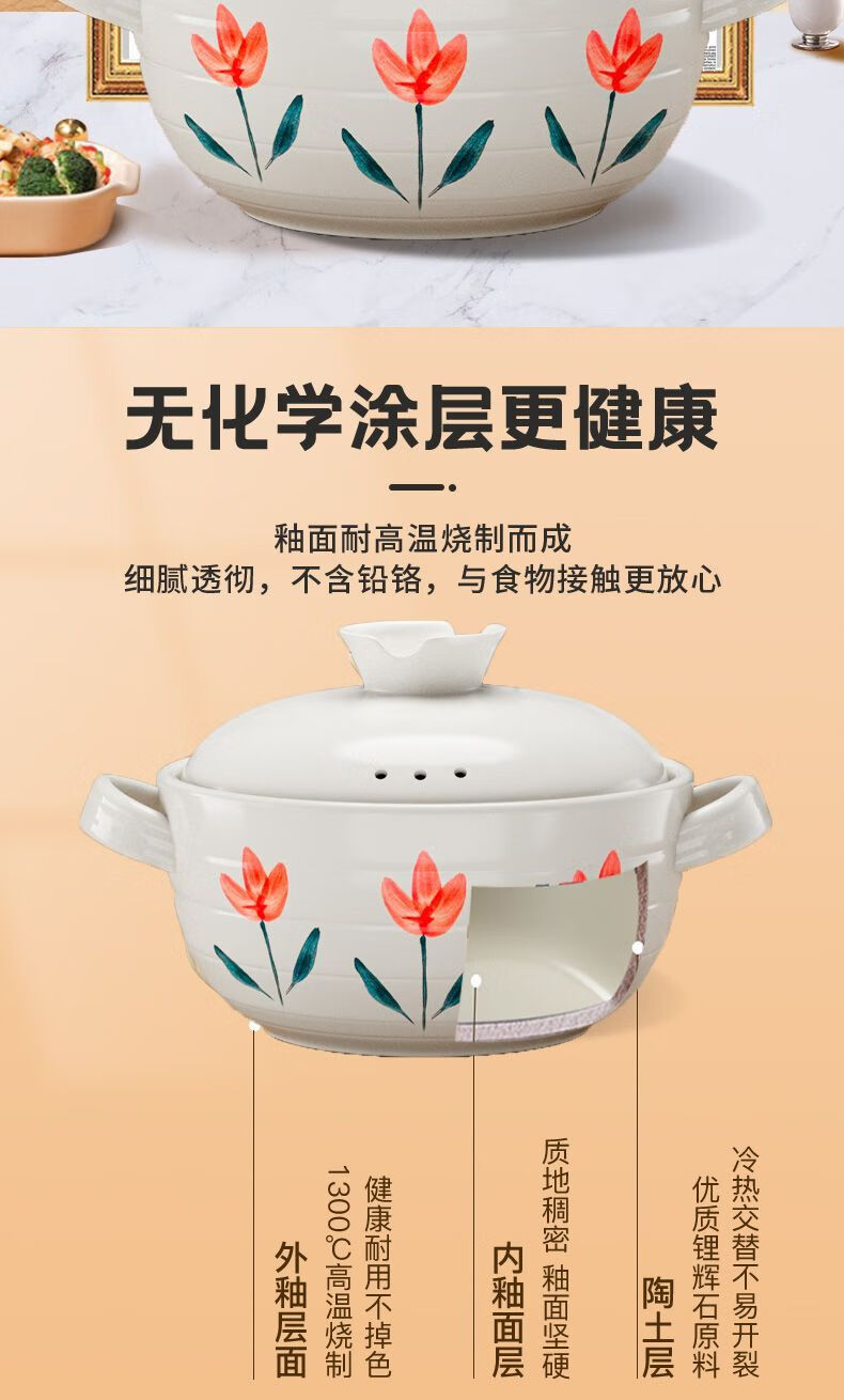 Cui Dahuang hand-painted casserole stew pot, high temperature resistant household soup pot, open flame ceramic clay pot, casserole pot, porcelain pot, burnt and replaced, suitable for 3-6 people, 3.5L