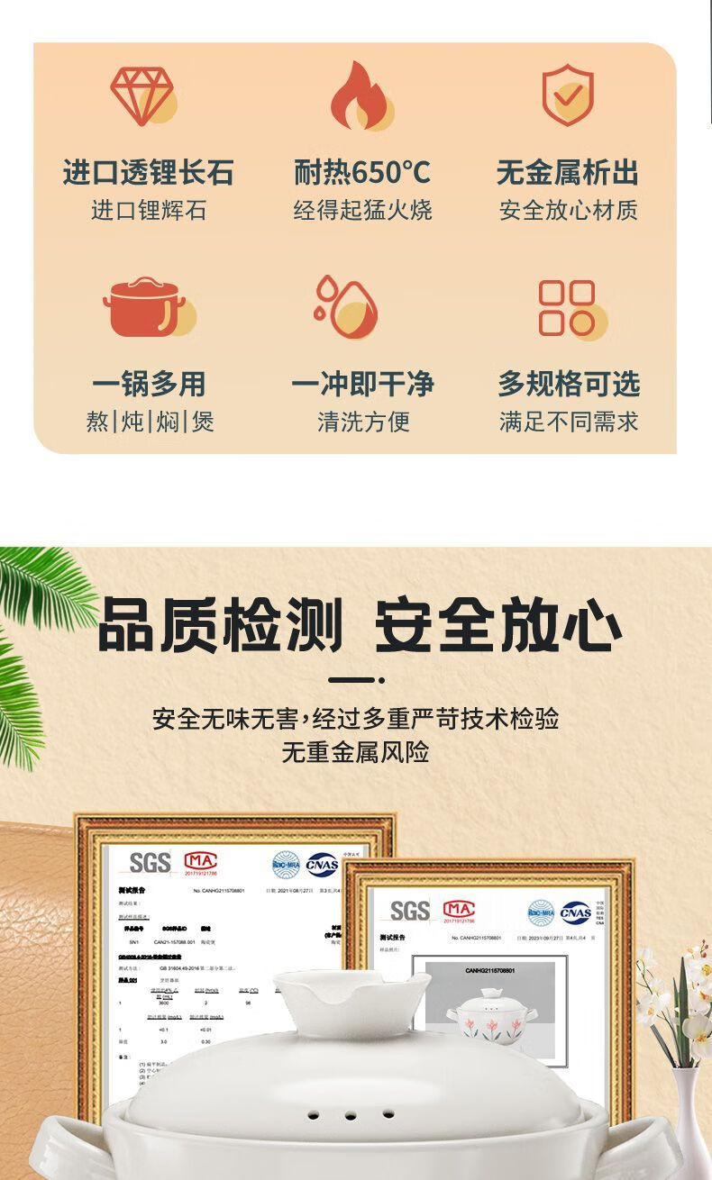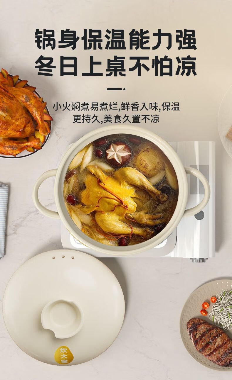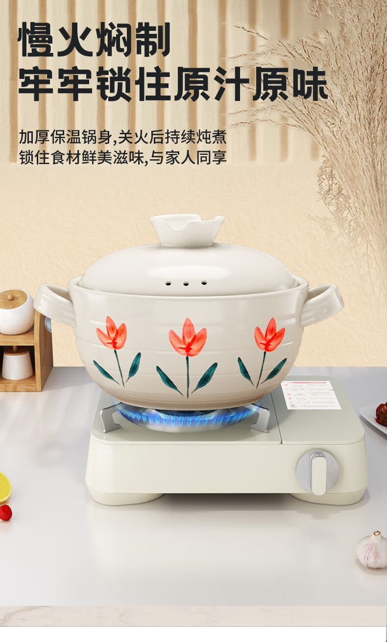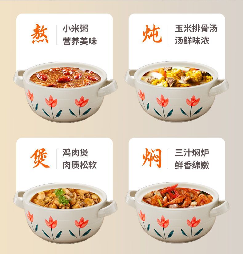 Cui Dahuang hand-painted casserole stew pot, high temperature resistant household soup pot, open flame ceramic clay pot, casserole pot, porcelain pot, burnt and replaced, suitable for 3-6 people, 3.5L