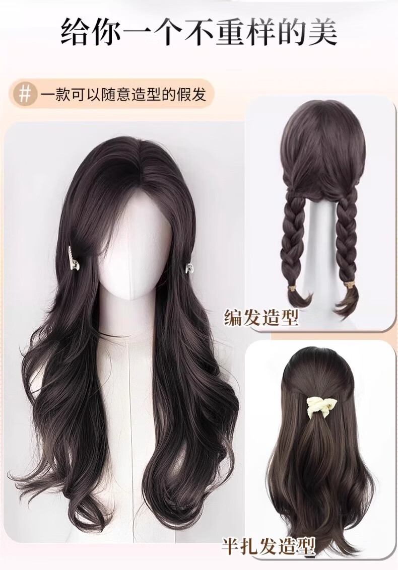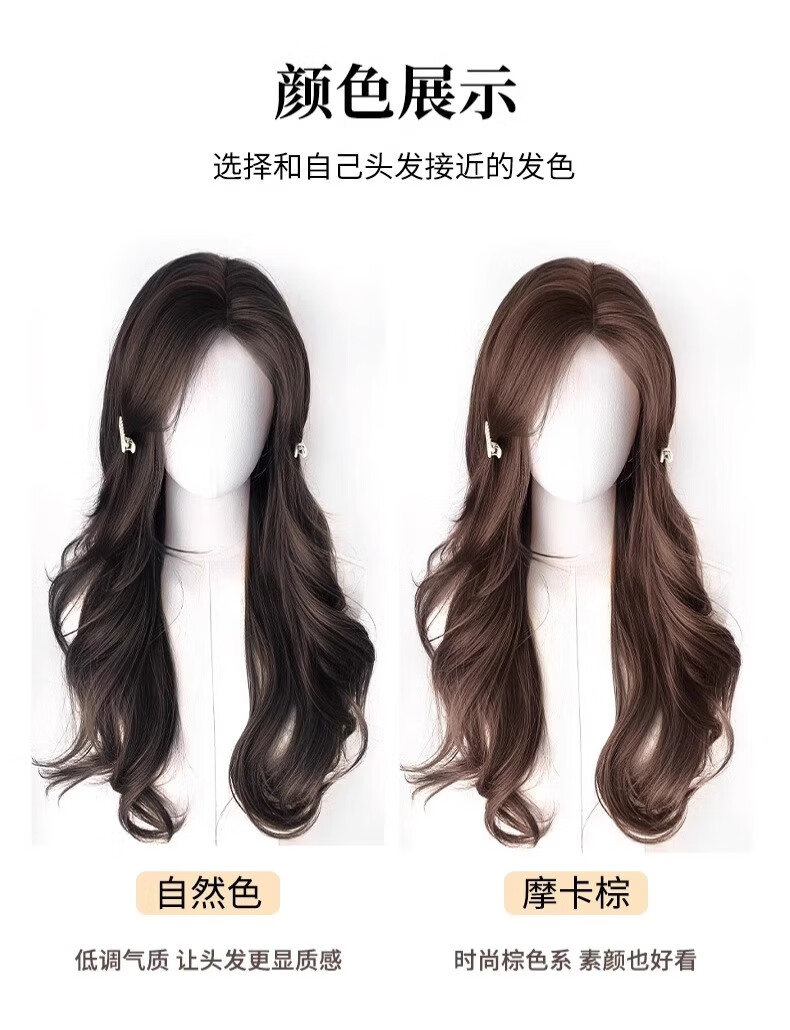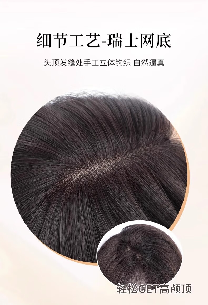 Sky Tree does not need to wear a hair net, wig for women, top of head replacement hair extension to increase hair volume, fluffy, high skull, large wavy, long curly hair replacement, no need to wear hair net, mocha brown, medium section