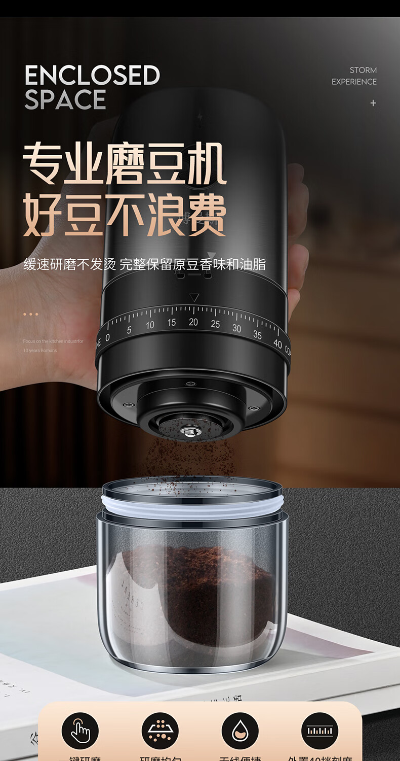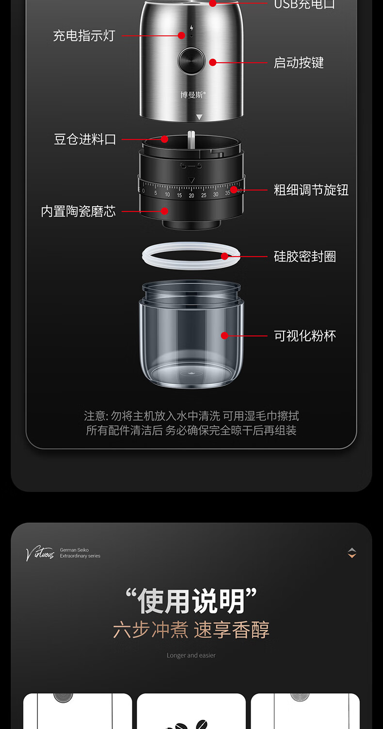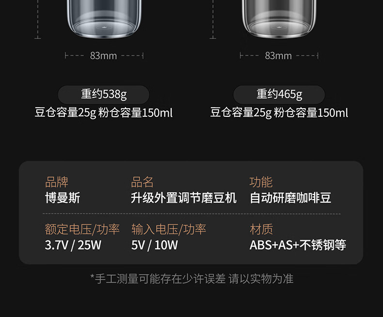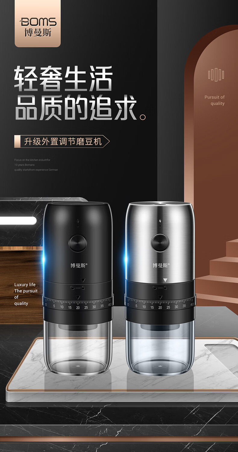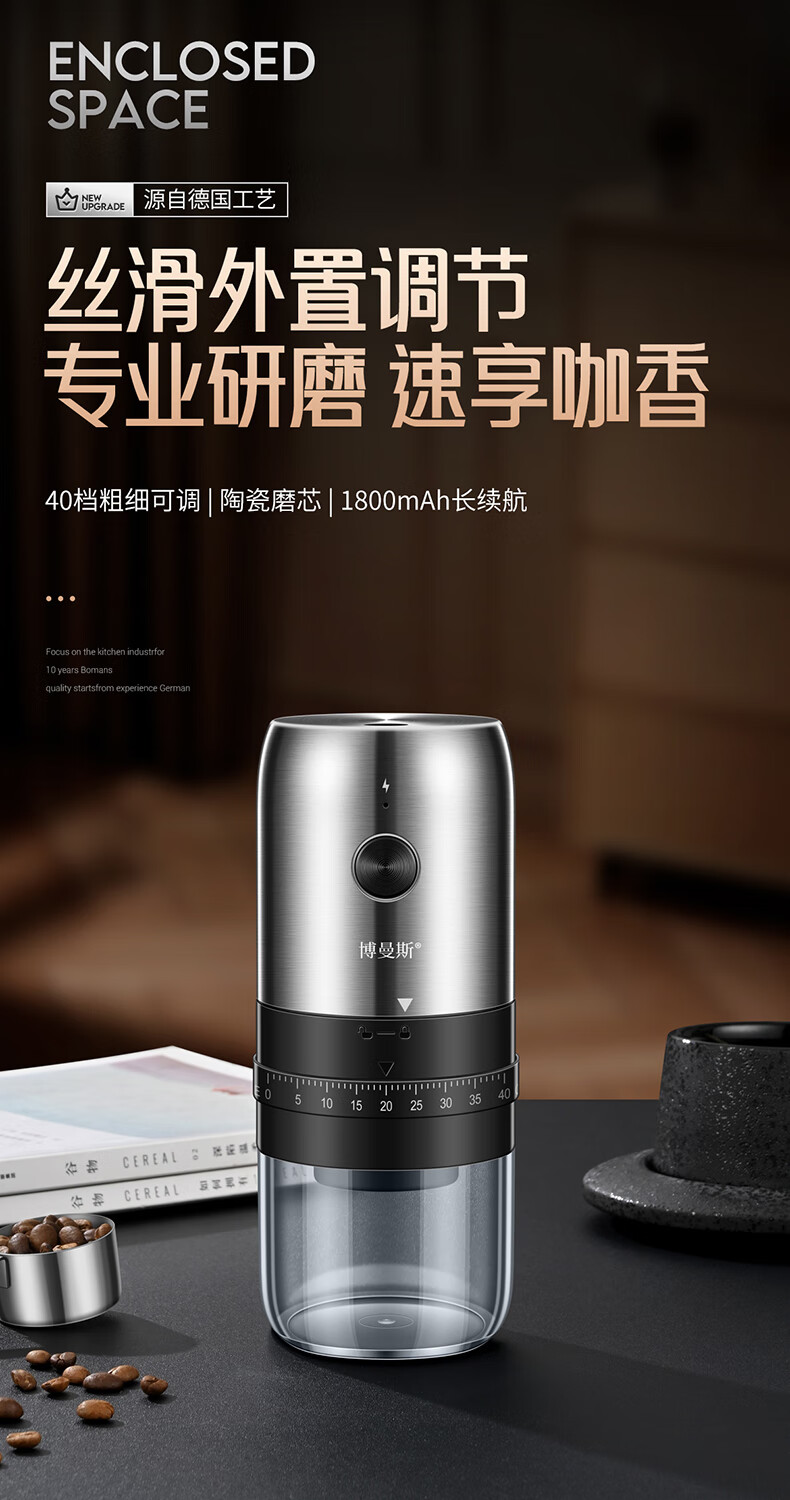 Bomans Electric Grinder Coffee Grinder Hand-cranked Coffee Bean Automatic Grinder Portable Hand-Grinder Coffee Machine Upgraded External Adjustable Grinder (Steel Shell)