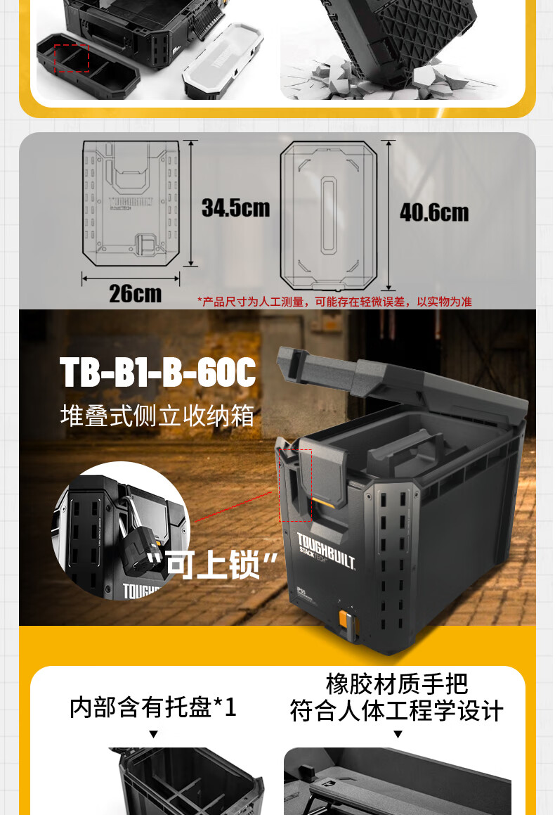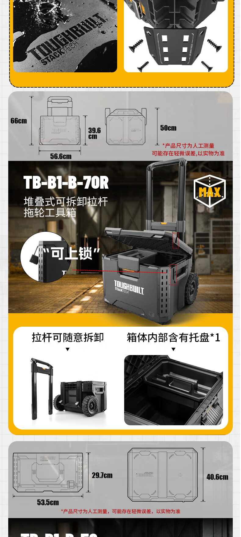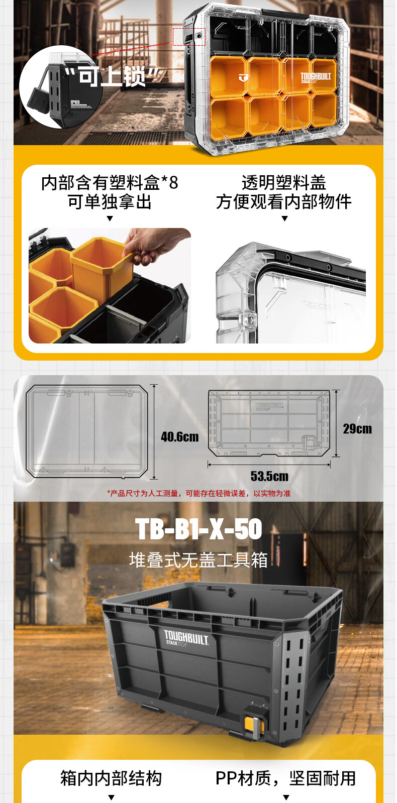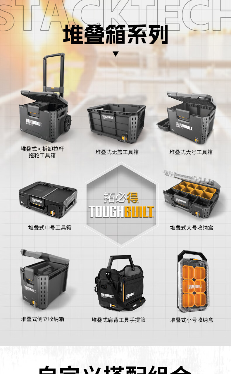 TOUGHBUILT stackable tool box three-piece set pull rod multi-functional repair vehicle combination with storage stacking box stackable tool box 4-piece set