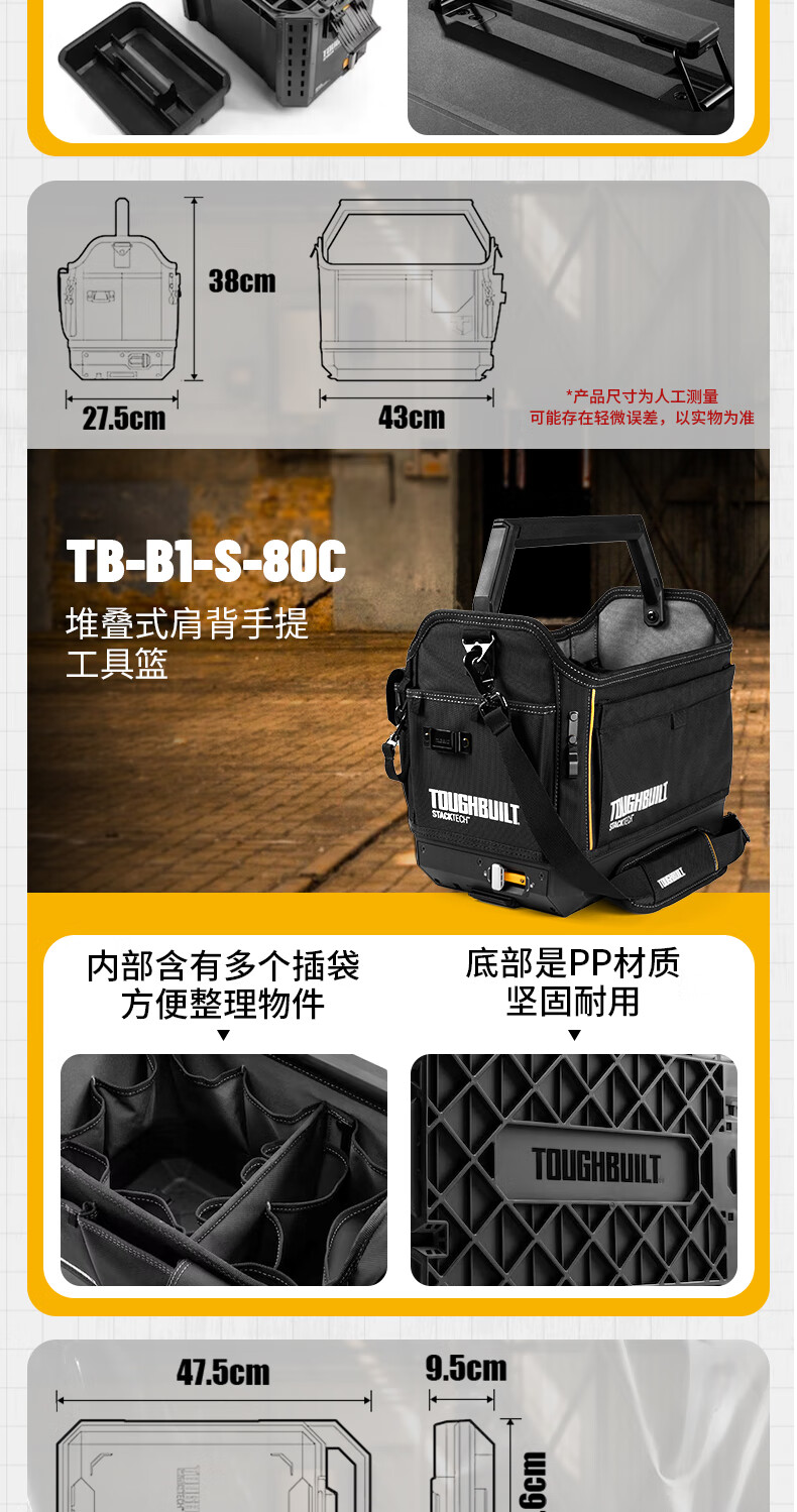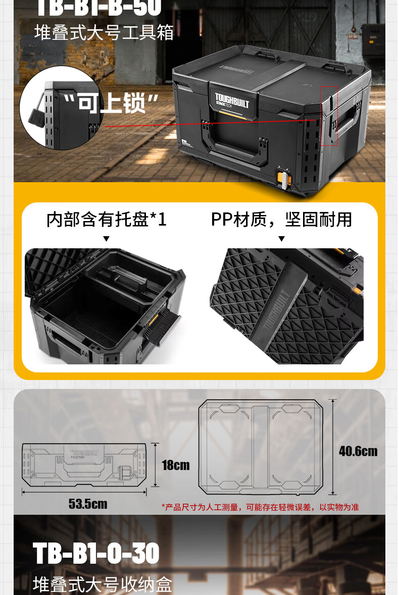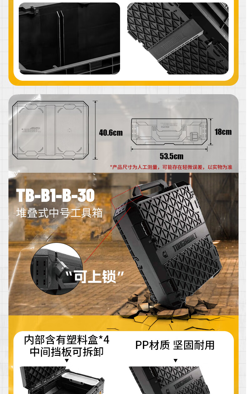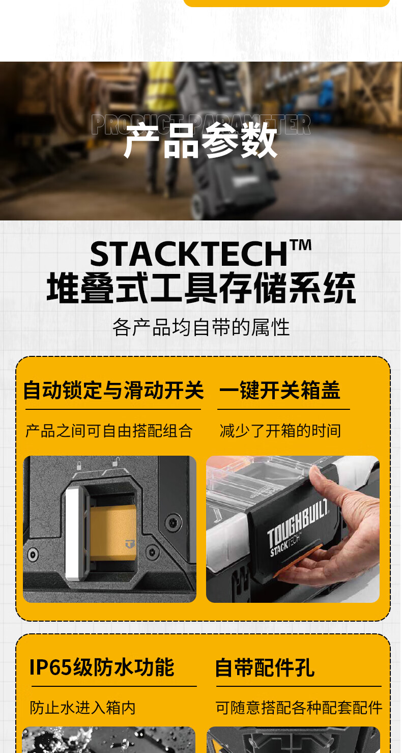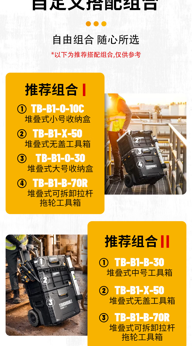 TOUGHBUILT stackable tool box three-piece set pull rod multi-functional repair vehicle combination with storage stacking box stackable tool box 4-piece set