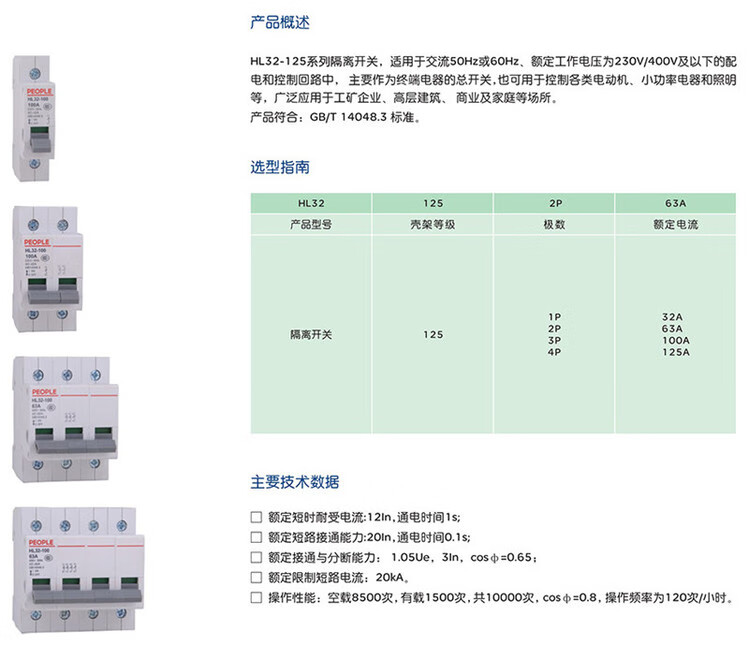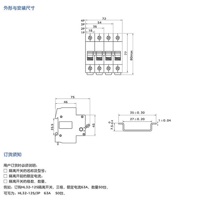 Small isolation switch HL32-100 125 power generation 4P single-phase three-phase 2P HL32-100 16A 1P