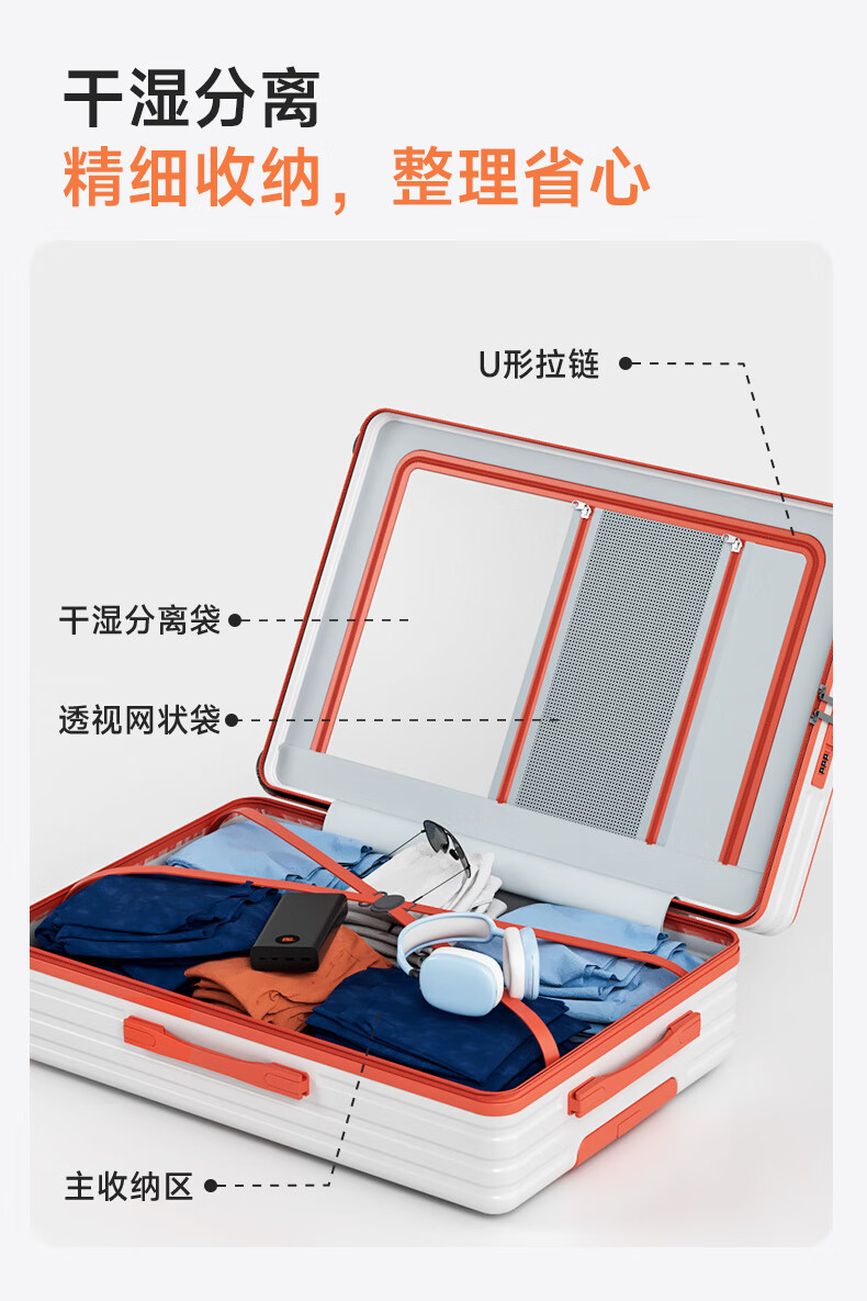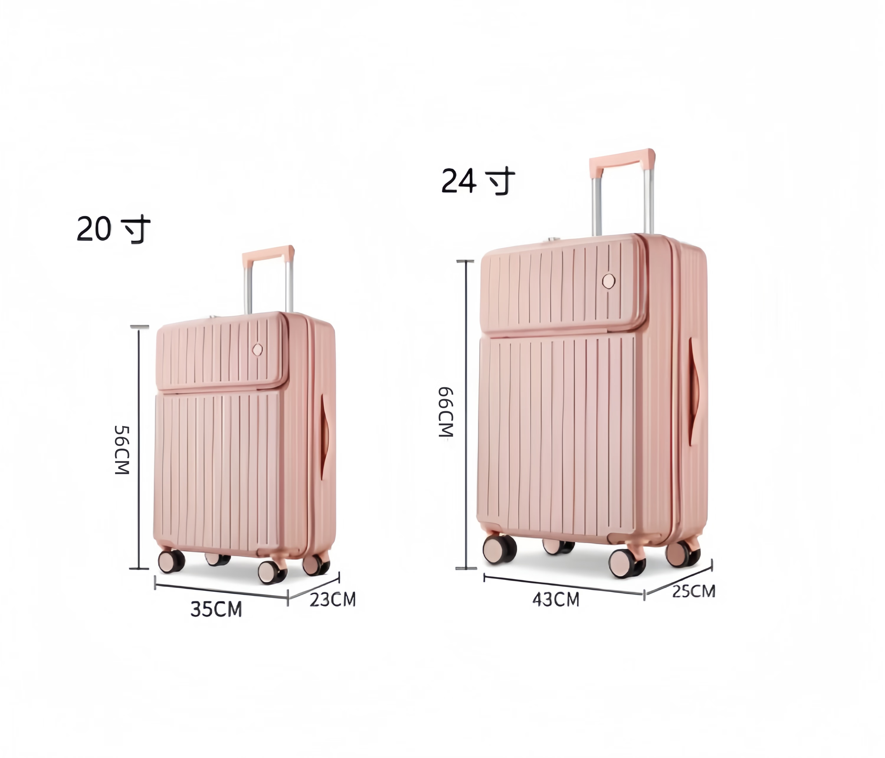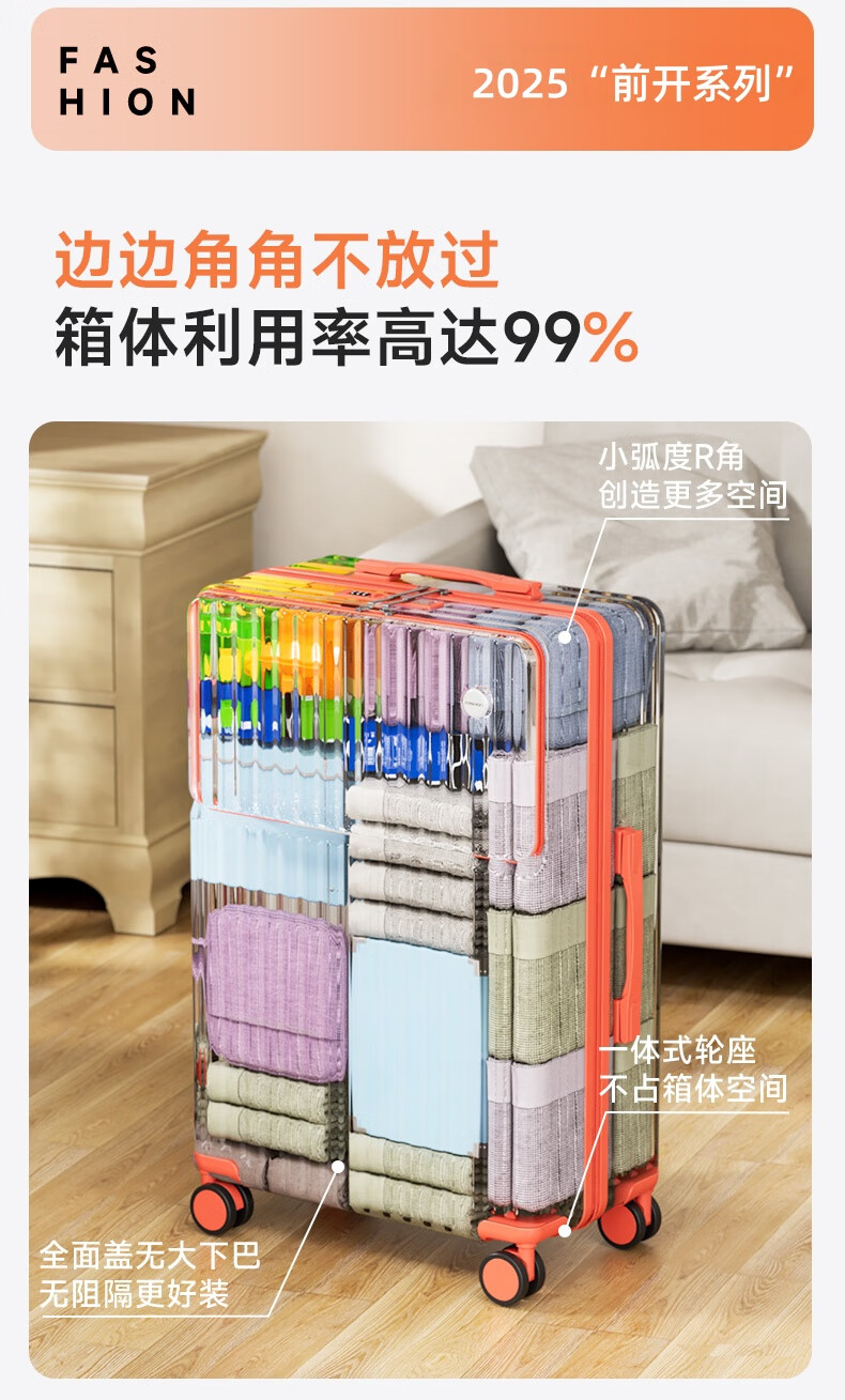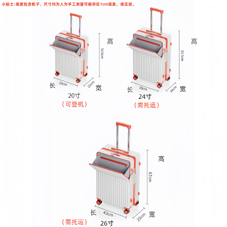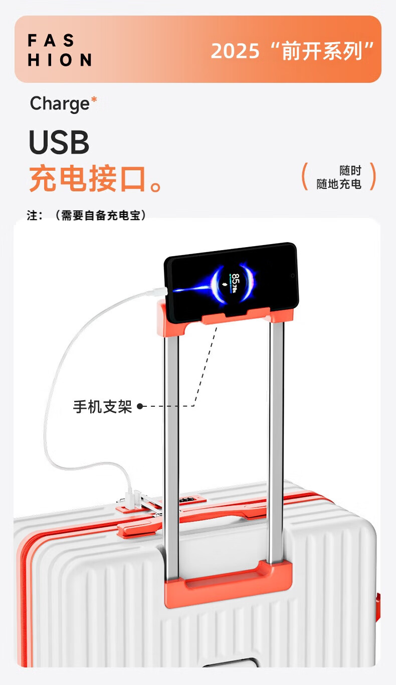 Kangaroo multifunctional front opening suitcase next day delivery small expandable trolley suitcase thickened leather suitcase front opening zipper style / obsidian black + rear cup holder 20 inches carry-on case + charging port + expandable
