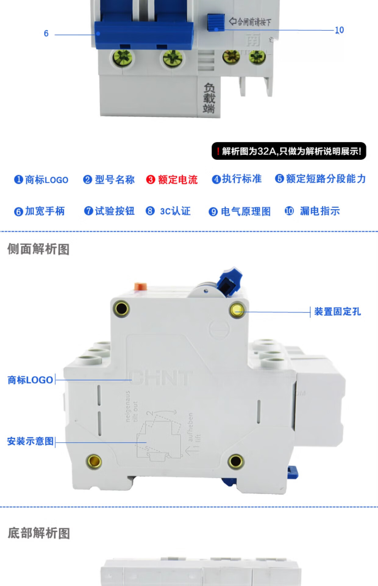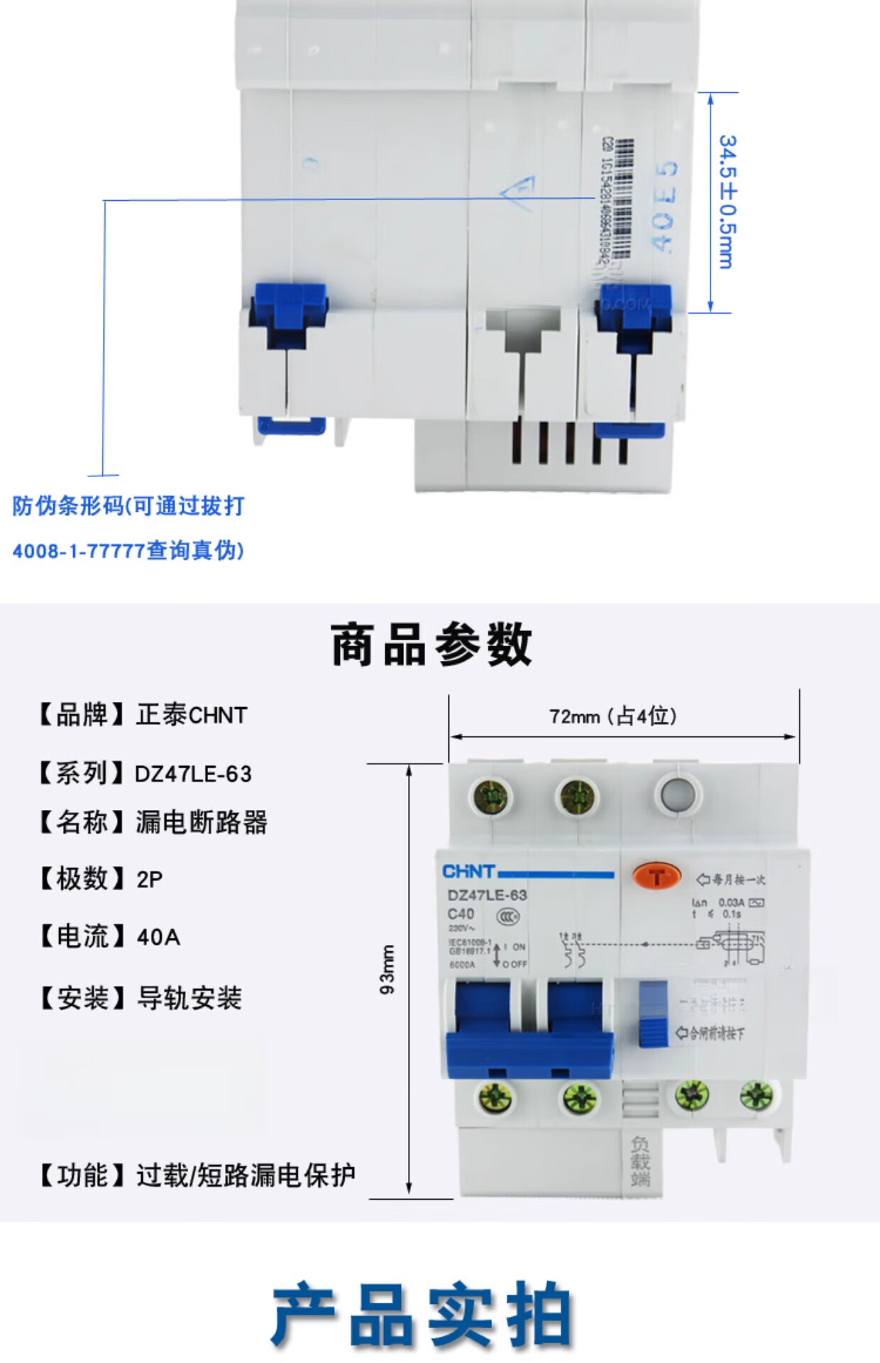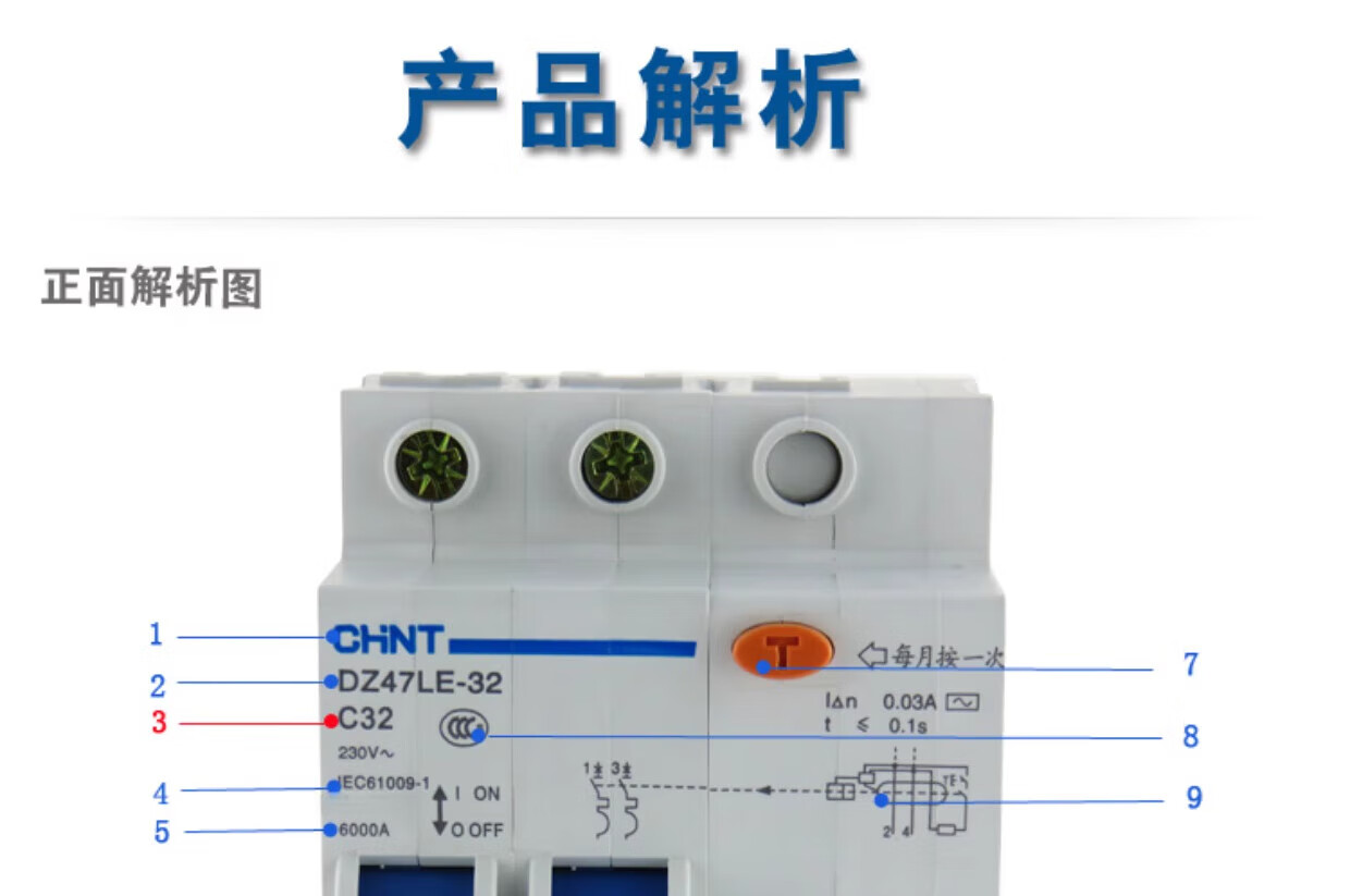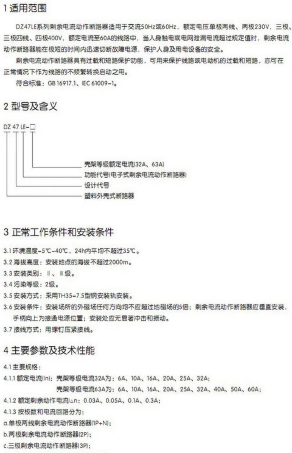 DZ47LE-63 C40 electric shock leakage protection circuit breaker 40A 2P