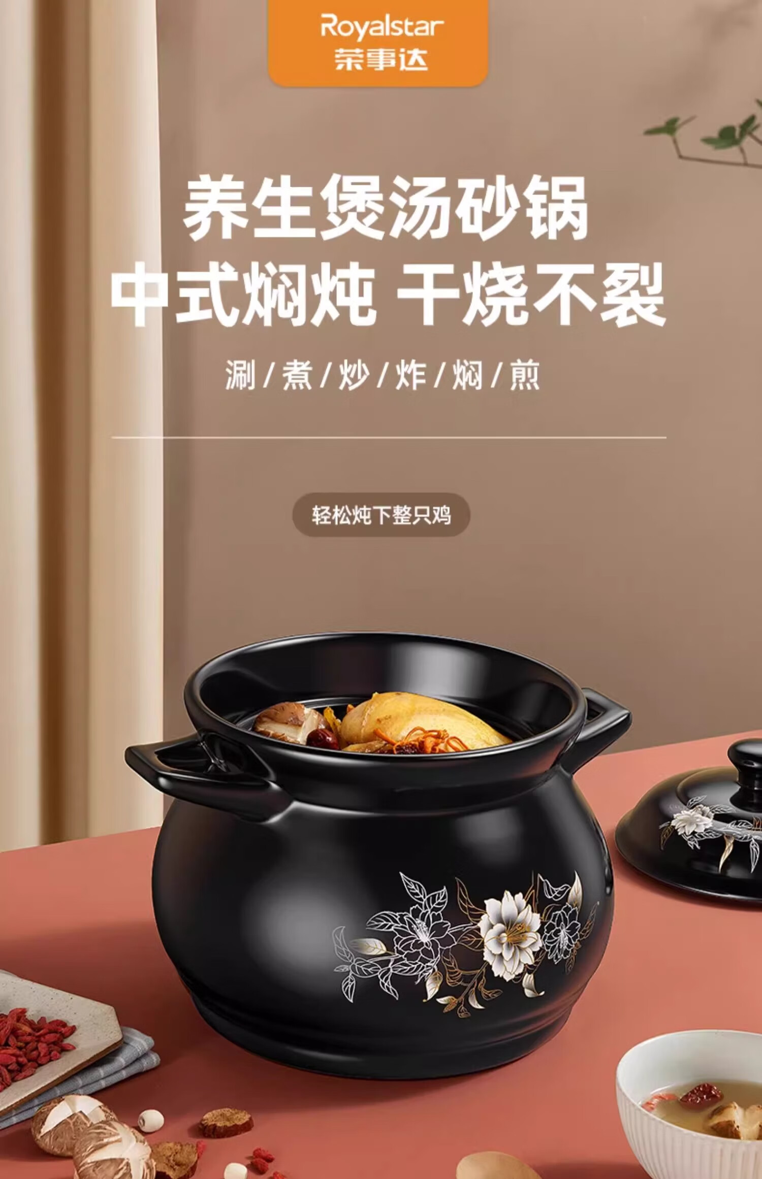 Royalstar casserole soup pot, high temperature resistant dry-burning non-cracking Chinese medicine pot, decoction pot, gas stove special pot belly pot, health pot (6-7 people) 6.3L