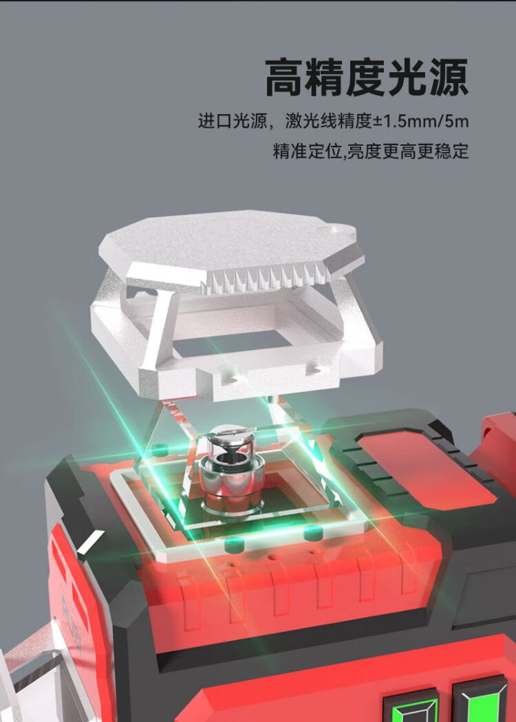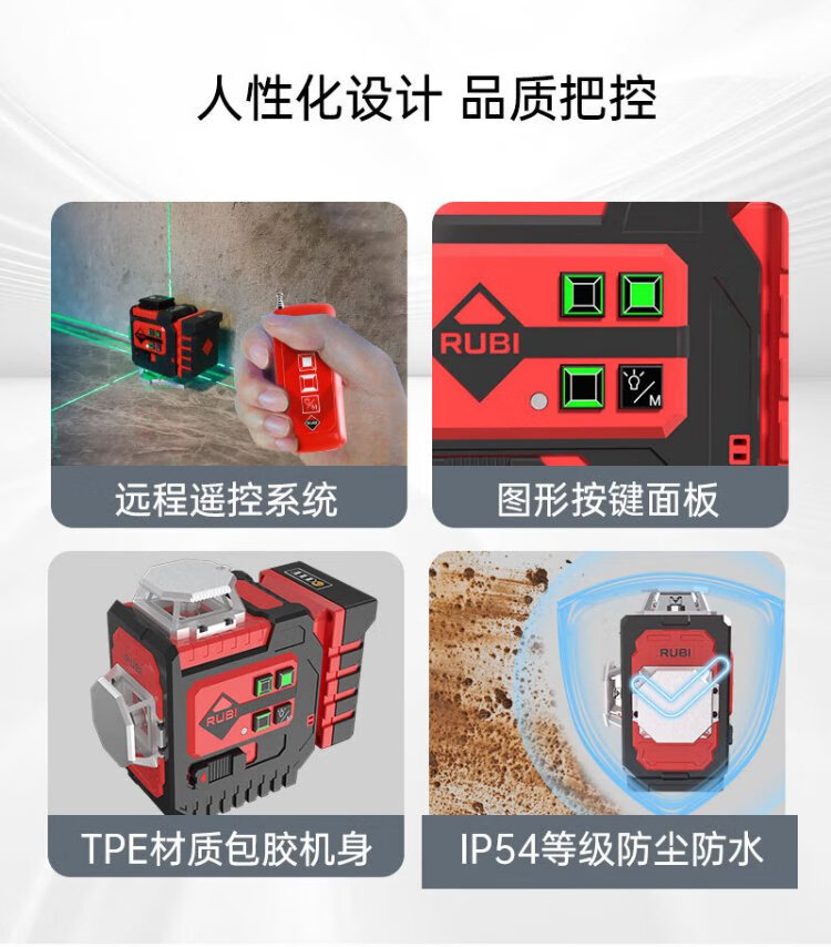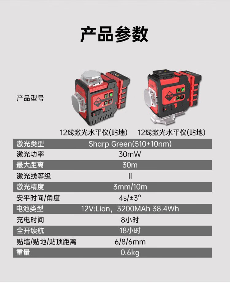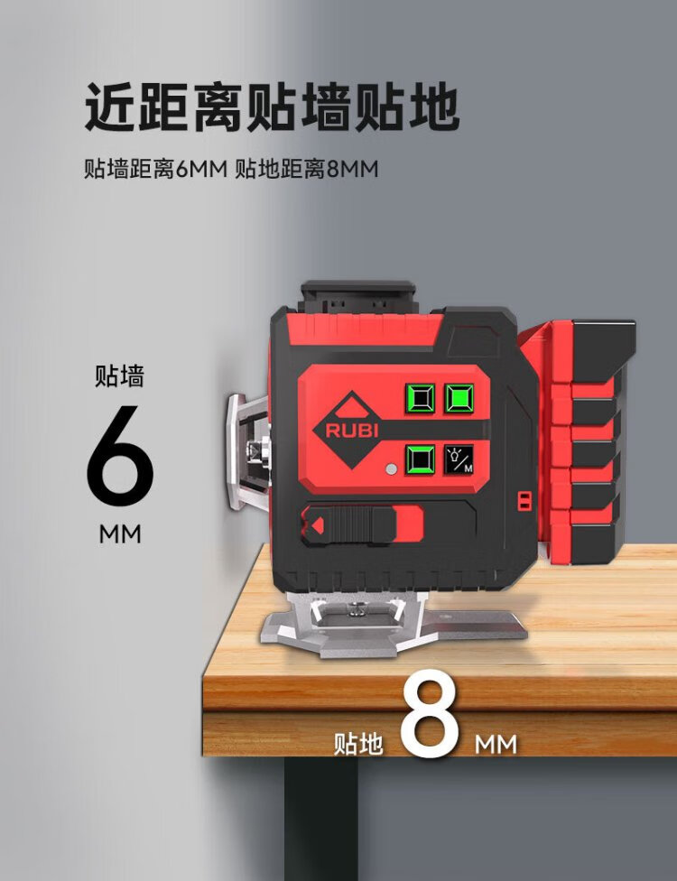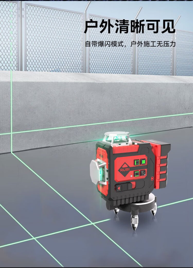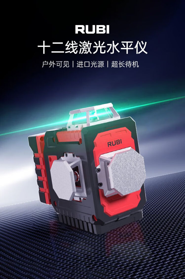 RUBI 12-line level meter green light high-precision laser strong light thin line wall-mounted floor meter automatic line puncher 12-line floor level meter
