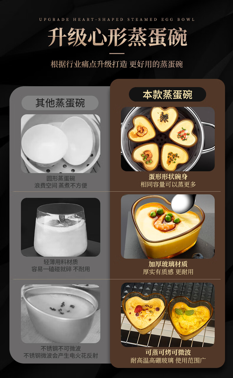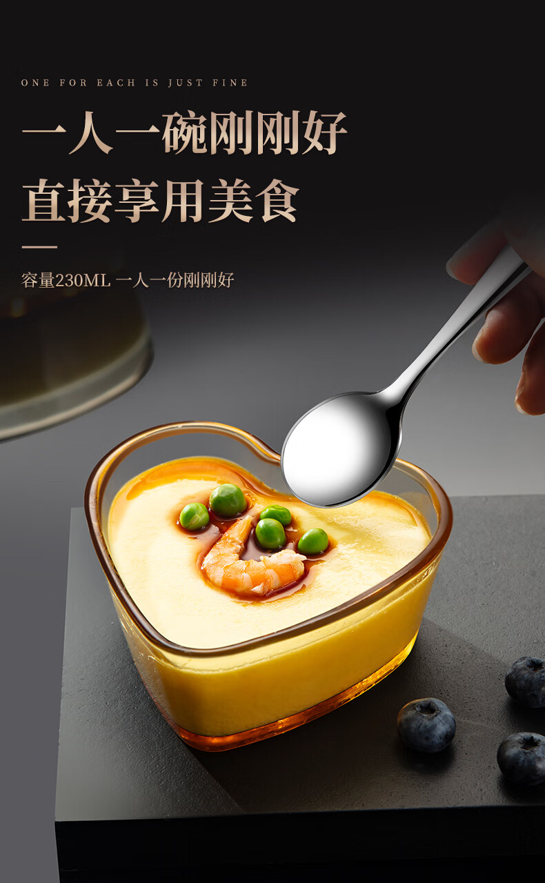 Heqing glass steamed egg bowl baby food supplement bowl kitchen household water-proof stew pot steamed egg custard bowl high temperature resistant small bowl 2 pieces thickened high borosilicate glass