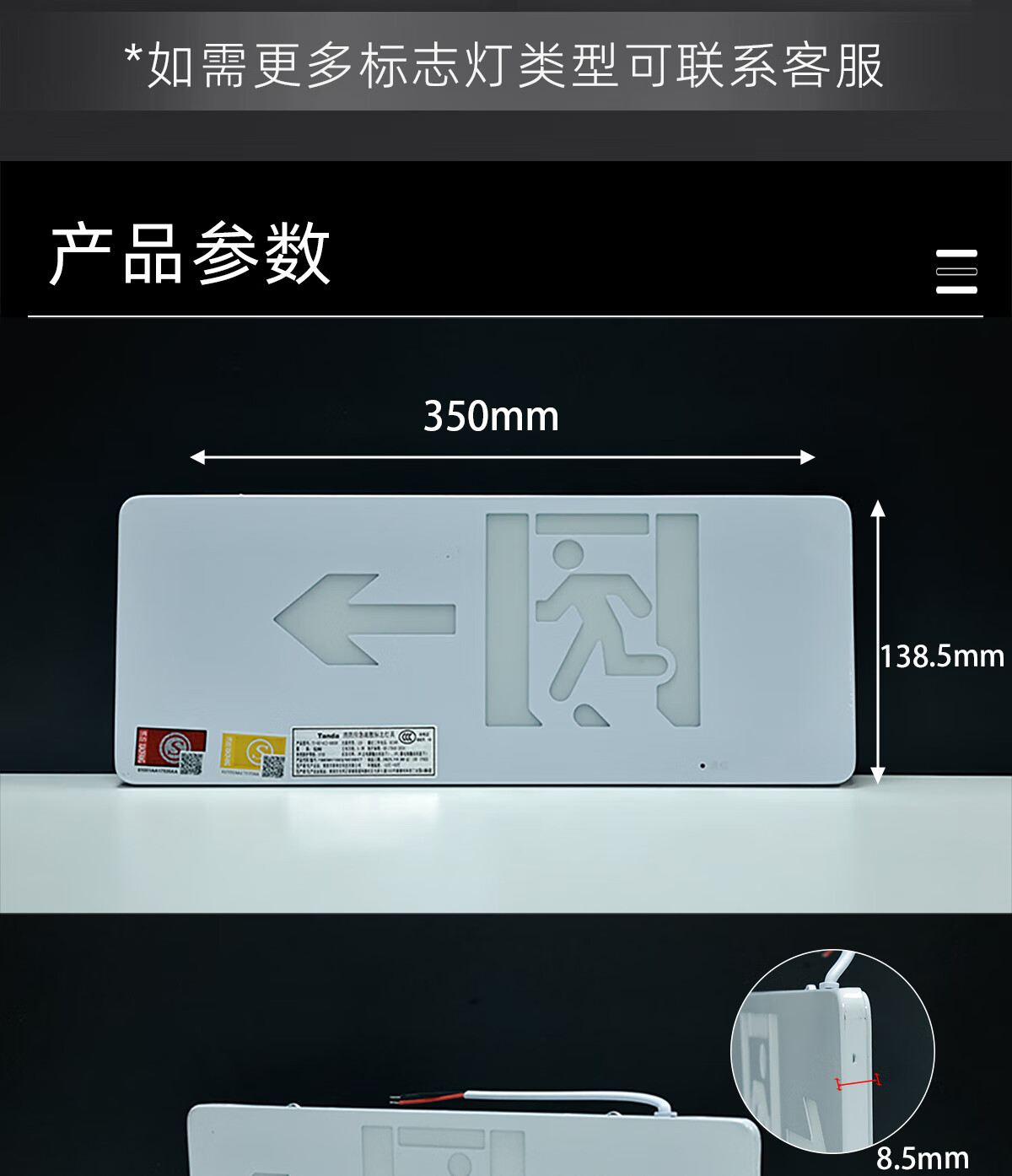 Tanda Taihean emergency evacuation sign lamp 6485N thin metal 6475 wall-mounted safety exit escape indicator light metal material-6485N (safety exit) wall-mounted
