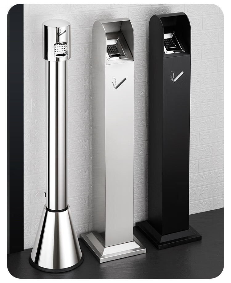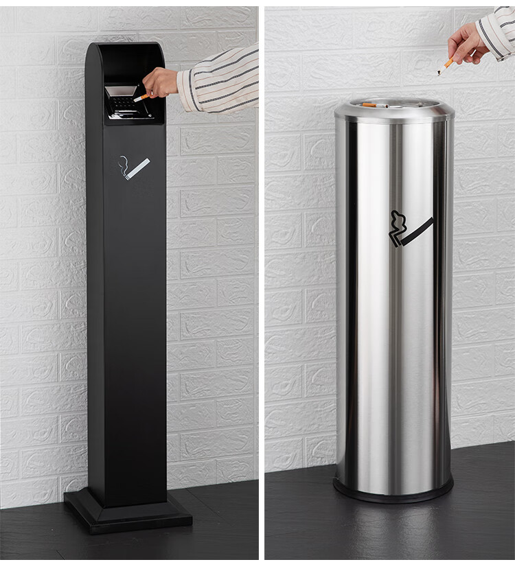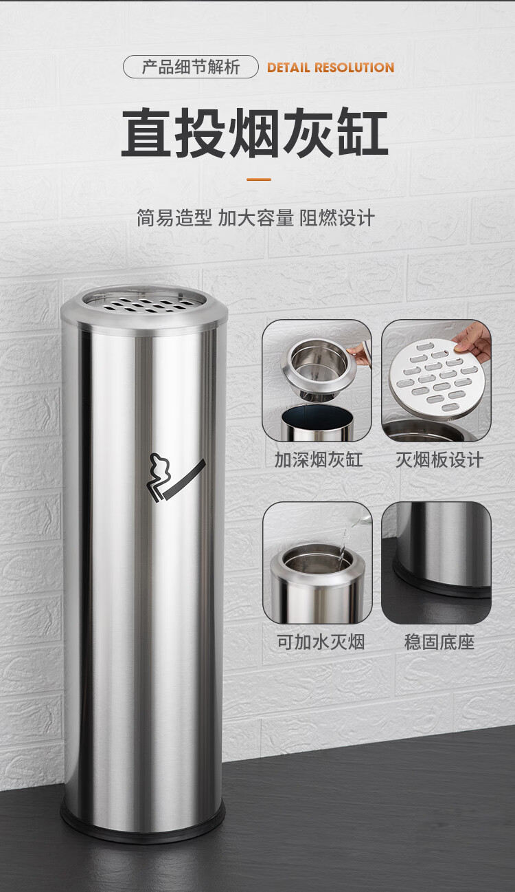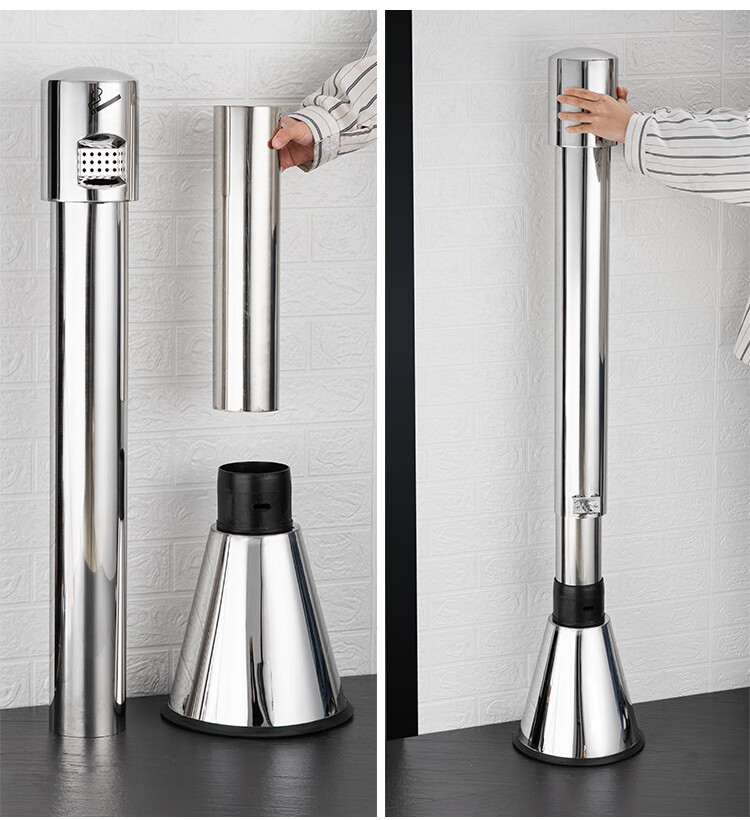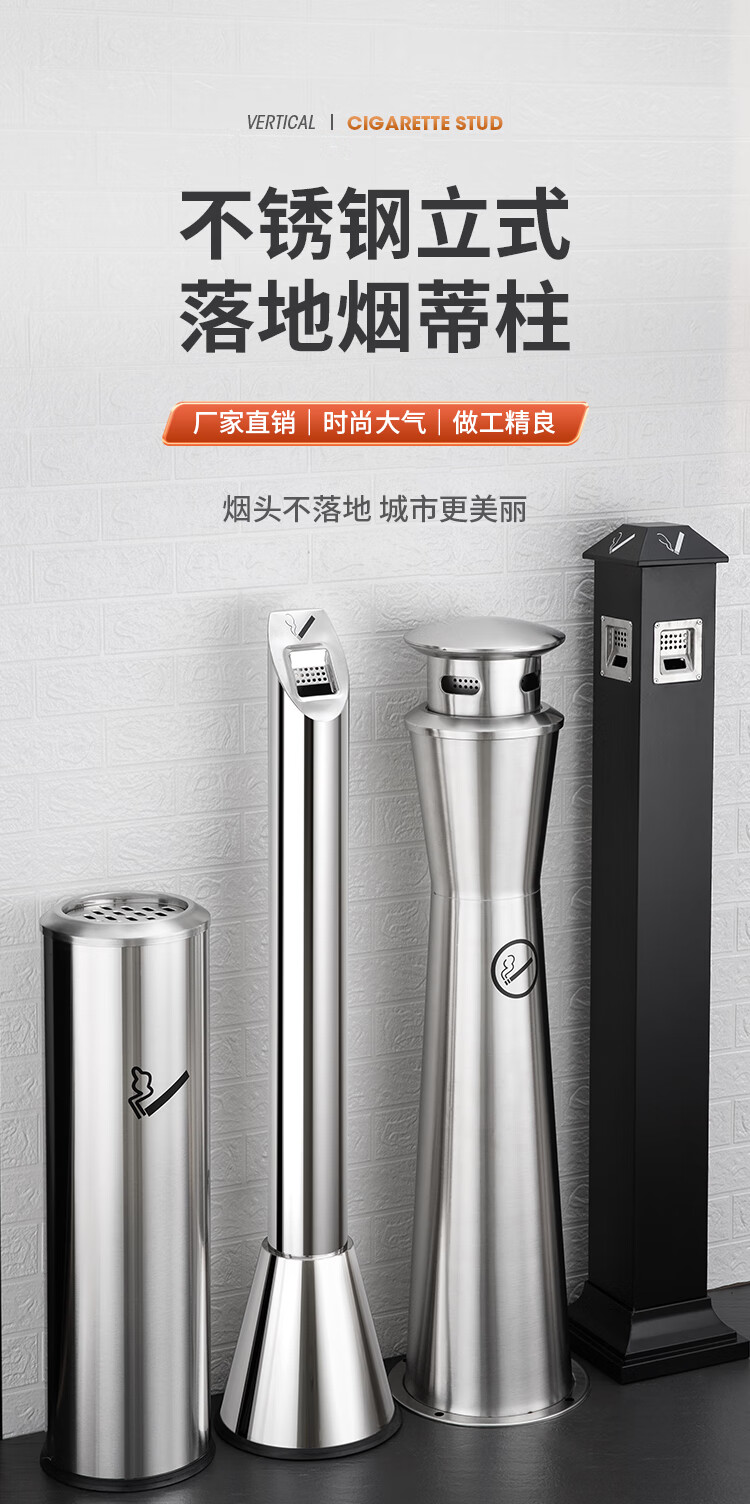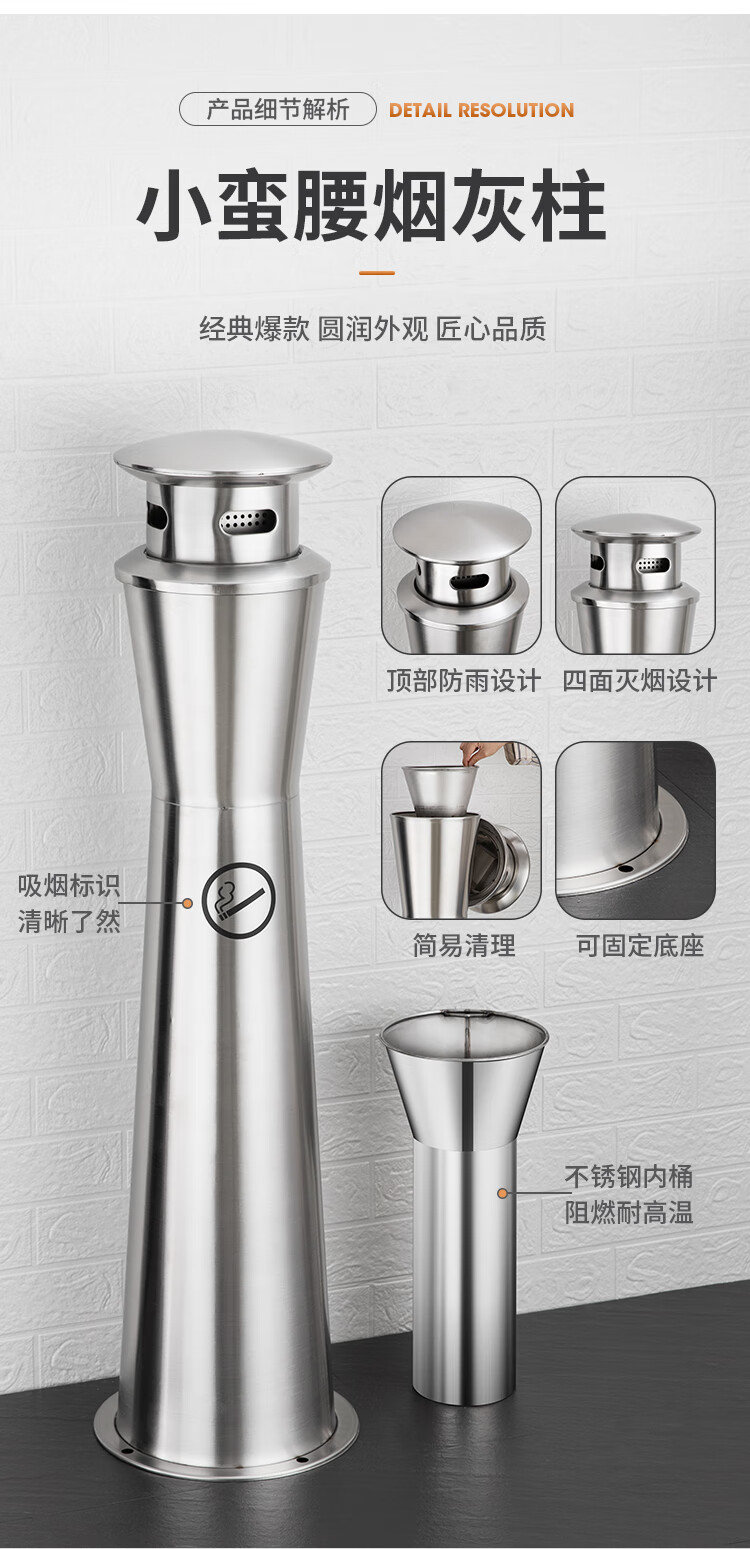 Runkai stainless steel cigarette butt column ashtray vertical hotel shopping mall cigarette extinguisher bucket smoking bucket park floor-standing outdoor ash column small waist ash column - can be fixed
