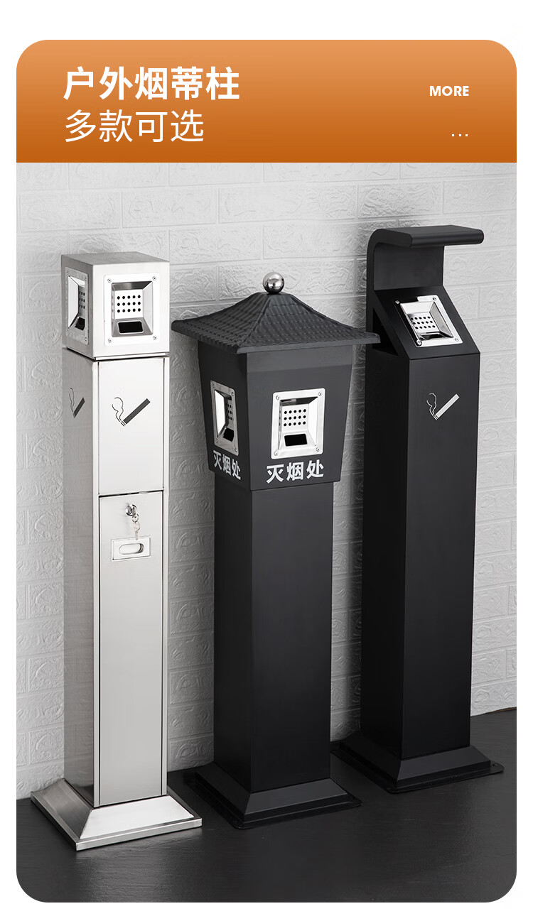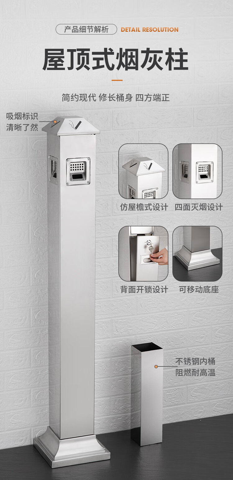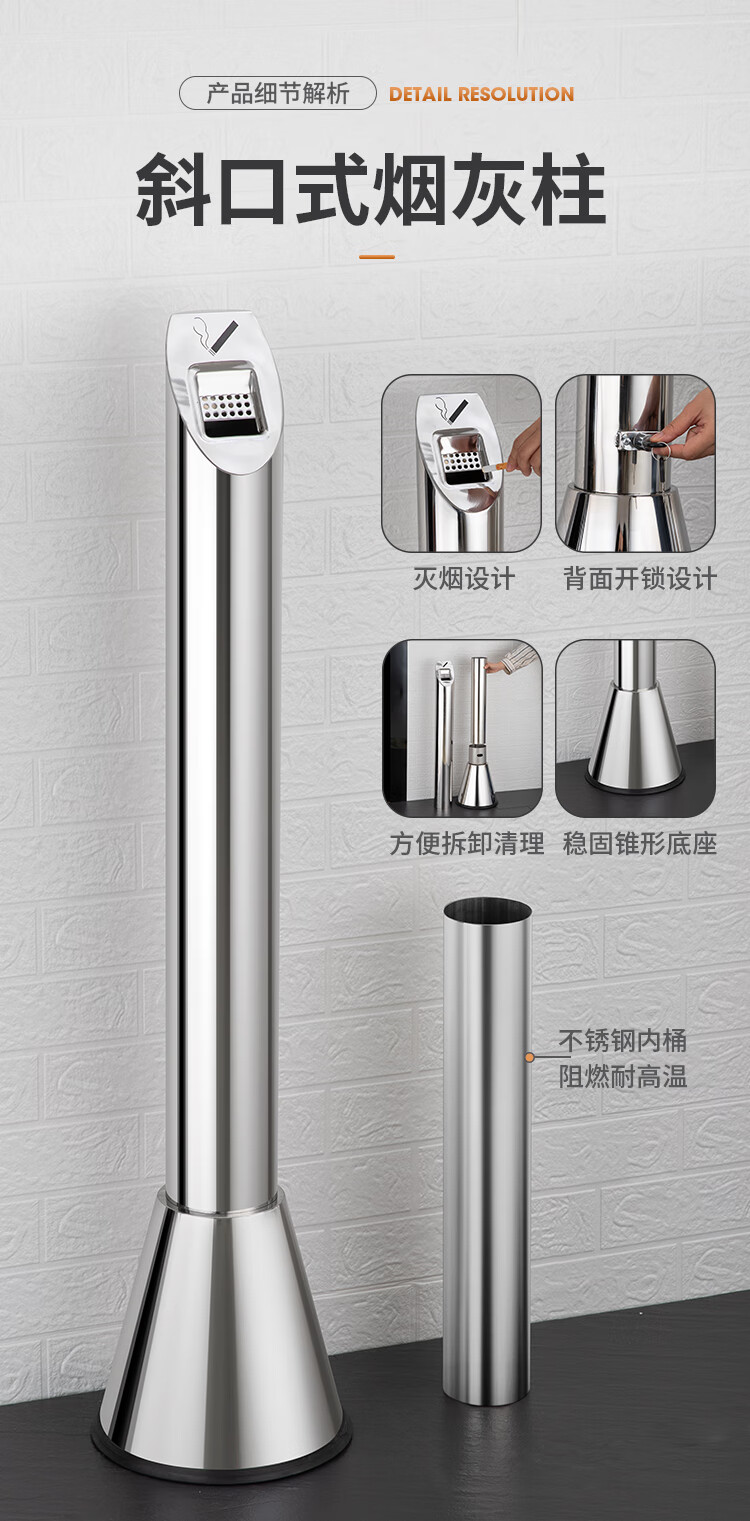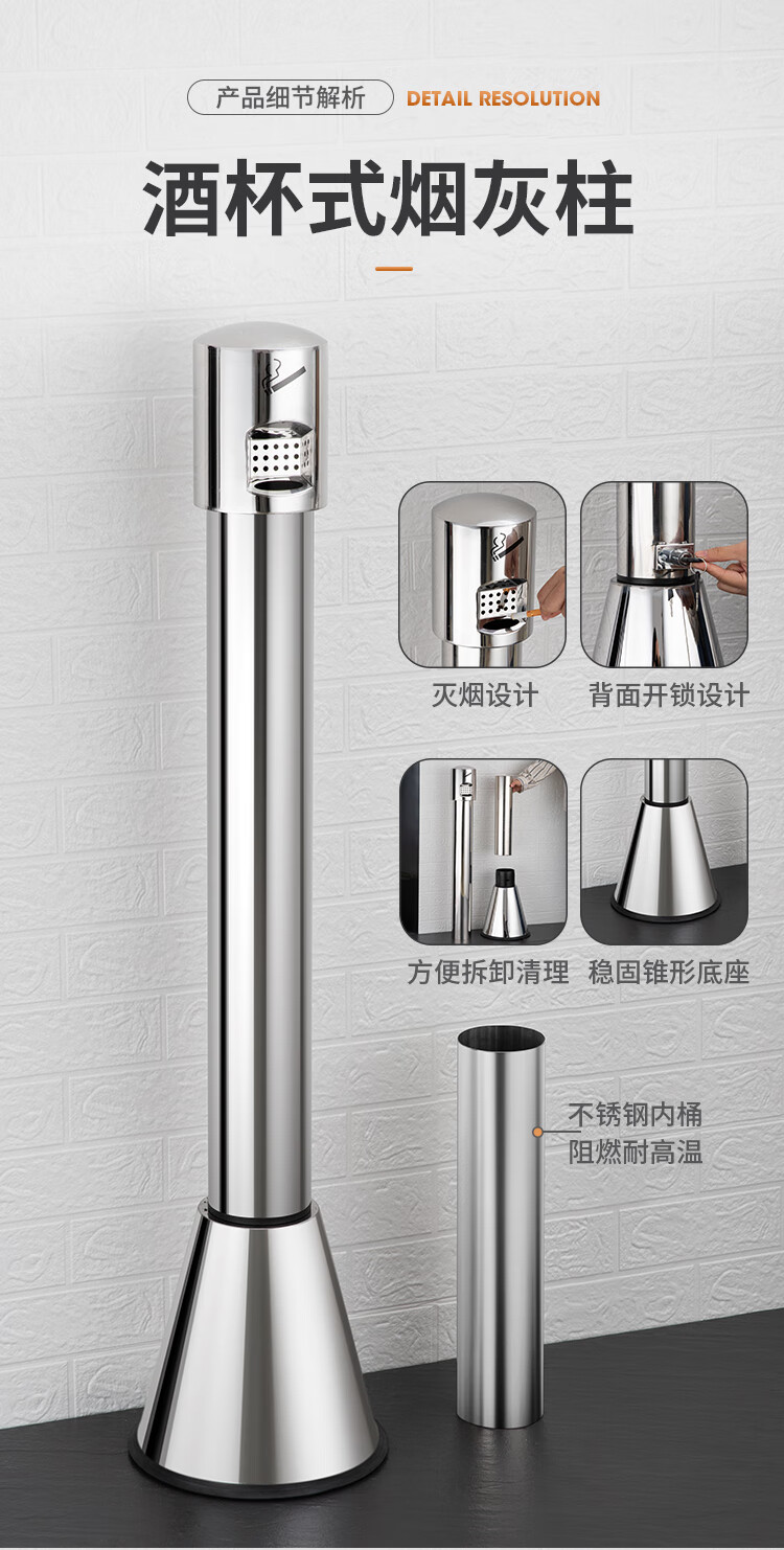 Runkai stainless steel cigarette butt column ashtray vertical hotel shopping mall cigarette extinguisher bucket smoking bucket park floor-standing outdoor ash column small waist ash column - can be fixed