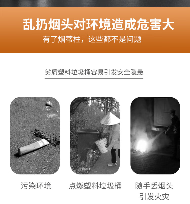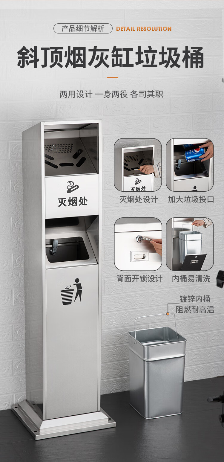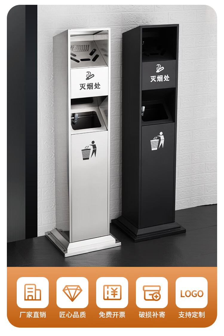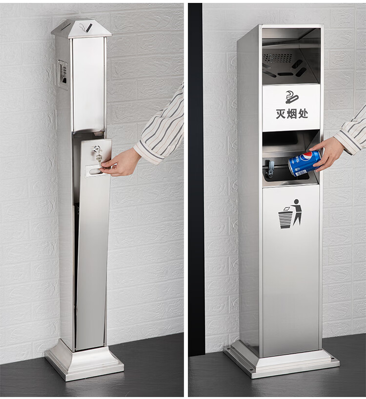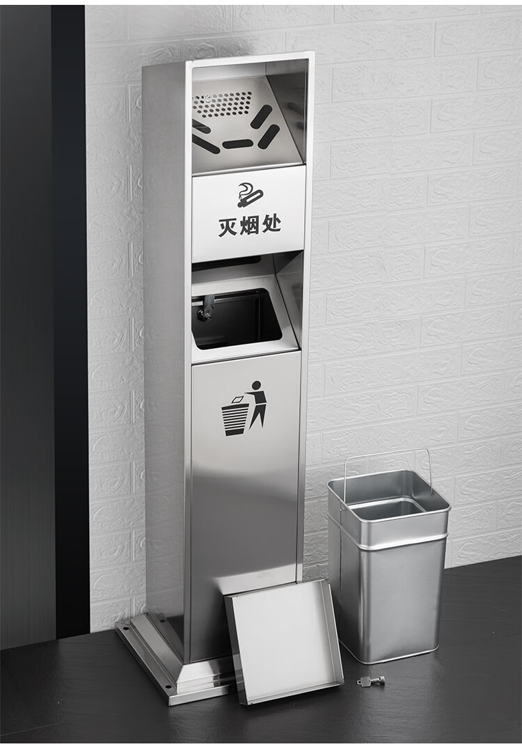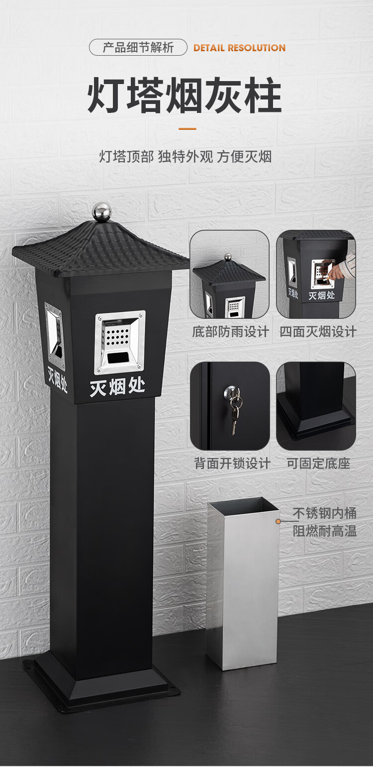 Runkai stainless steel cigarette butt column ashtray vertical hotel shopping mall cigarette extinguisher bucket smoking bucket park floor-standing outdoor ash column small waist ash column - can be fixed