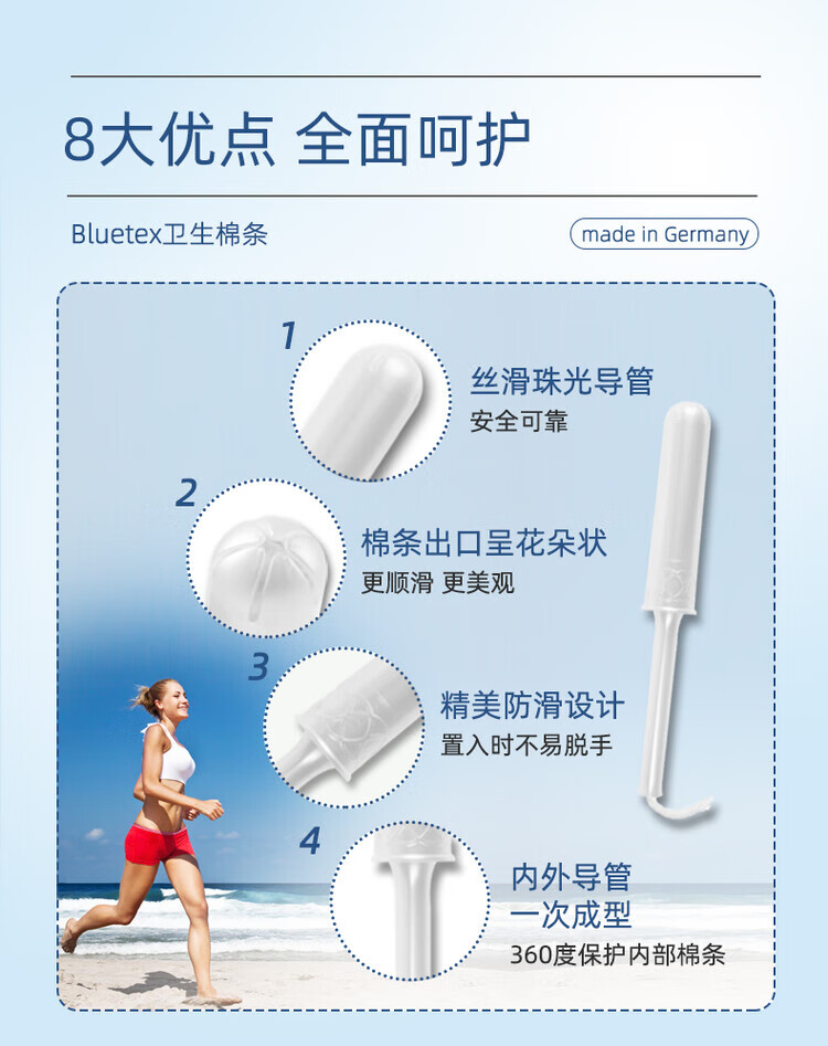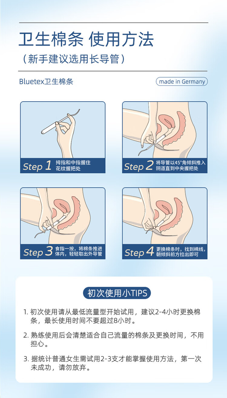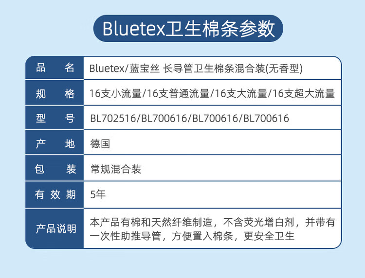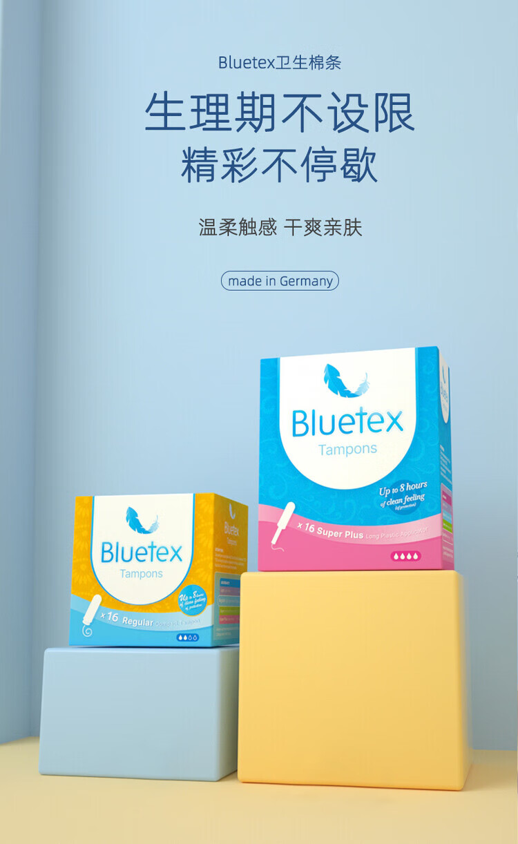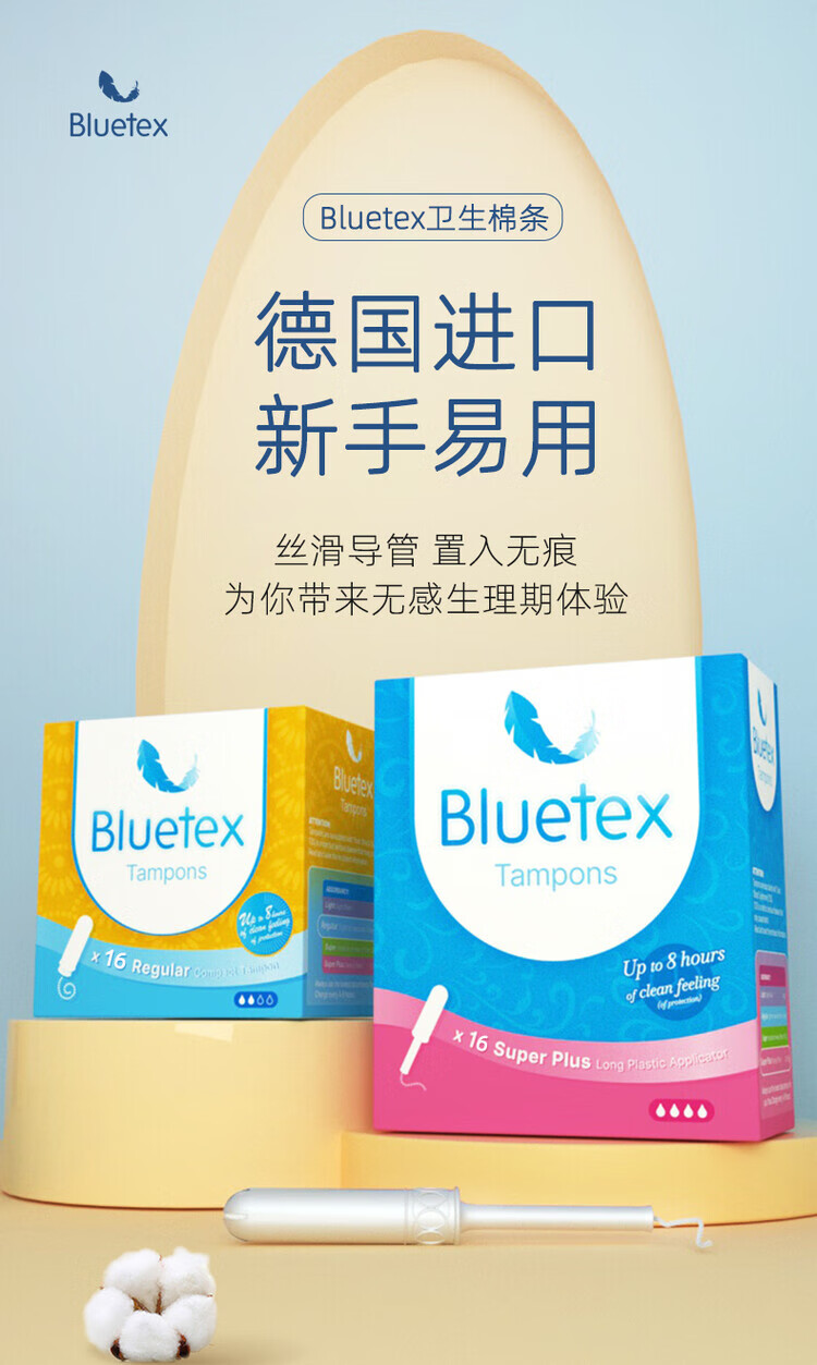 Bluetex Bluetex Tampon Catheter Sanitary Napkin Special Vaginal Plug Waterproof Menstrual Period Insertion 4 Boxes Short Catheter Extra Large Flow 16 Count * 4 Boxes (Cylindrical Cotton Core) Others