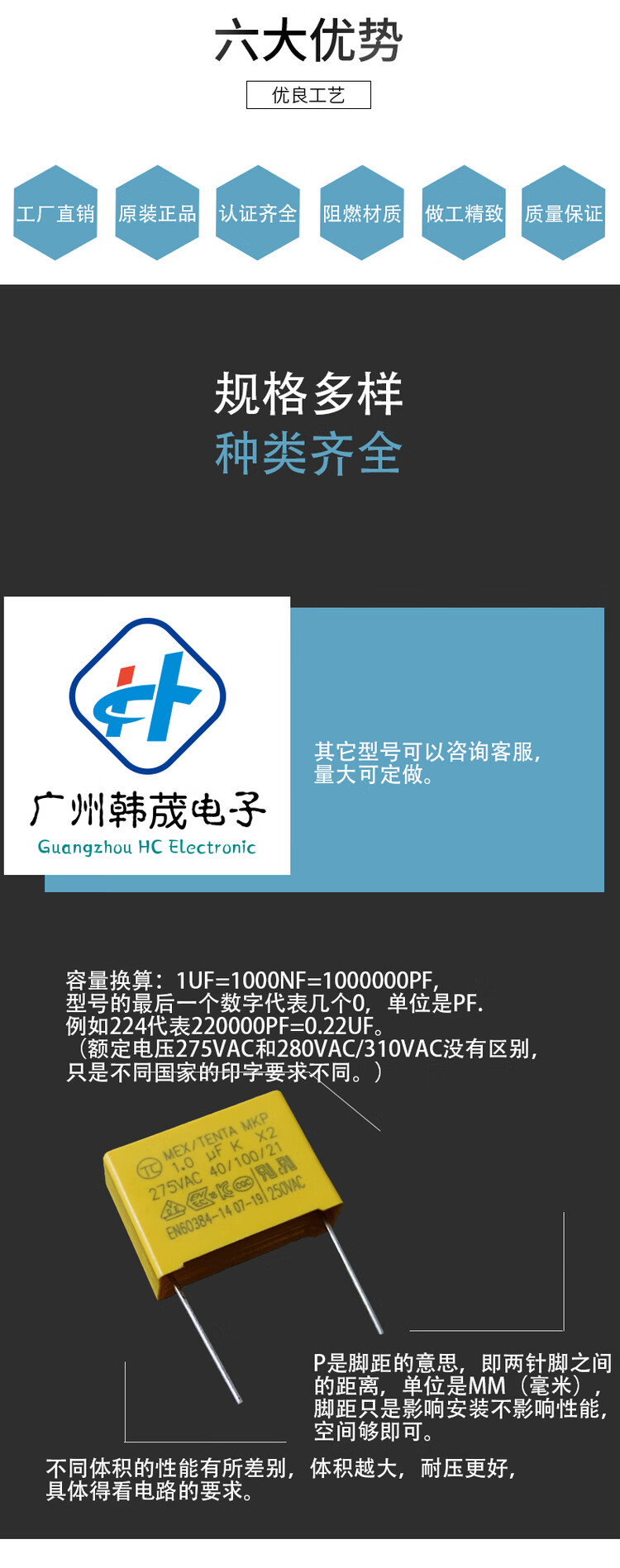 Safety X2 film MKP capacitor 103/104/224/334/474/684/105/225 uF K 0.56uF (564K) P22.5