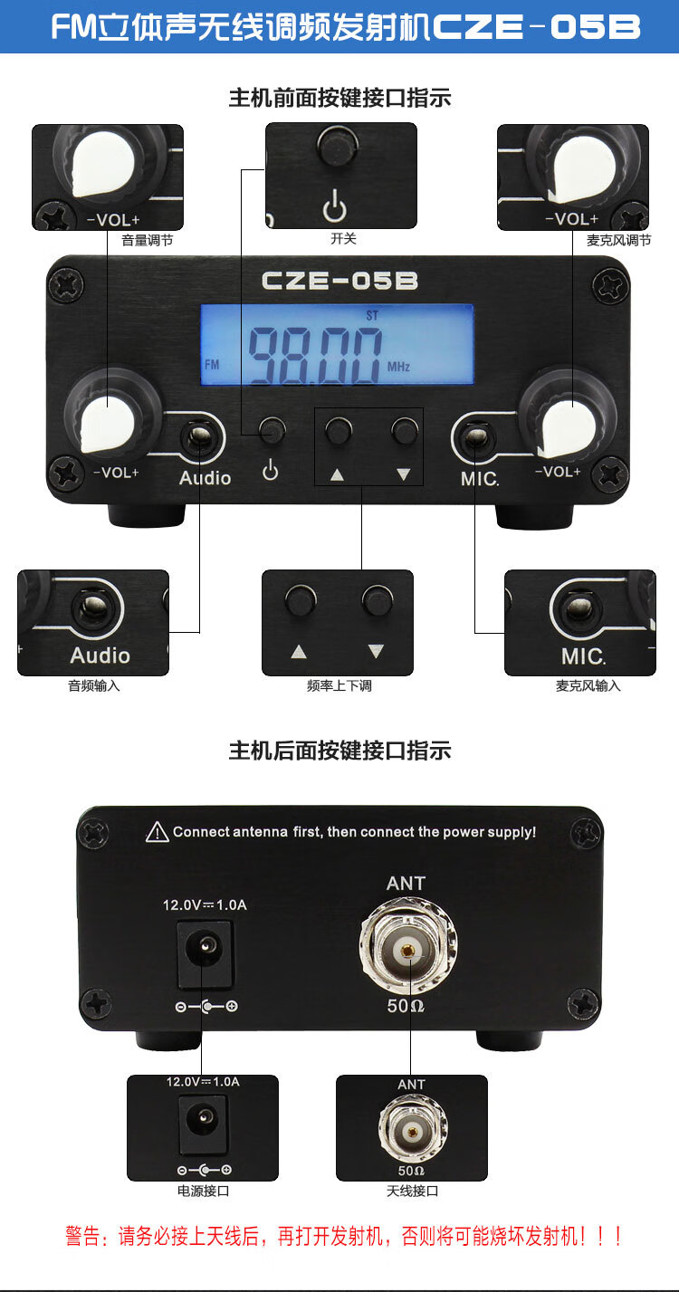 CZE-05B broadcast transmitter fm wireless transmitter 500 meters distance 0.5W stereo FM transmitter FM transmitter