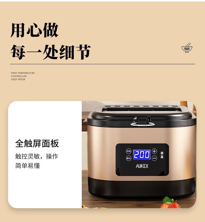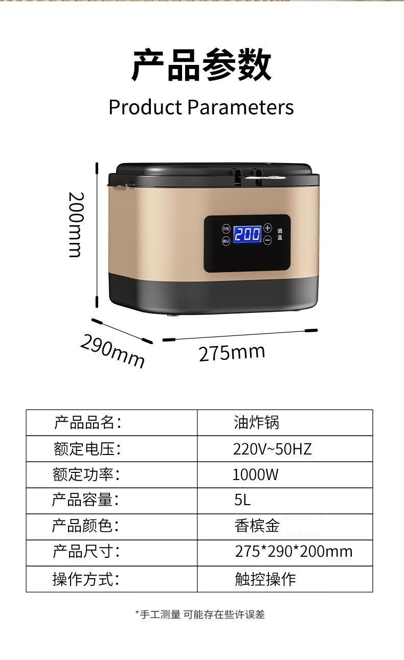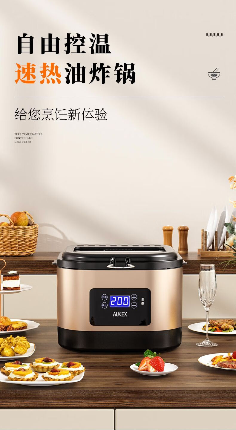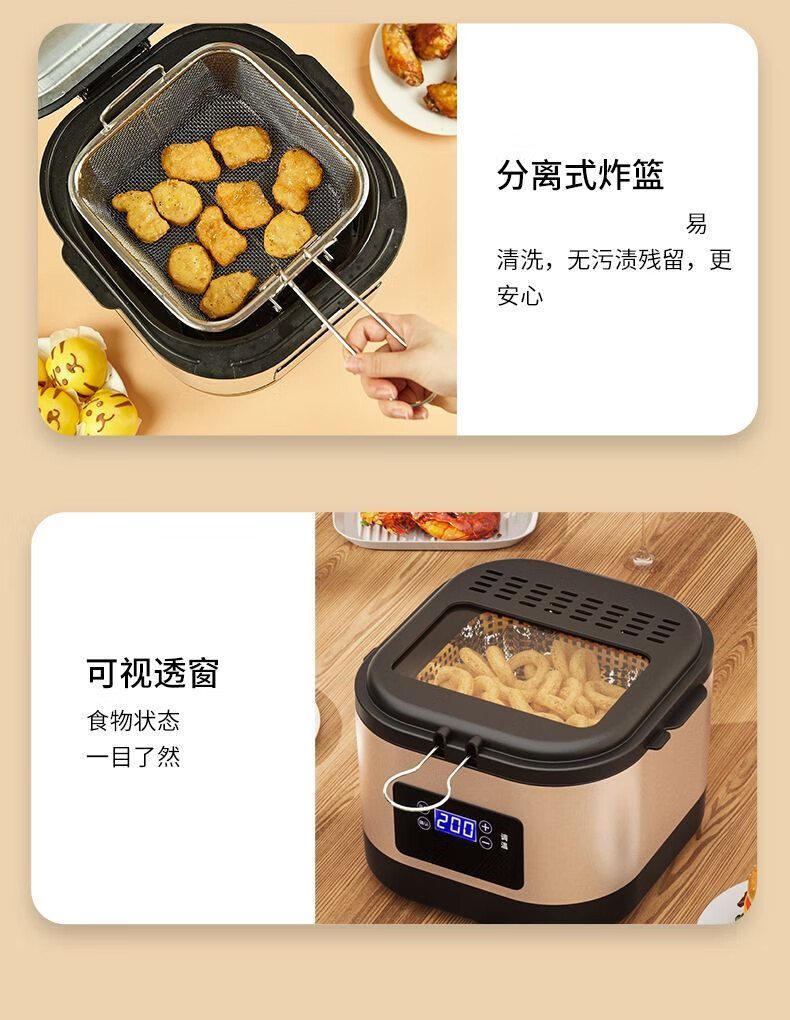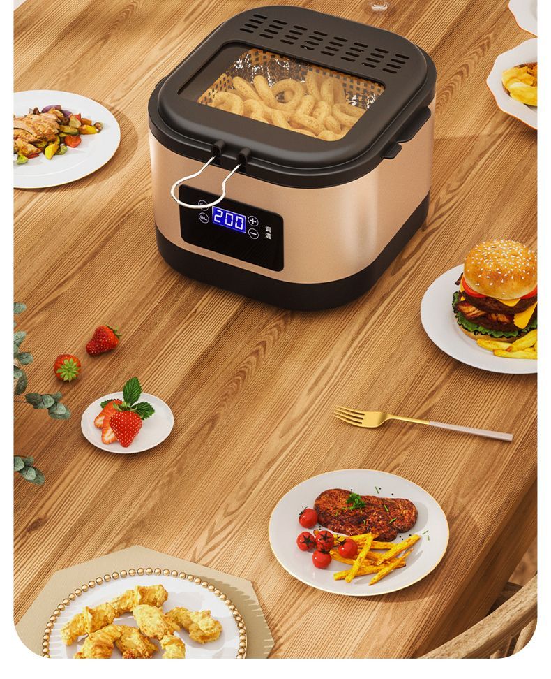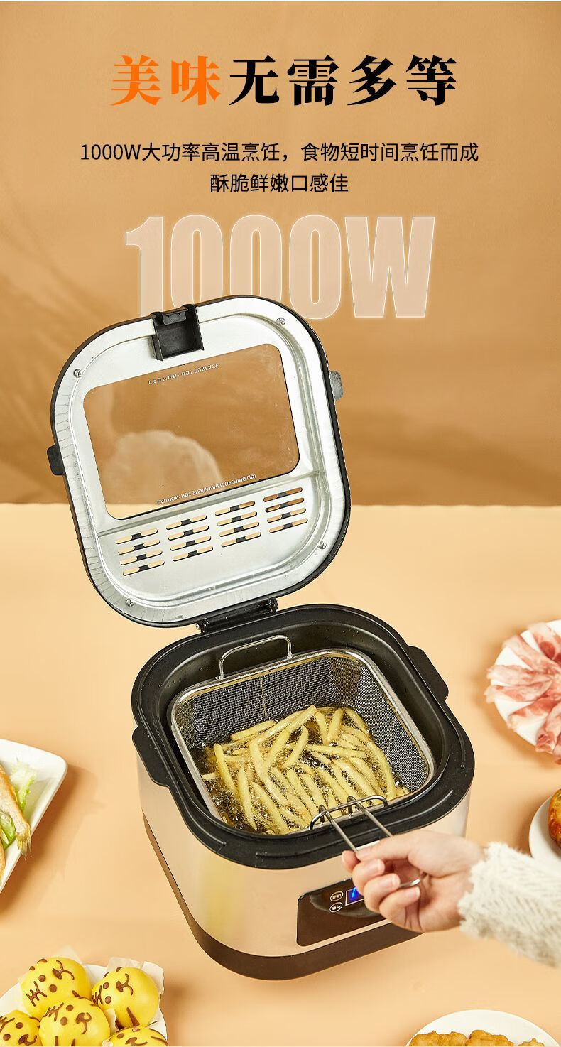 Kangzhiban Electric Fryer Household Fryer with Filter Fully Automatic Constant Temperature Storage Fryer Special for Fried Skewers Tempura Pot Intelligent Temperature Control Integrated Fry Basket/Random Color 27cm