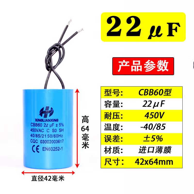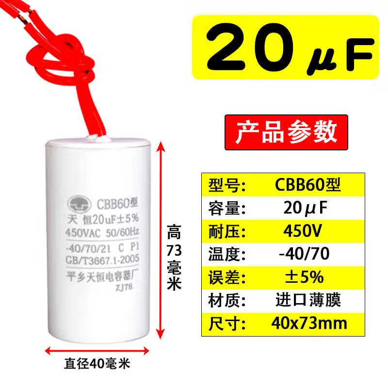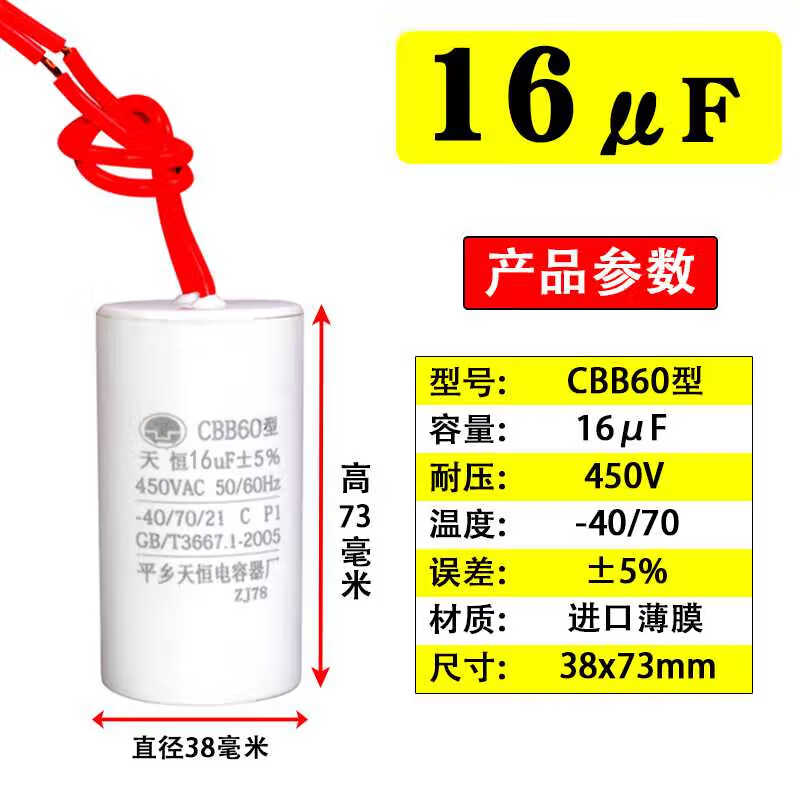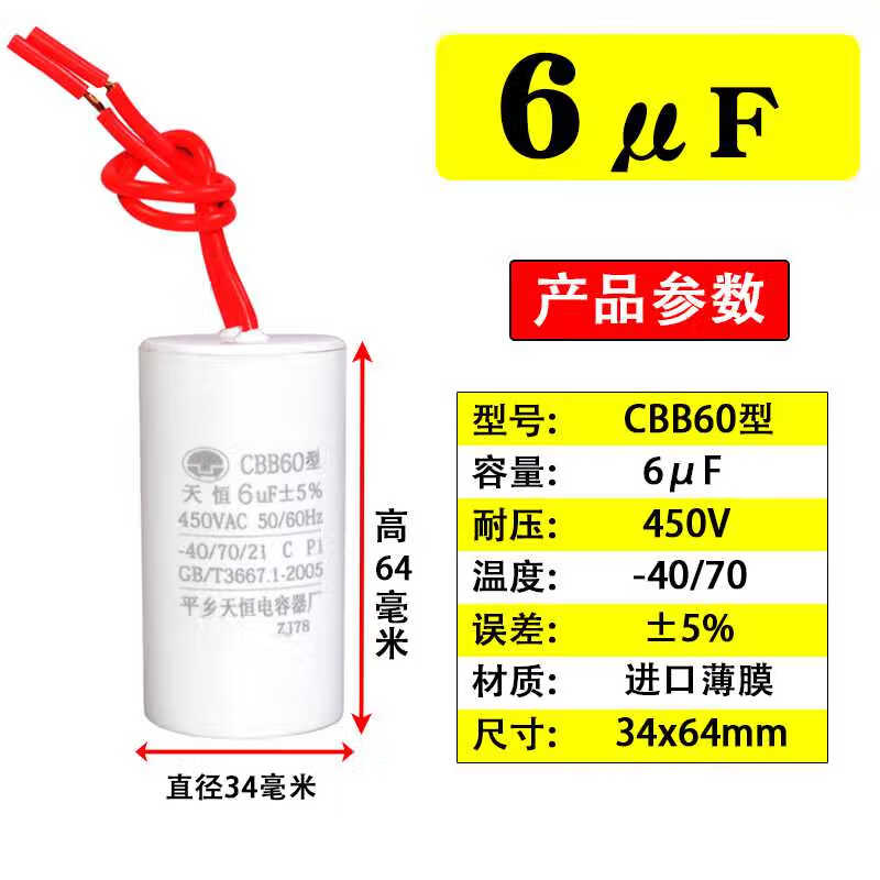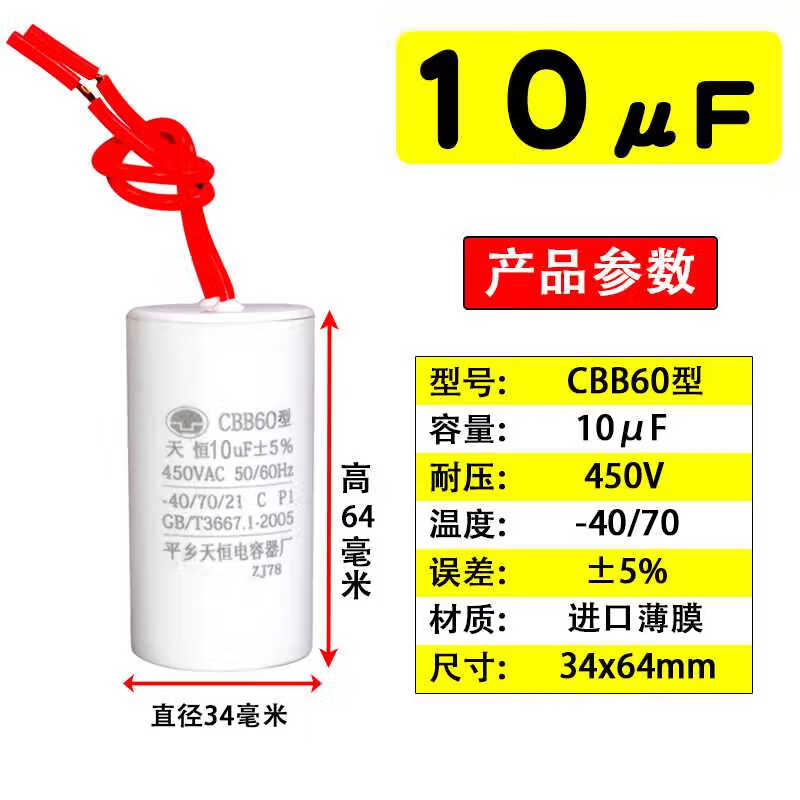 CBB60 submersible pump capacitor washing machine single-phase item 220v motor capacitor 1012151620uF450v 8uF450V (34*64)