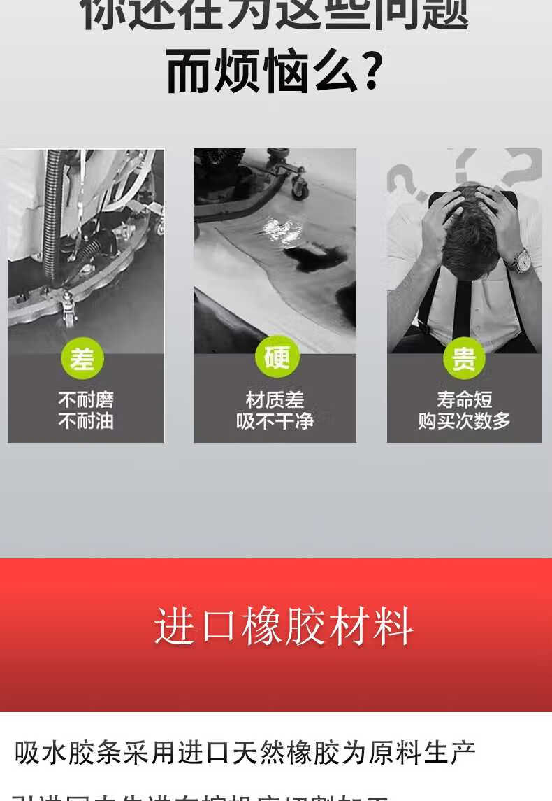 Complete collection of absorbent rubber strips for floor washing machines and wiper strips for sweepers, absorbent strips and wiper strips for floor washing trucks. Jiechi A7