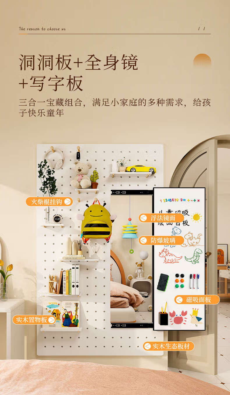 Hole board, dressing mirror, writing board, integrated solid wood storage rack, magnetic suction, children's hidden push-pull whiteboard drawing board, Guangfeng Jiyue 140*80