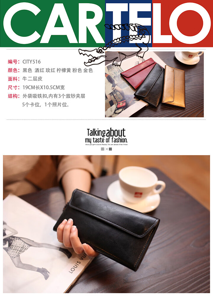 CARTELO crocodile leather wallet women's 2026 new long card holder genuine leather buckle simple business cowhide thin wallet card trend gold cowhide material