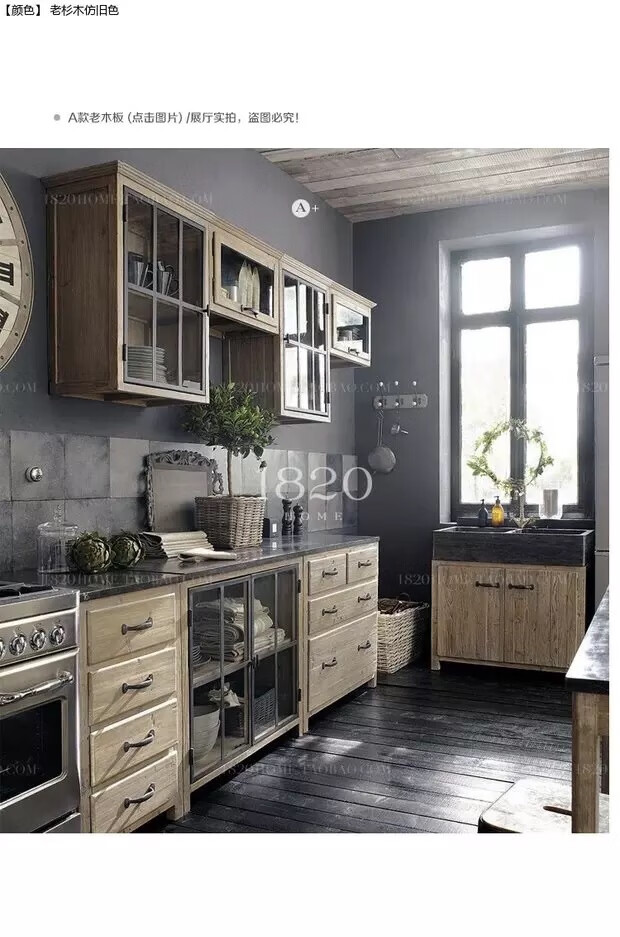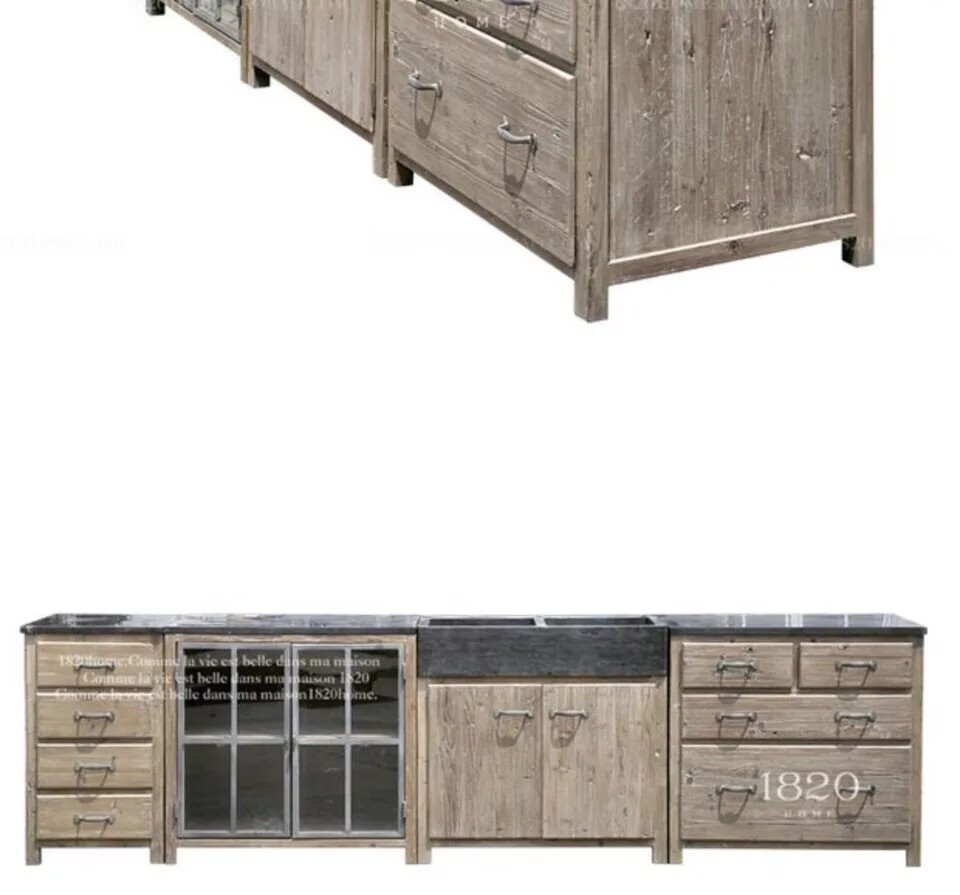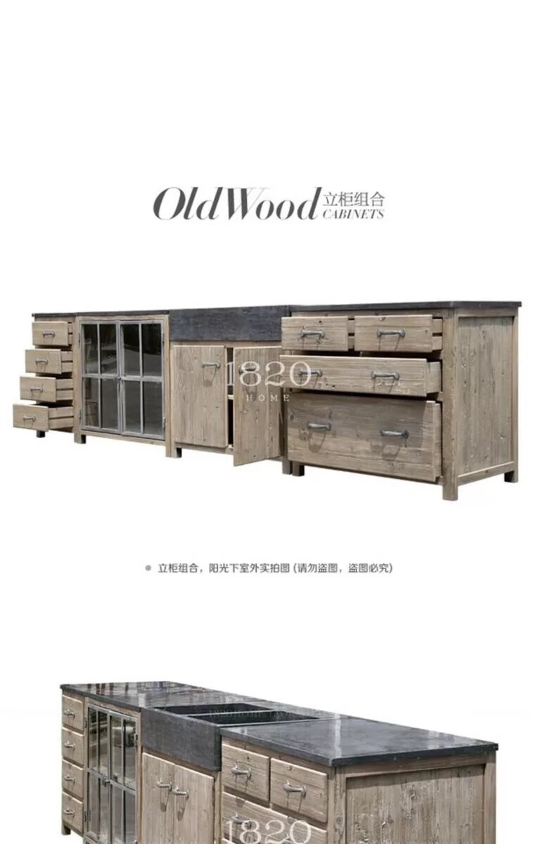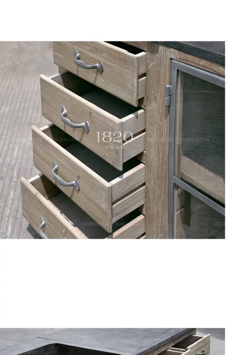 Jingga simple American country kitchen drawer stove cabinet marble solid wood detachable combination boutique retro overall cabinet marble countertop vertical four-drawer cabinet 6 or more doors